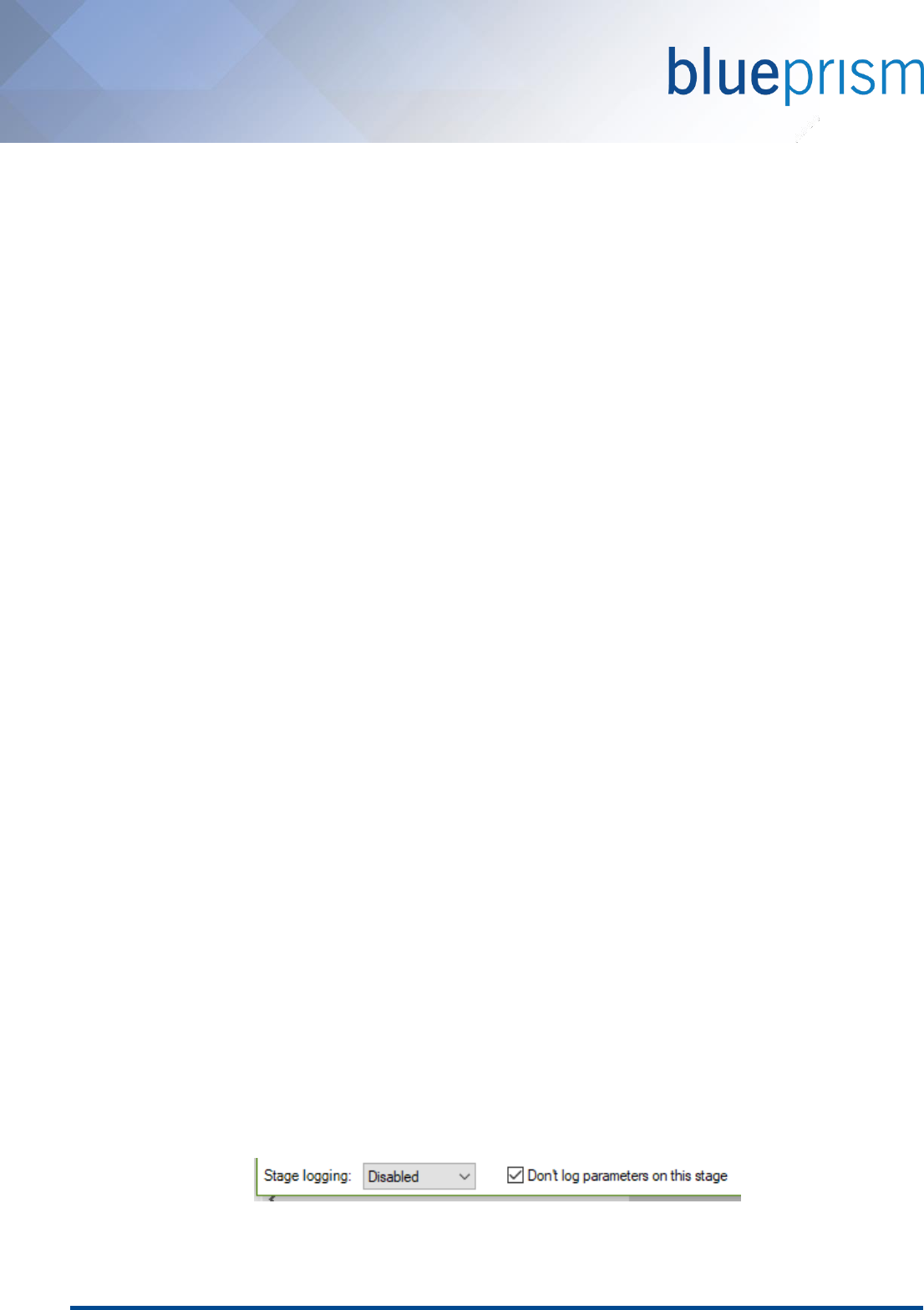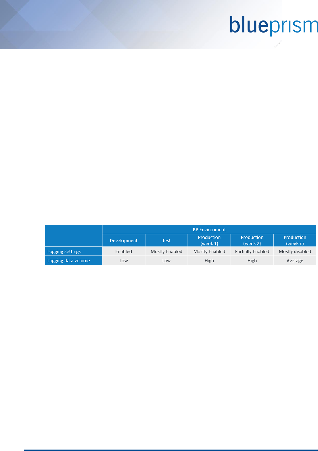 are kept to by the Blue Prism solution. Logging should only be turned on to the minimum levels required to support