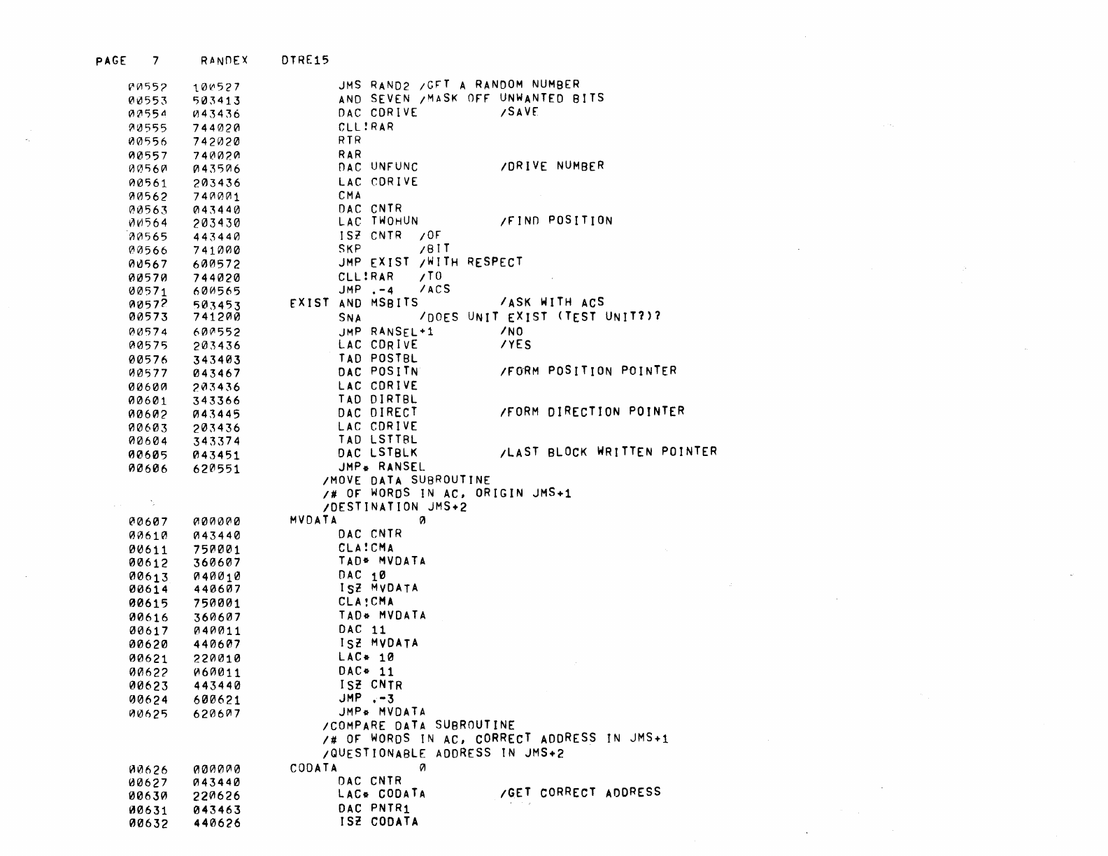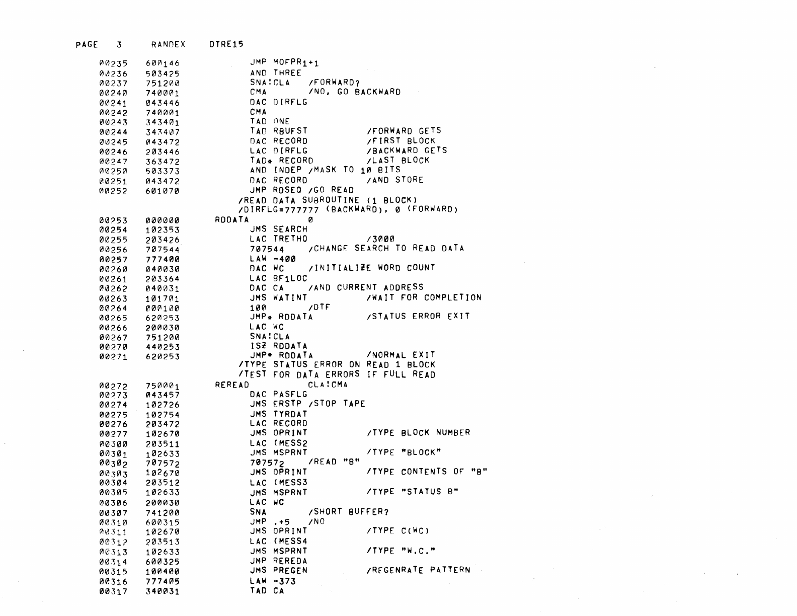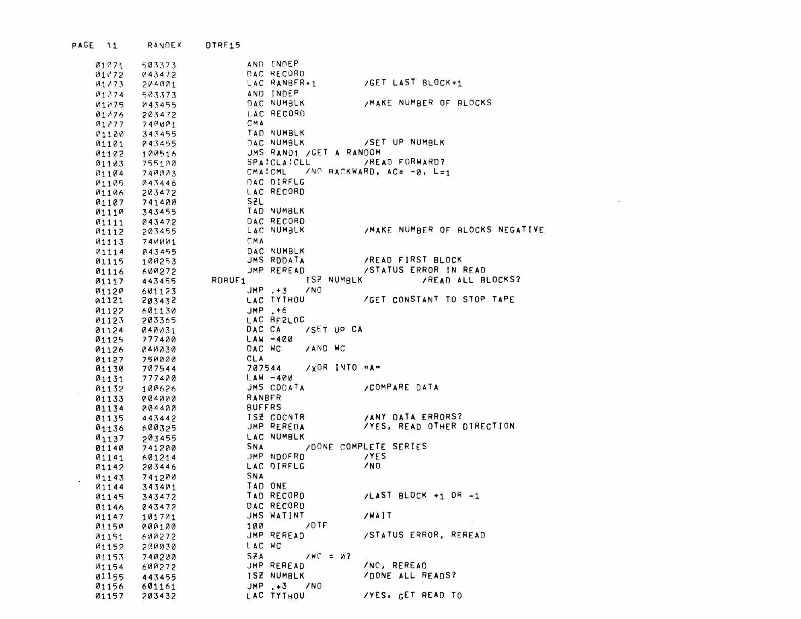 MAINDEC 15 D3RA D_TC02_DECtape_Random_Exerciser_Jan70 D TC02 DECtape Random Exerciser Jan70