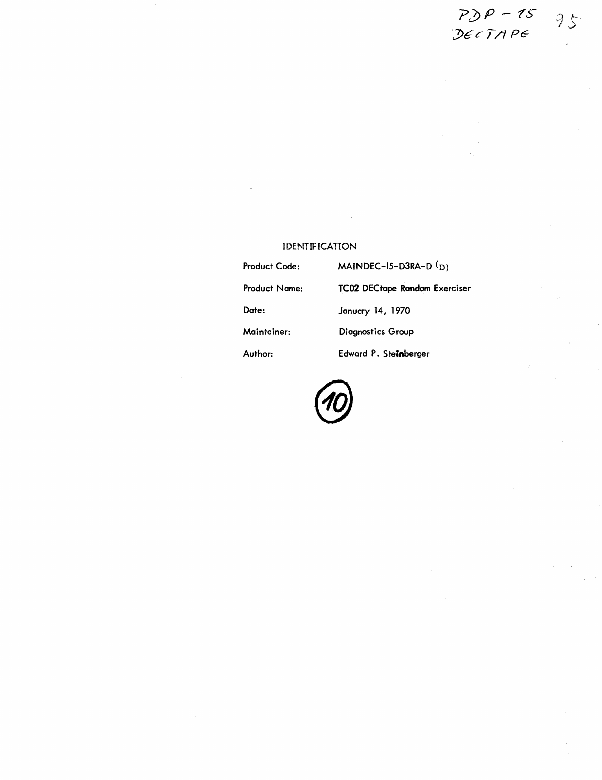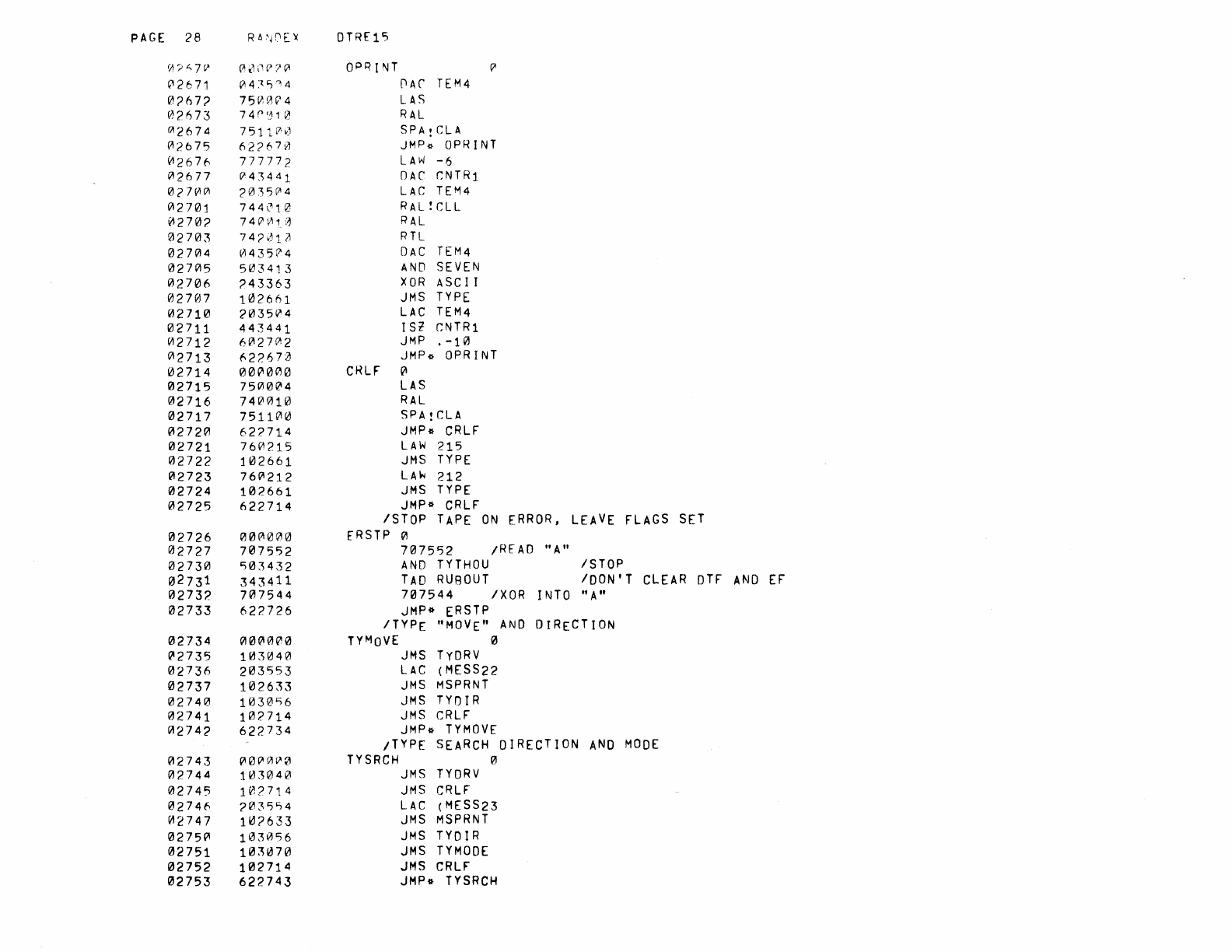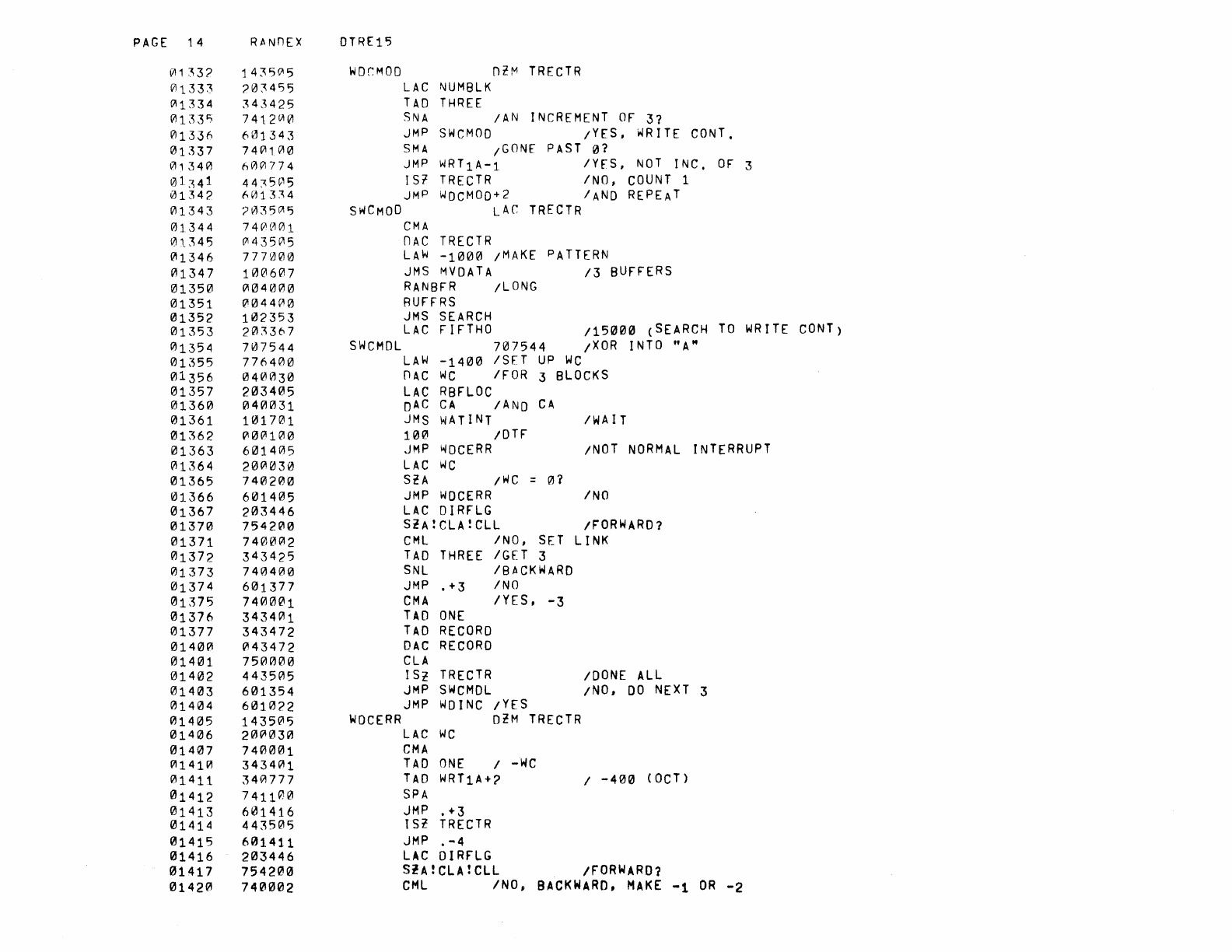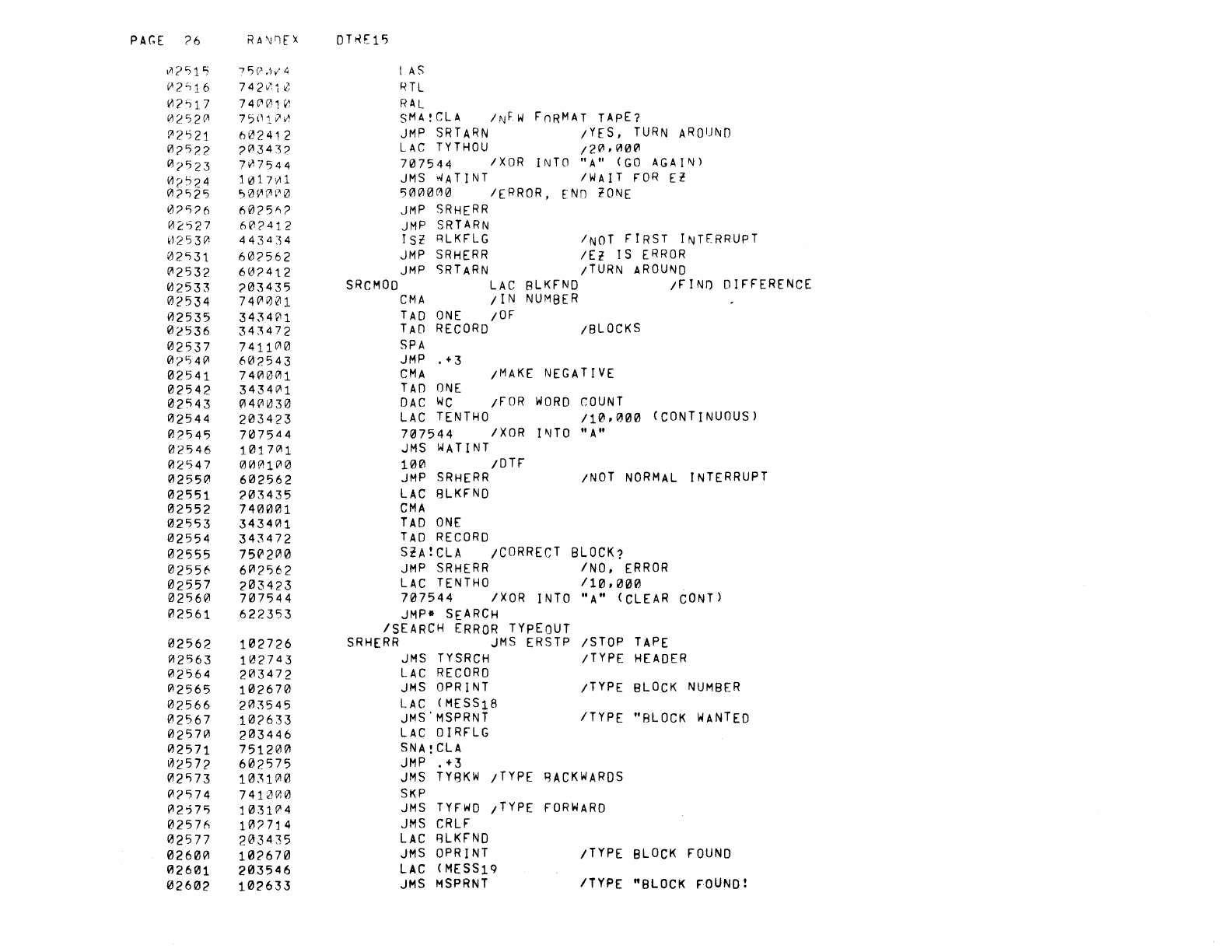 MAINDEC 15 D3RA D_TC02_DECtape_Random_Exerciser_Jan70 D TC02 DECtape Random Exerciser Jan70