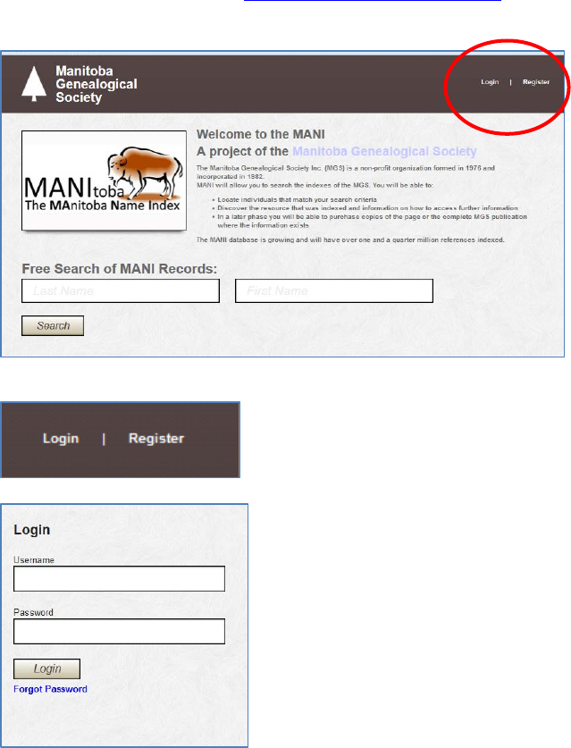 From the MANI home page http://mani.mbgenealogy.com, click on the “Login”