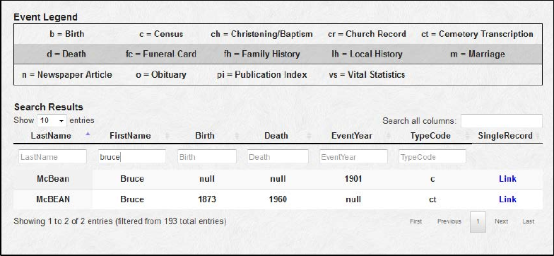 fields. You must enter in at least one of the Last Name or First Name fields.