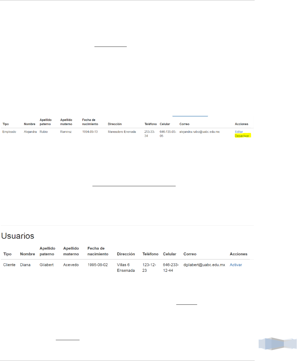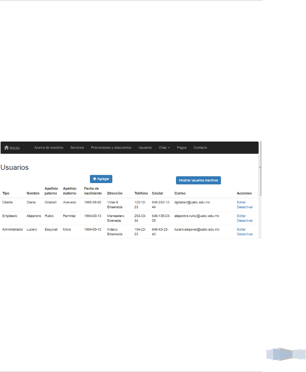 siguiente vista en donde se encuentran todos los usuarios que están dados