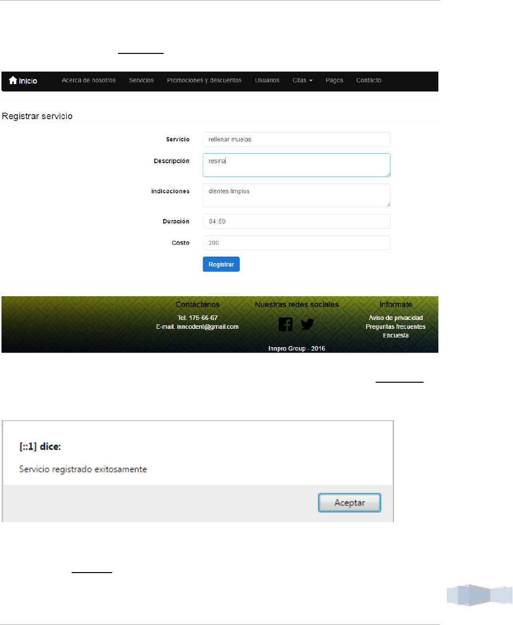 La siguiente figura muestra la funcionalidad de la página web inncodent con la cual