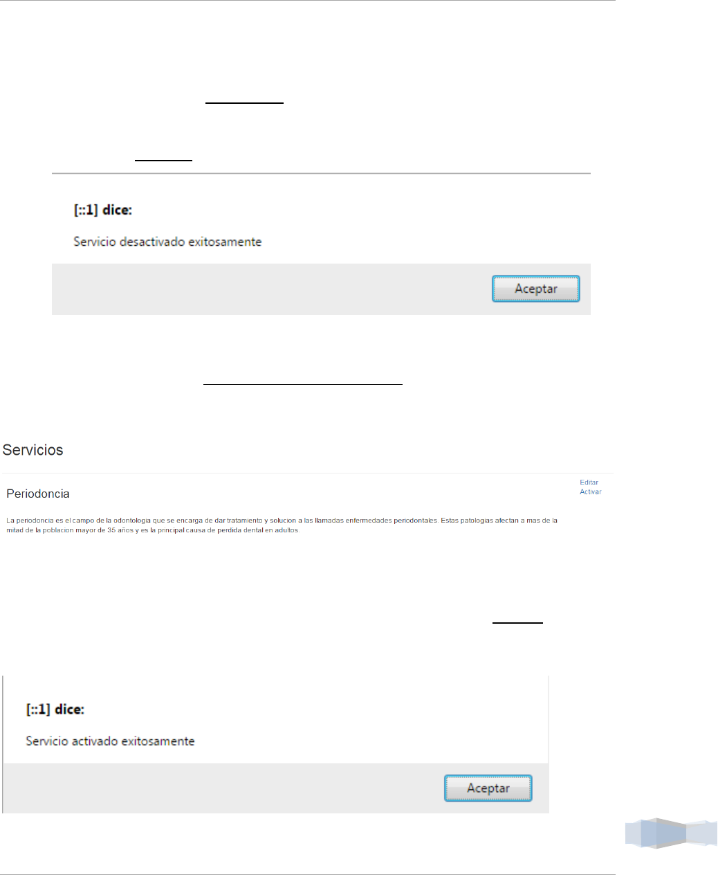2. Si se desea activar el servicio nuevamente dar clic al botón Activar y