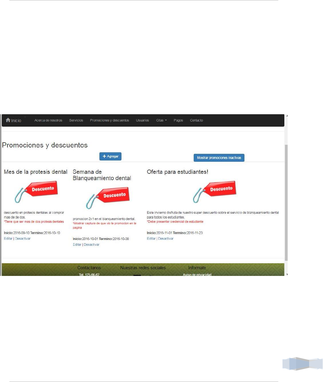 promociones y descuentos que se encuentran inactivos.