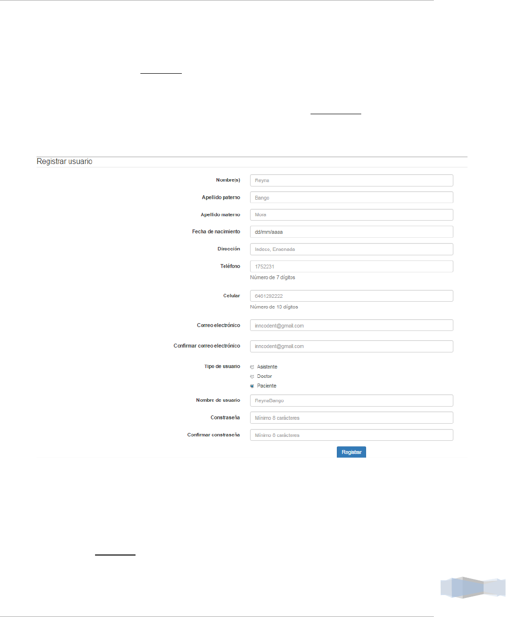 3. Una vez completados lo campos dar clic en el botón Registrar.