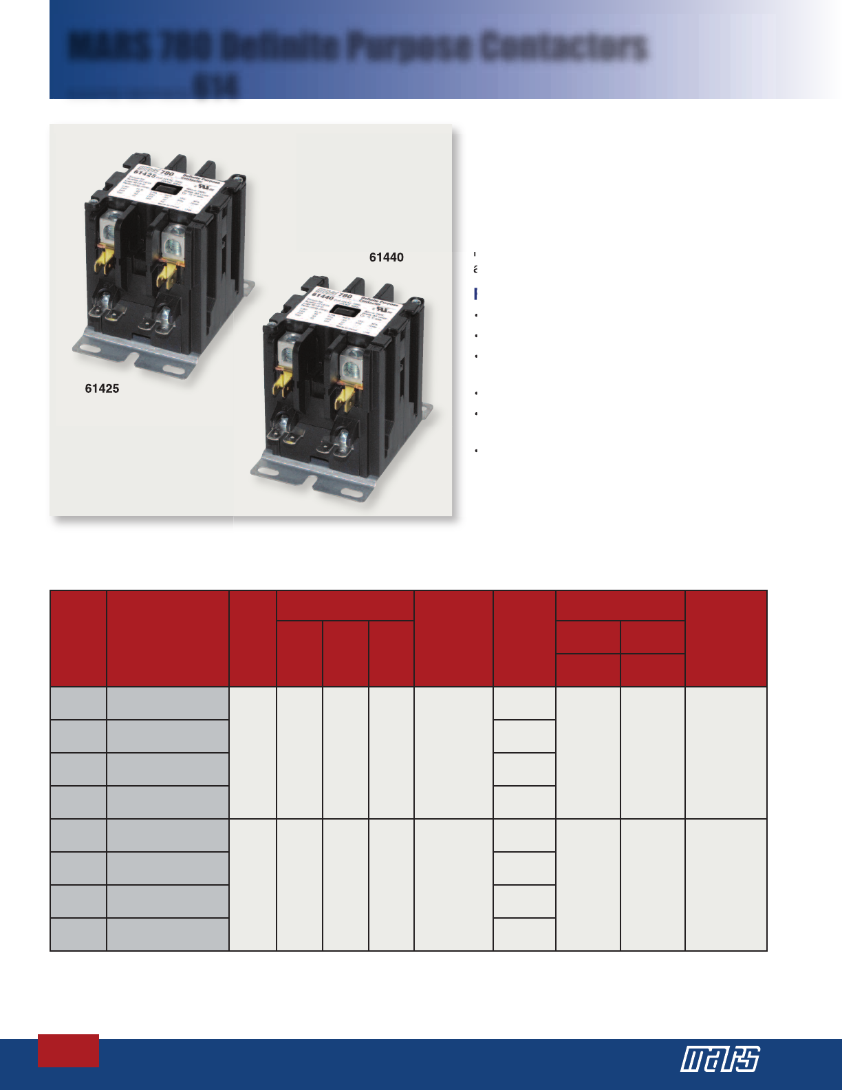 MARS 780 Definite Purpose Contactors Feature the Following: