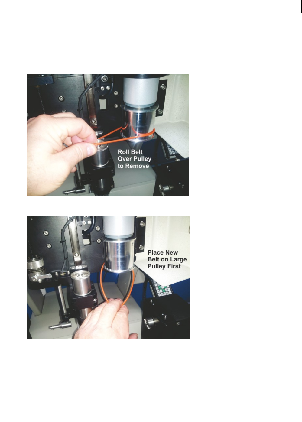 the belt completely over the pulley. Doing so may cause the belt to stretch beyond its limits and the belt