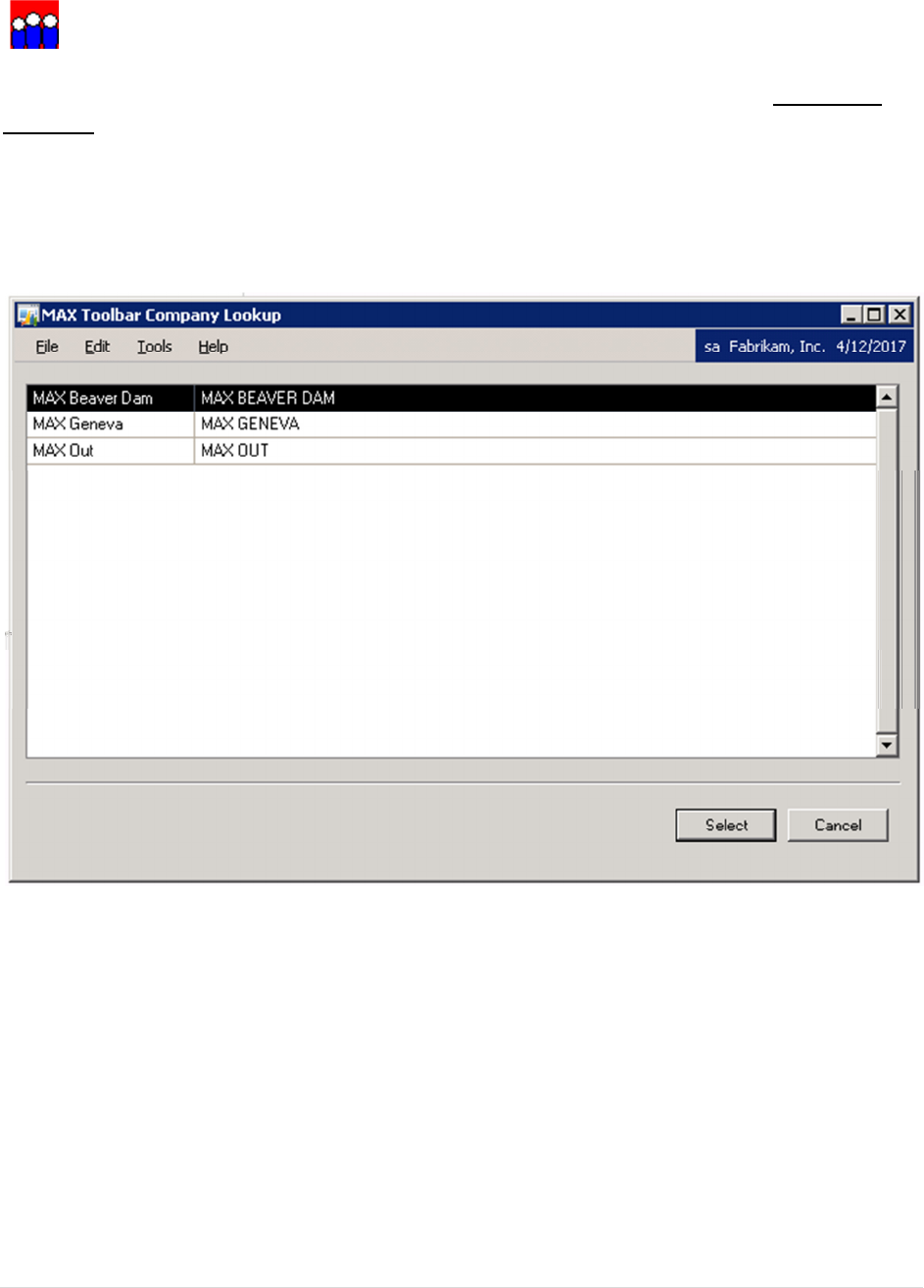 When the Customer Maintenance window is opened, MAX Toolbar opens the Select MAX
