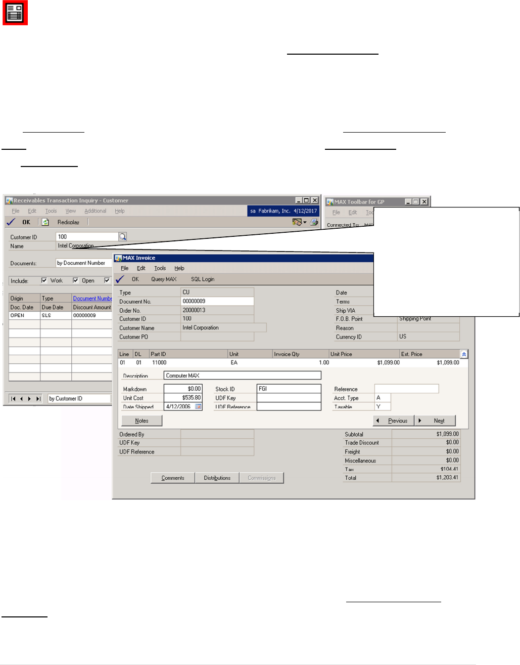 MAX Toolbar to Microsoft Dynamics GP Show MAX Sales History