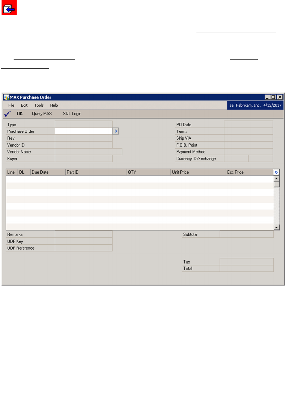 icon from an available window. This button opens the MAX Purchase Order window to display