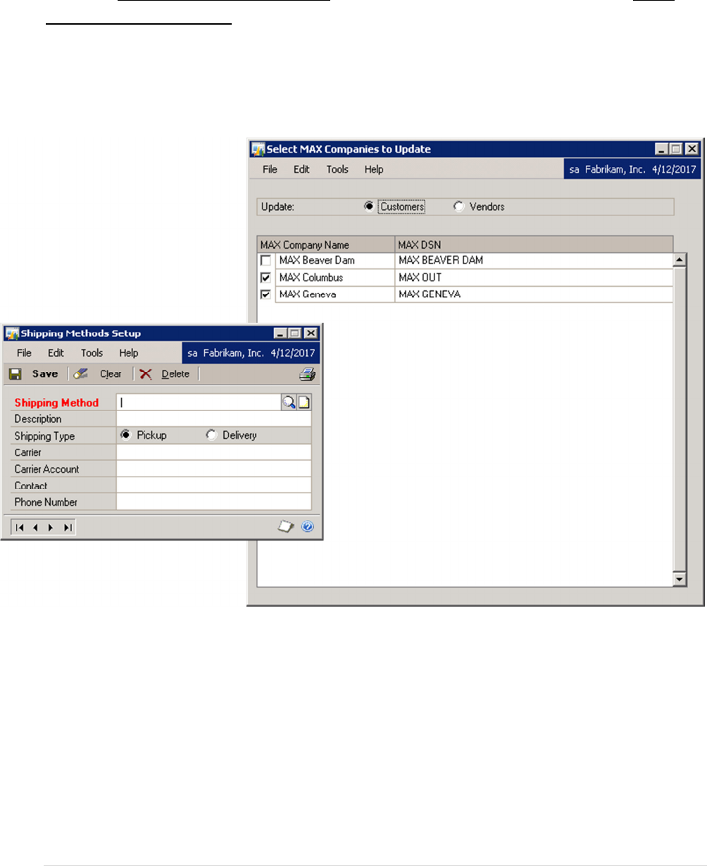 MAX Companies to Update window. To update the shipping methods in one or more MAX