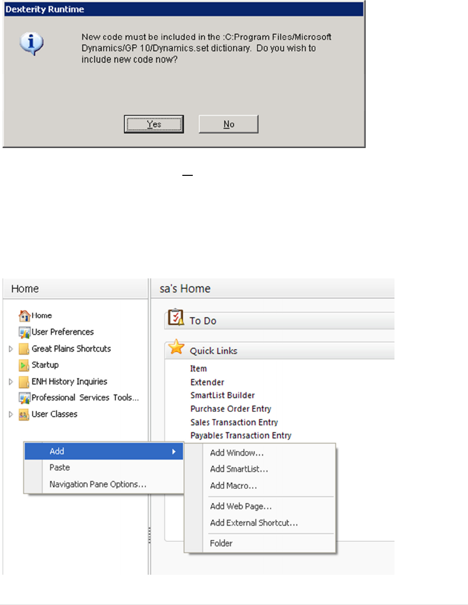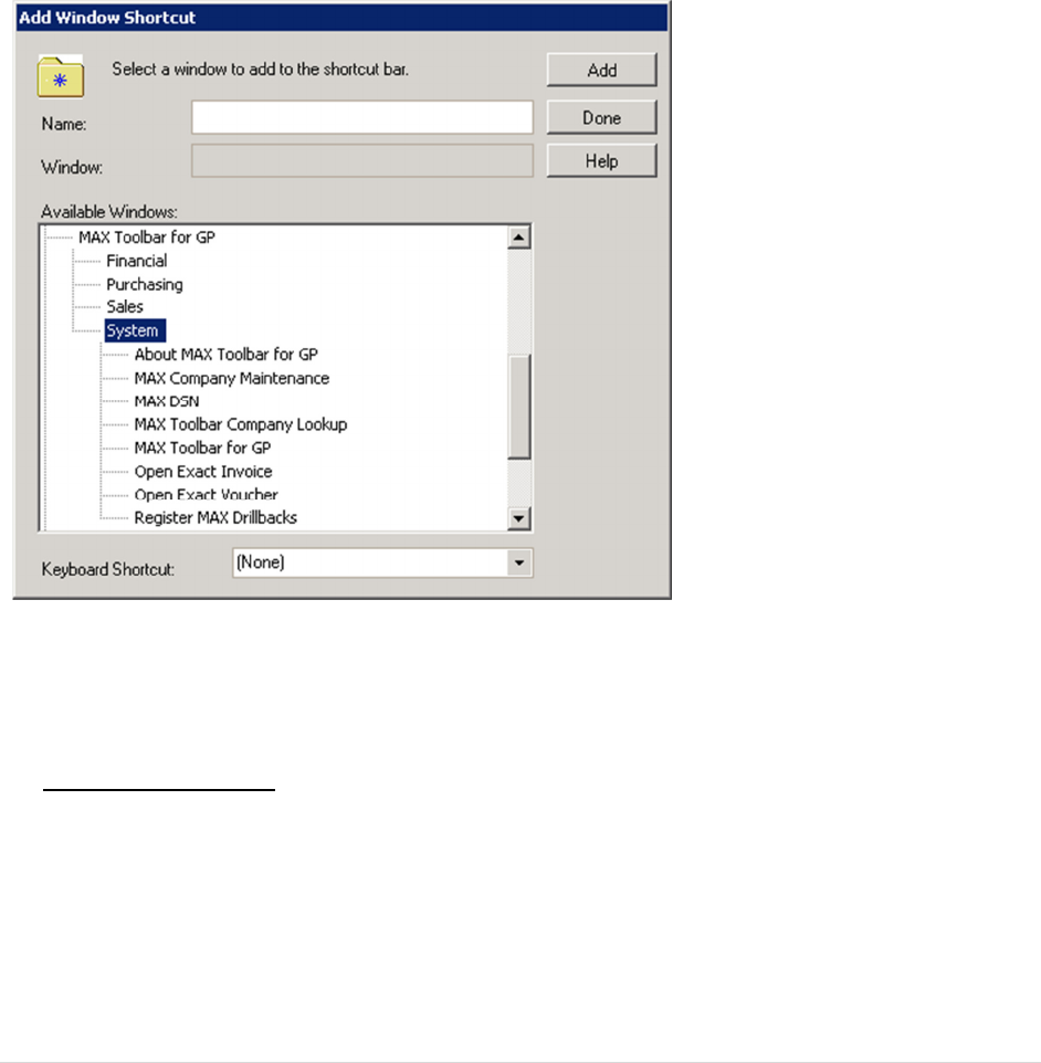 The Register MAX Toolbar window can also be added directly to the Dynamics Shortcuts