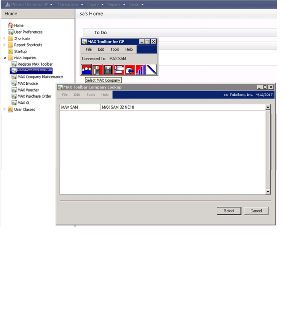 MAX Toolbar to Microsoft Dynamics GP Register MAX Toolbar