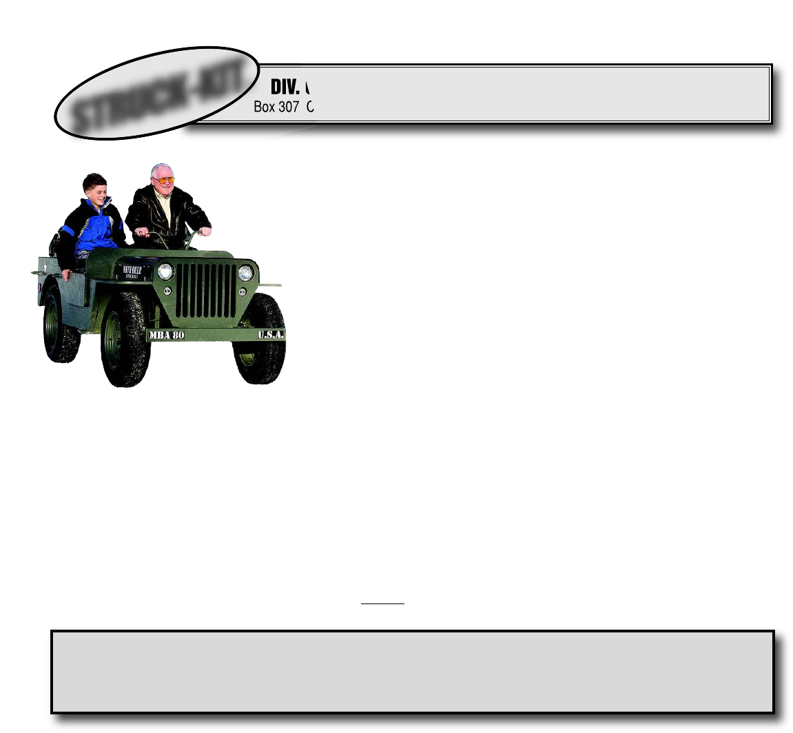 Jeep® is a registered trademark of ChryslerLLC MINI-BEEP® is a registered trademark of C. F. Struck Corp.