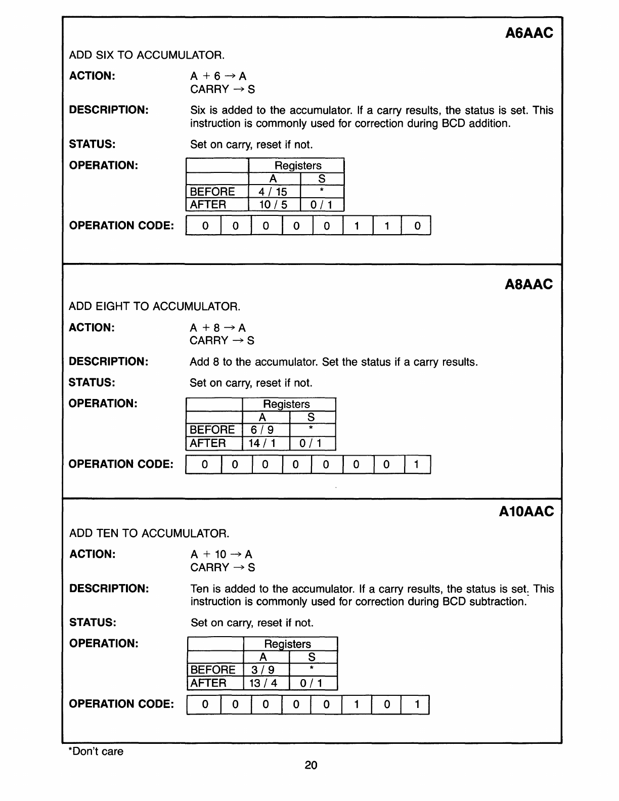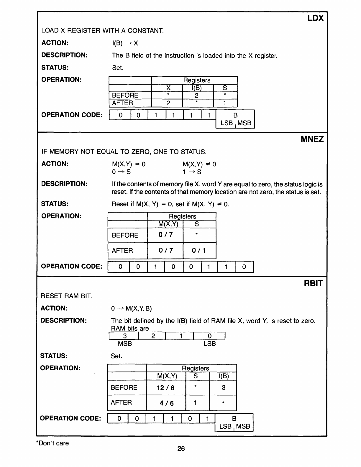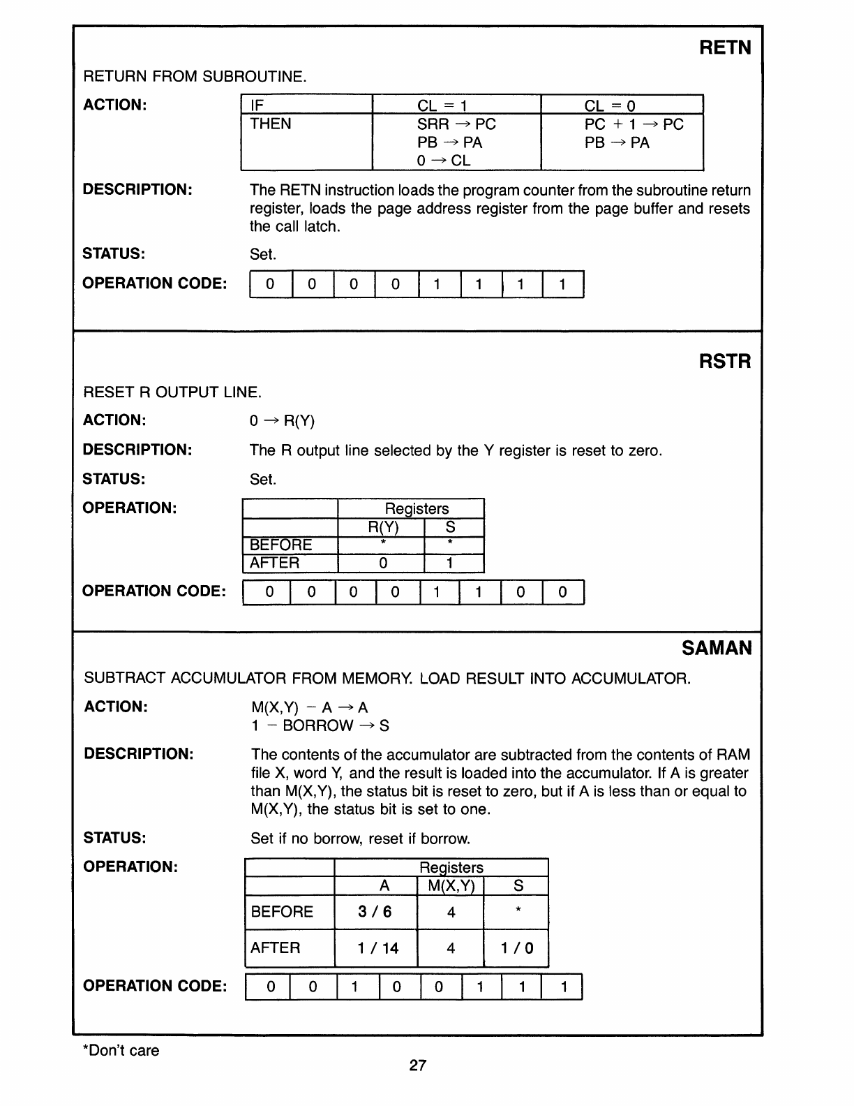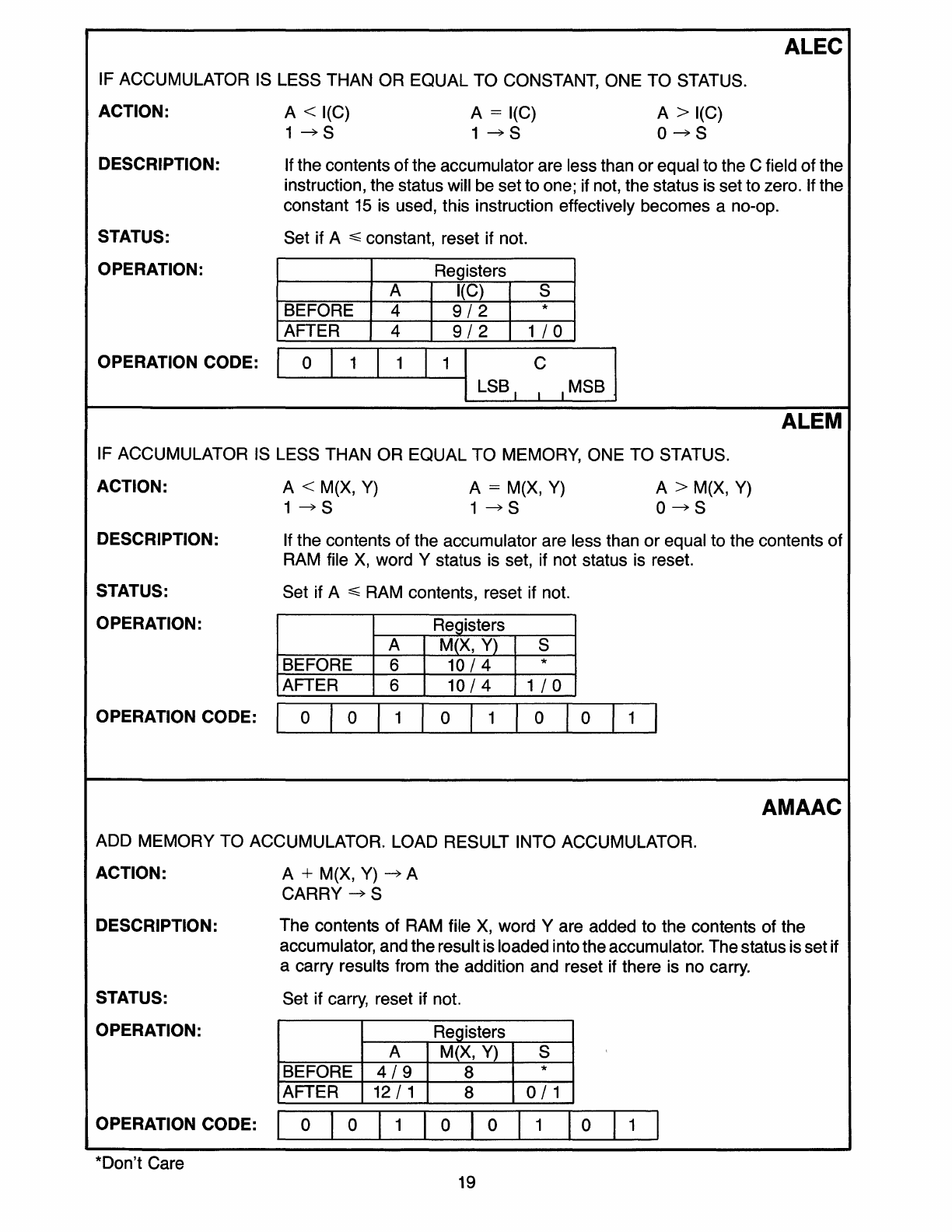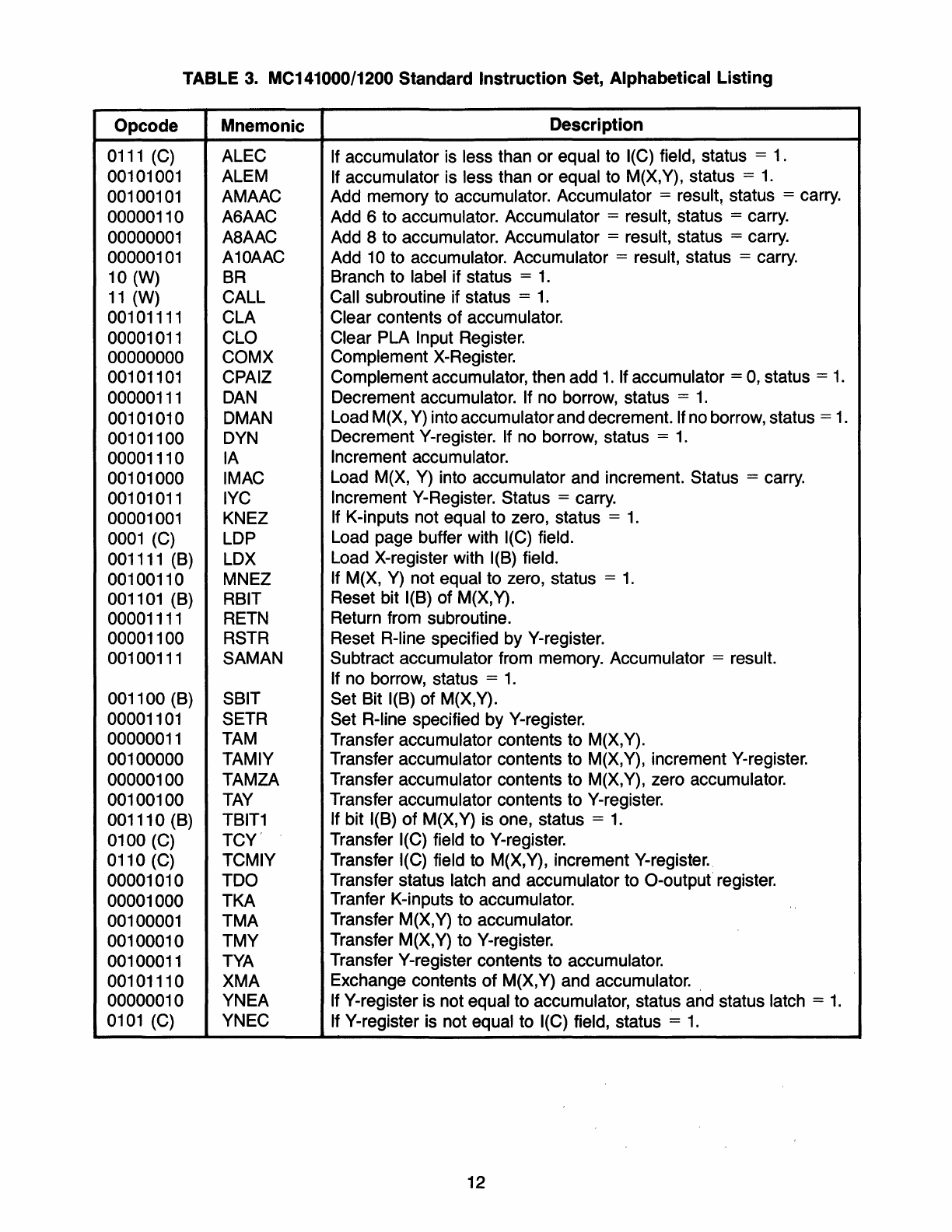000/1200 Standard Instruction Set, Functional Listing