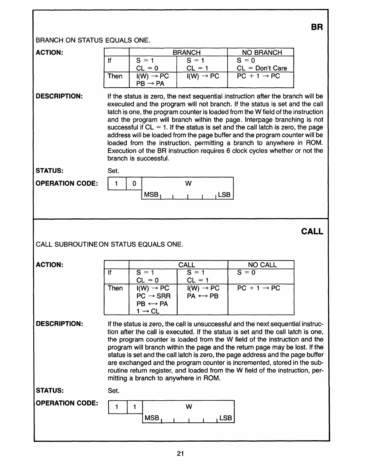 Figure 6 Internal BR, CALL and RETN Operations