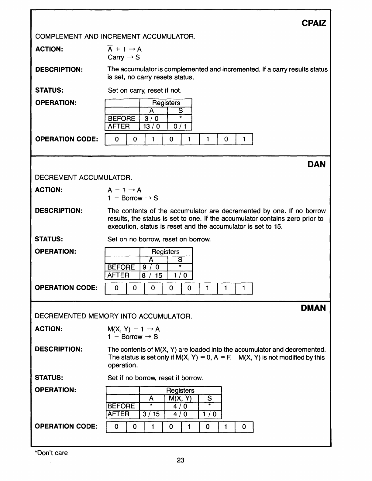 Instruction Tables