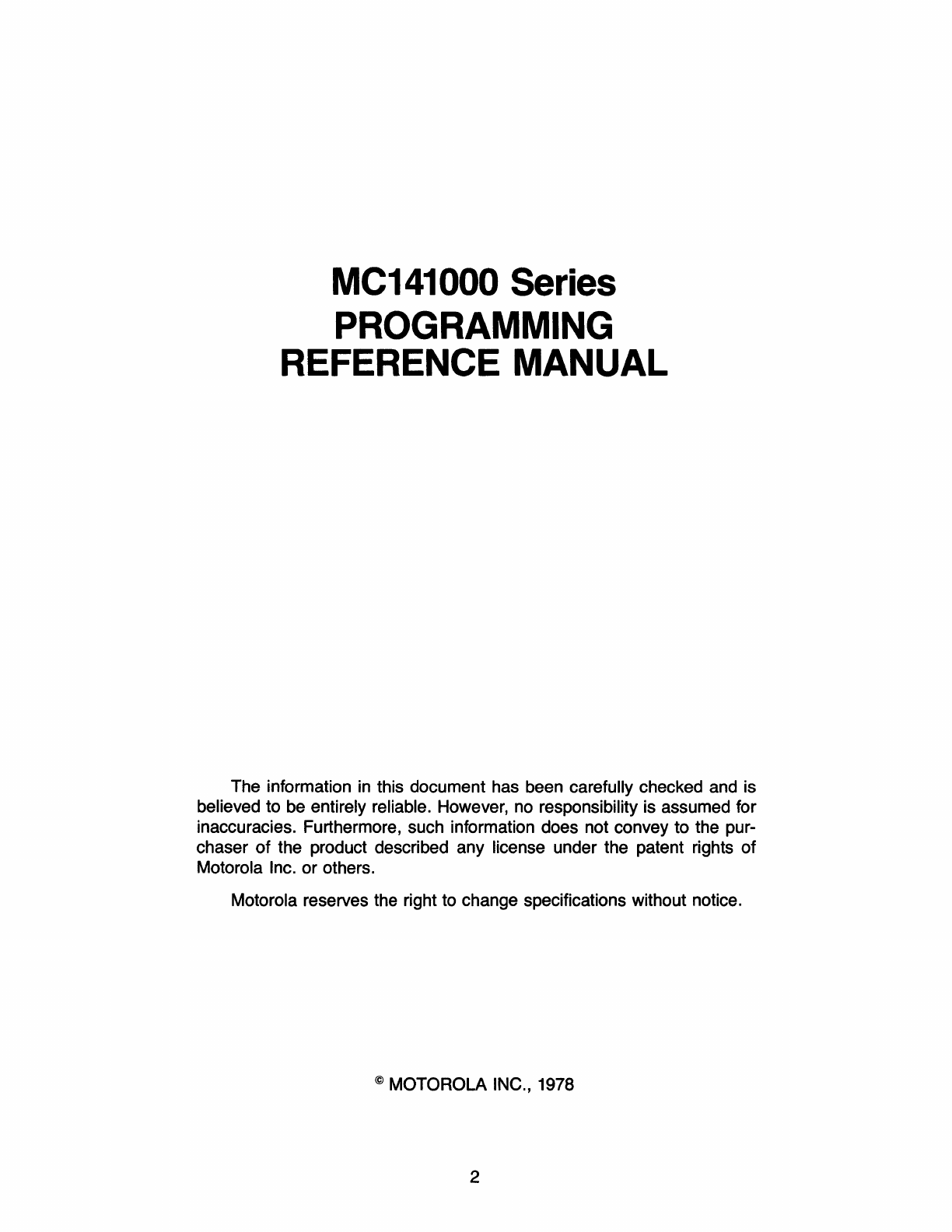MC141000 Series Programming Manual 1978
