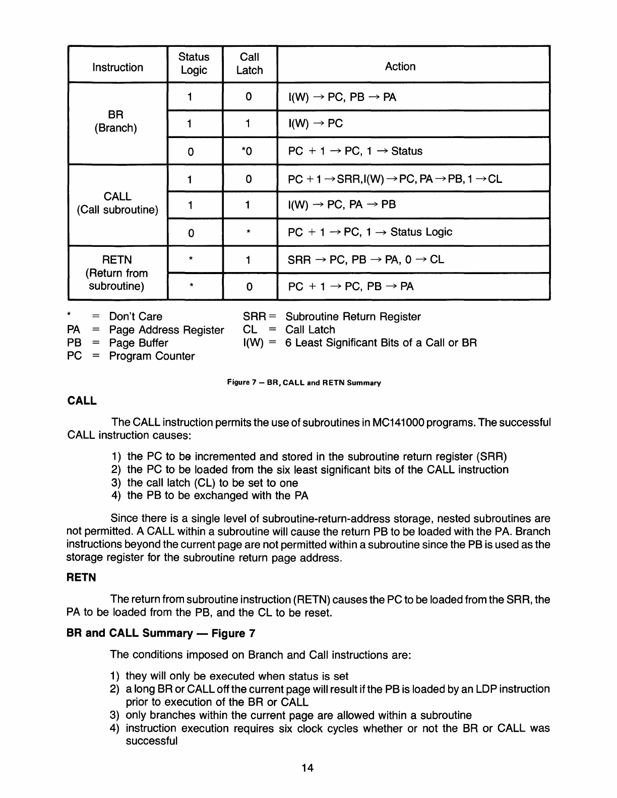 Figure 7 BR, CALL and RETN Summary