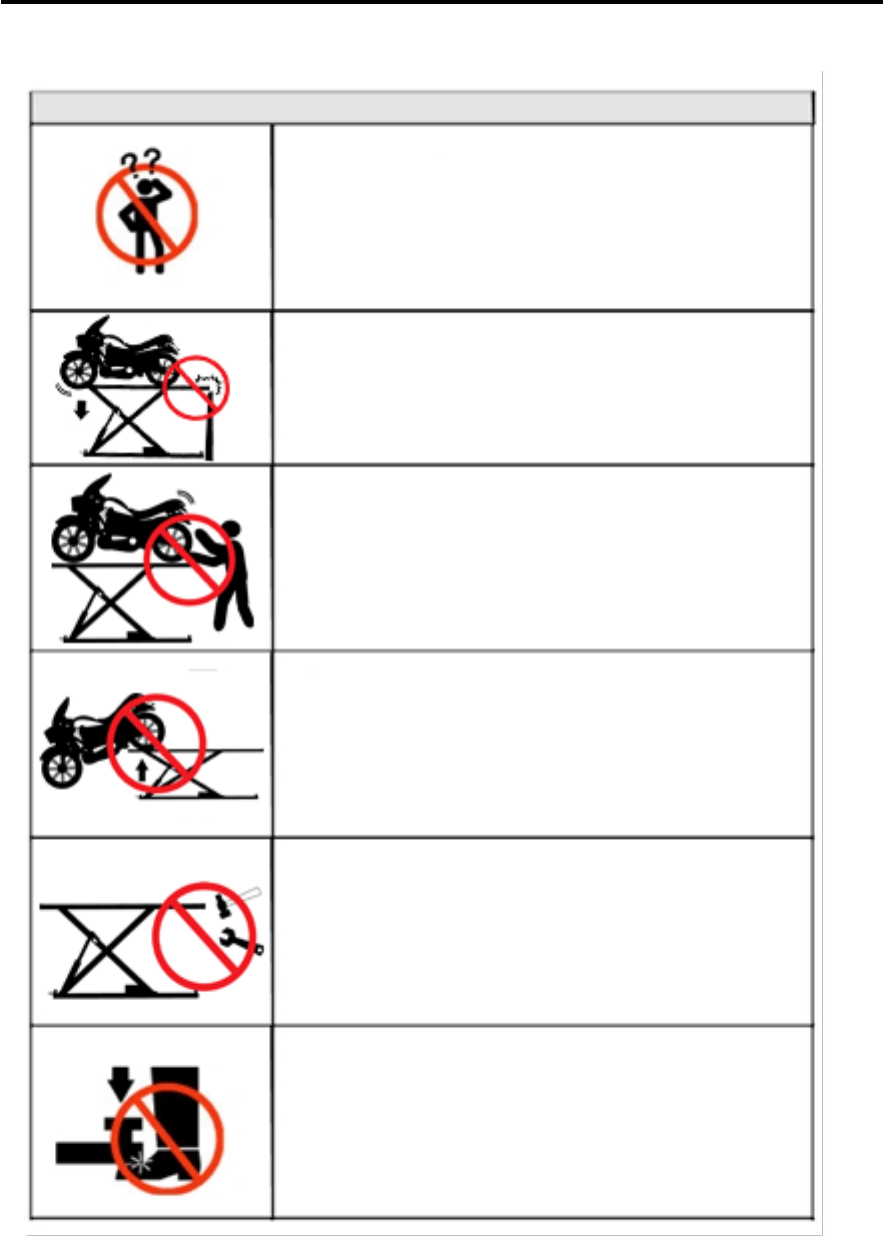 DO NOT USE THE MOTORCYCLE LIFT IN A
