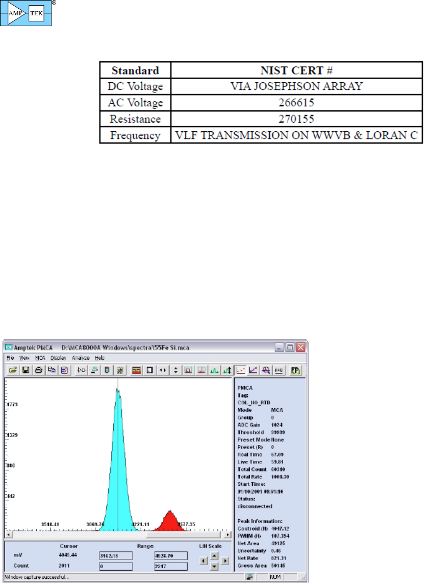 Multimeter 34401A is used to calibrate the MCA8000D Option PA. The following NIST numbers are applicable to