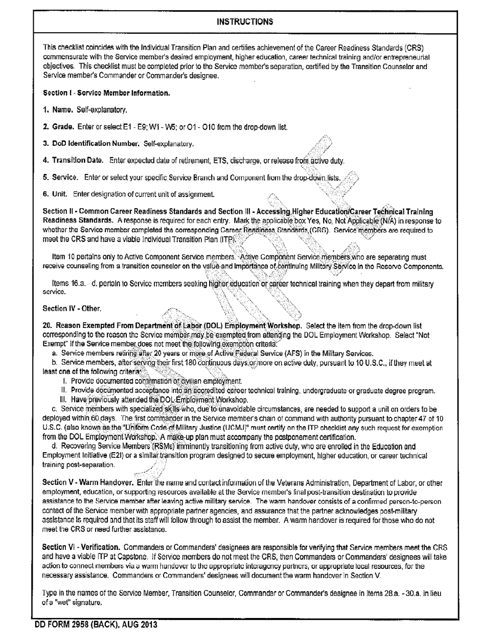 Transition Counselor (UTC), to review and complete DD Form 2958,