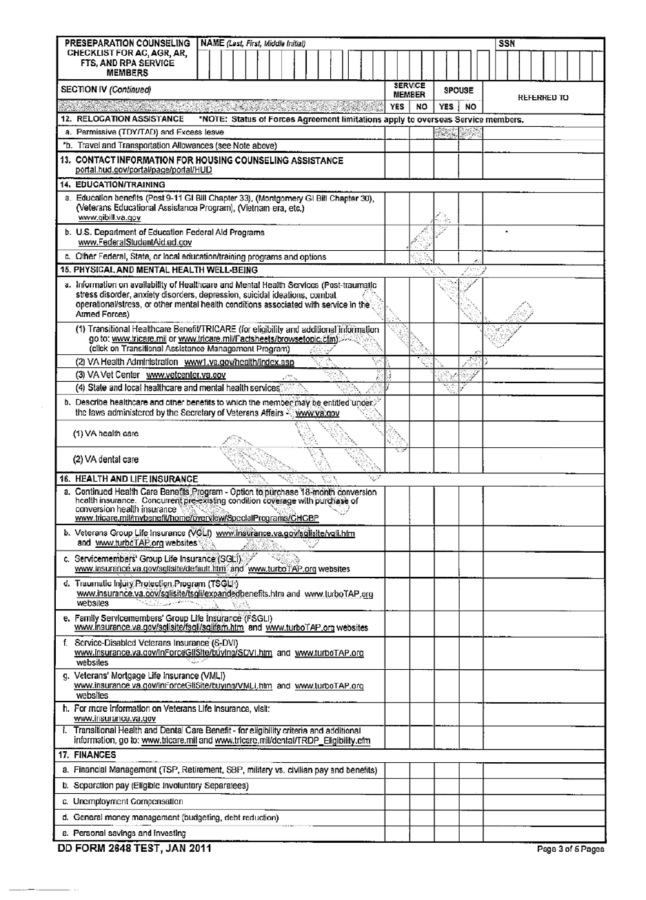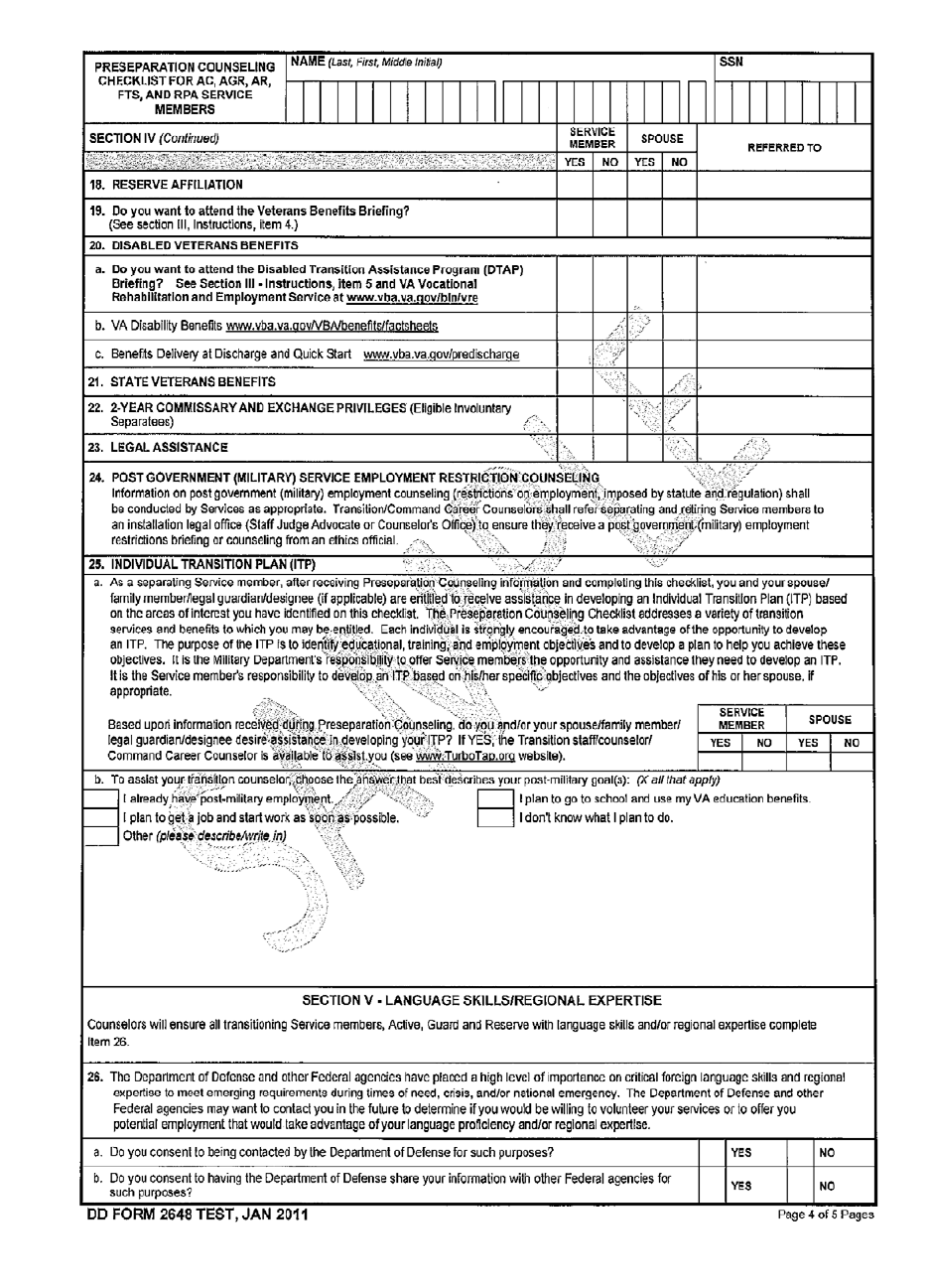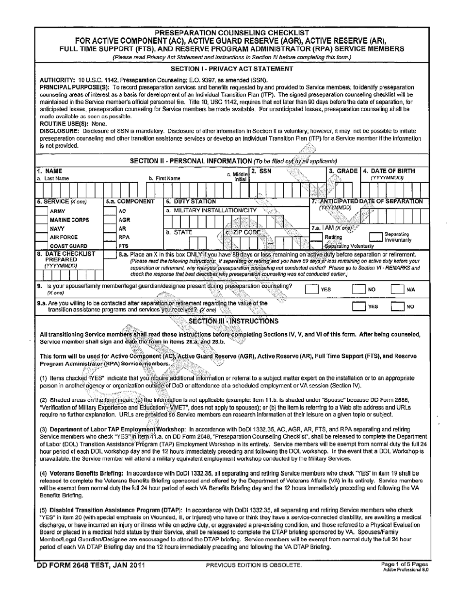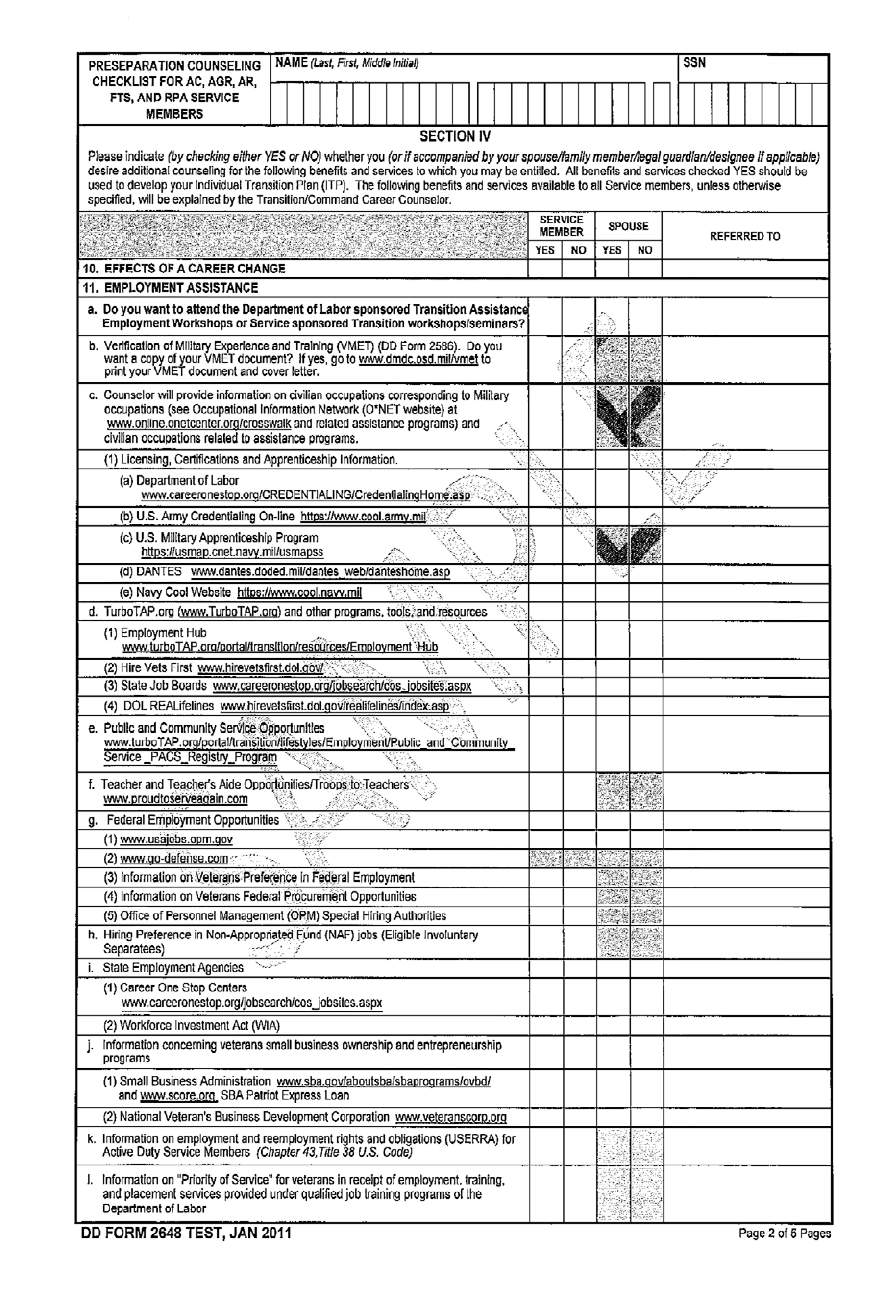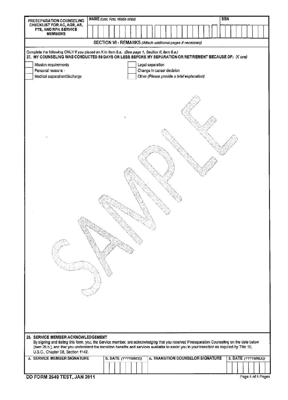 (2) Sample DD Form 2648 Preseparation Counseling Form