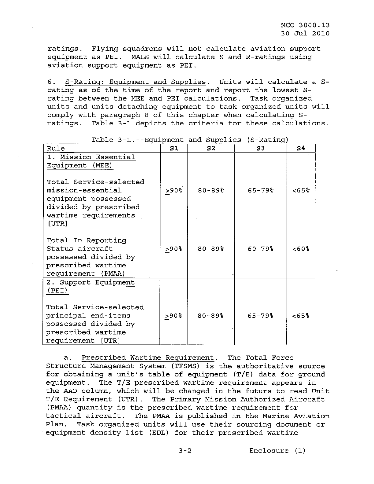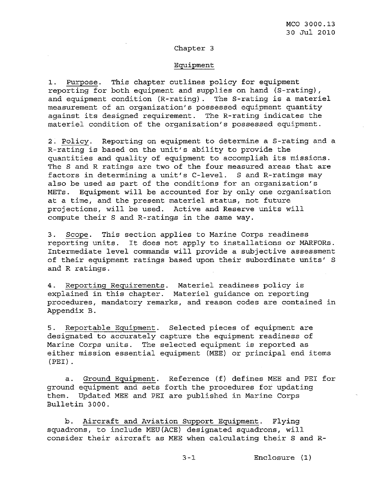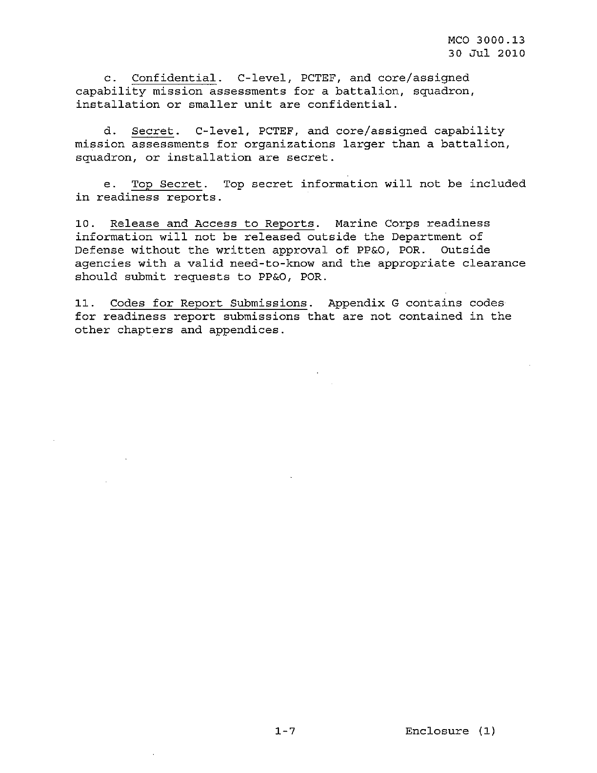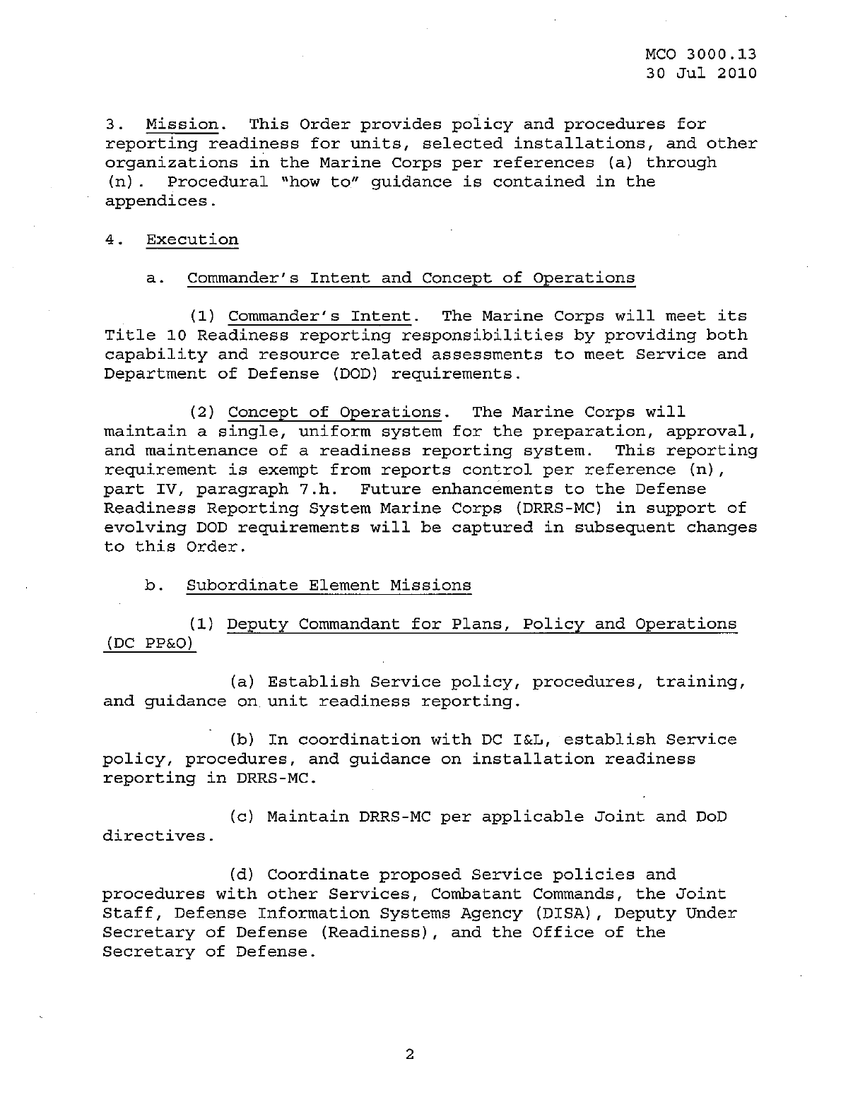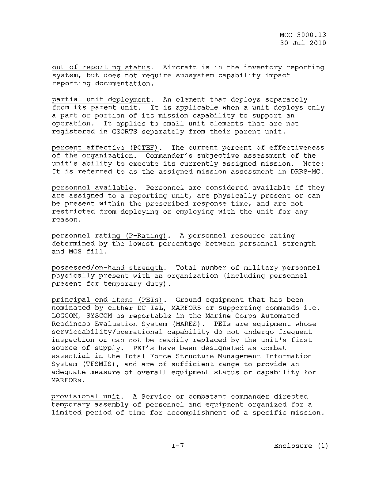 MCO 3000.13 MARINE CORPS READINESS REPORTING STANDARD OPERATING PROCEDURES (SOP) 3000