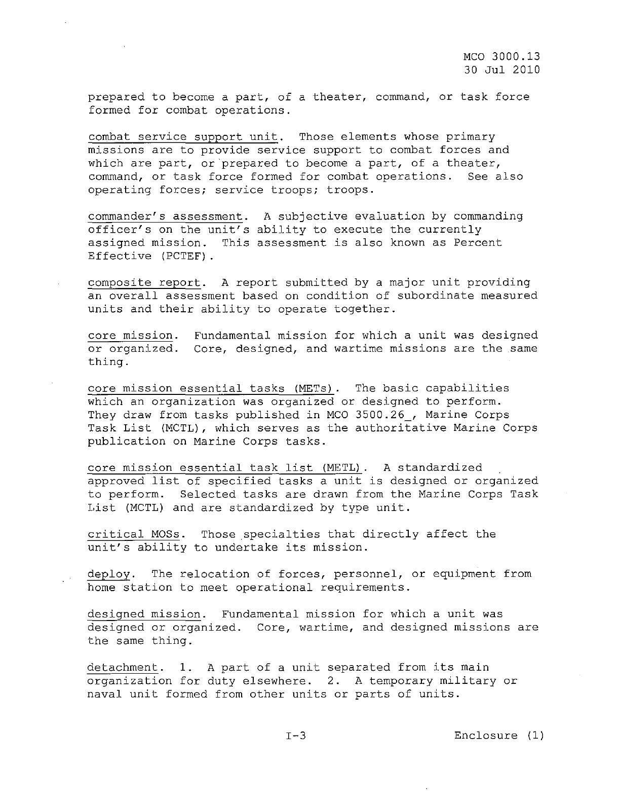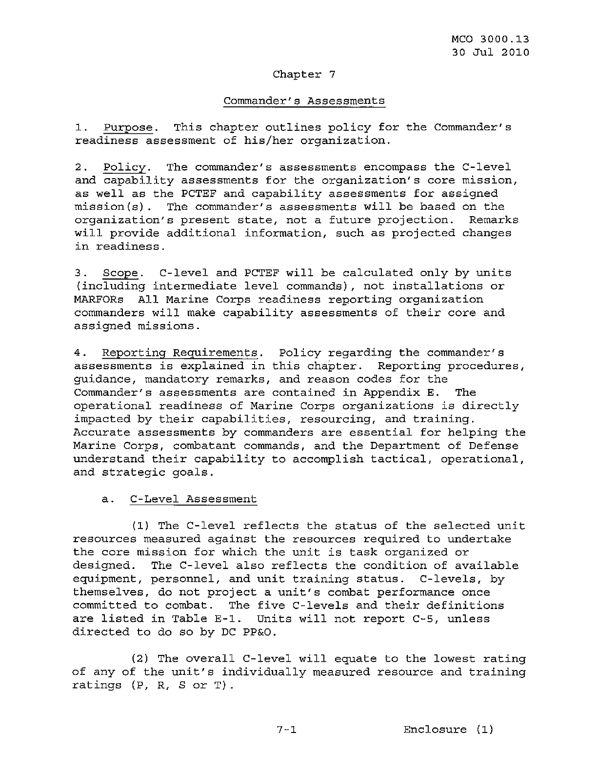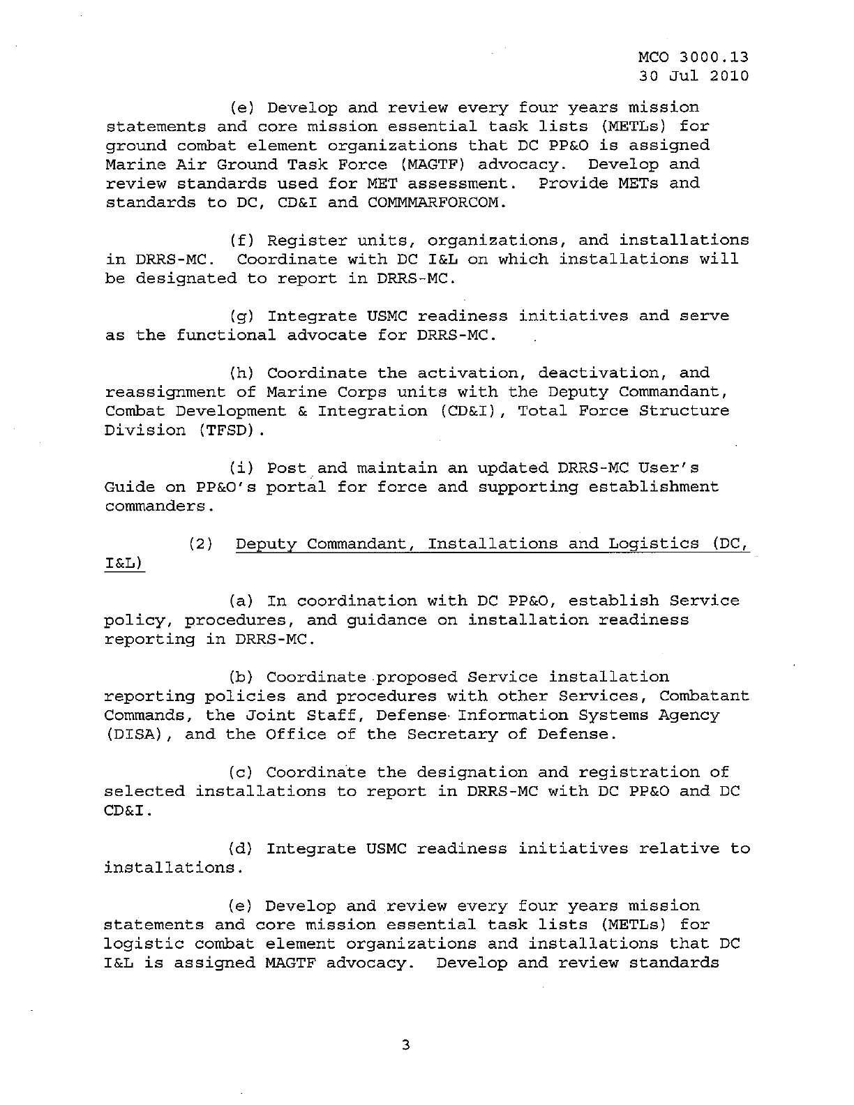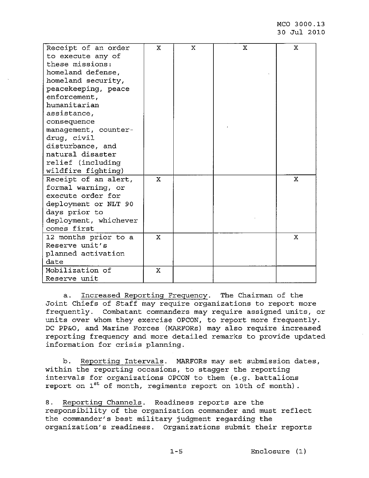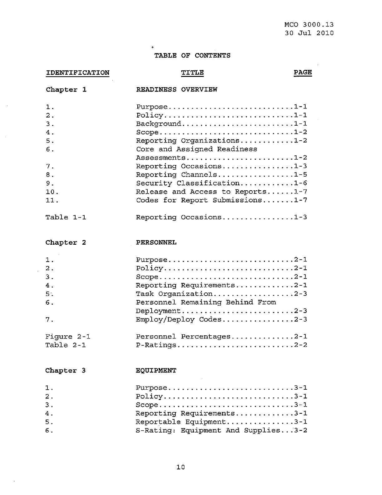 MCO 3000.13 MARINE CORPS READINESS REPORTING STANDARD OPERATING PROCEDURES (SOP) 3000
