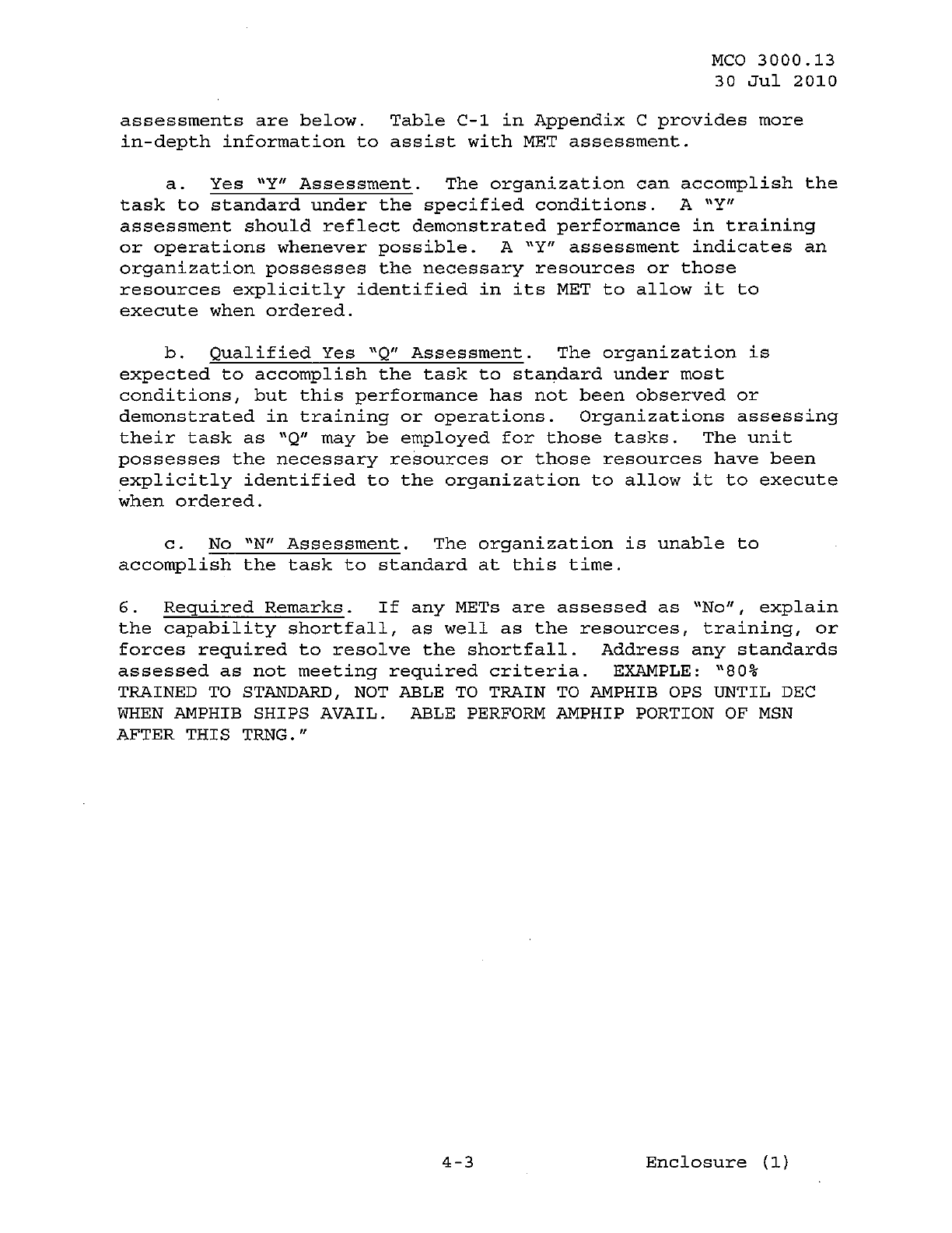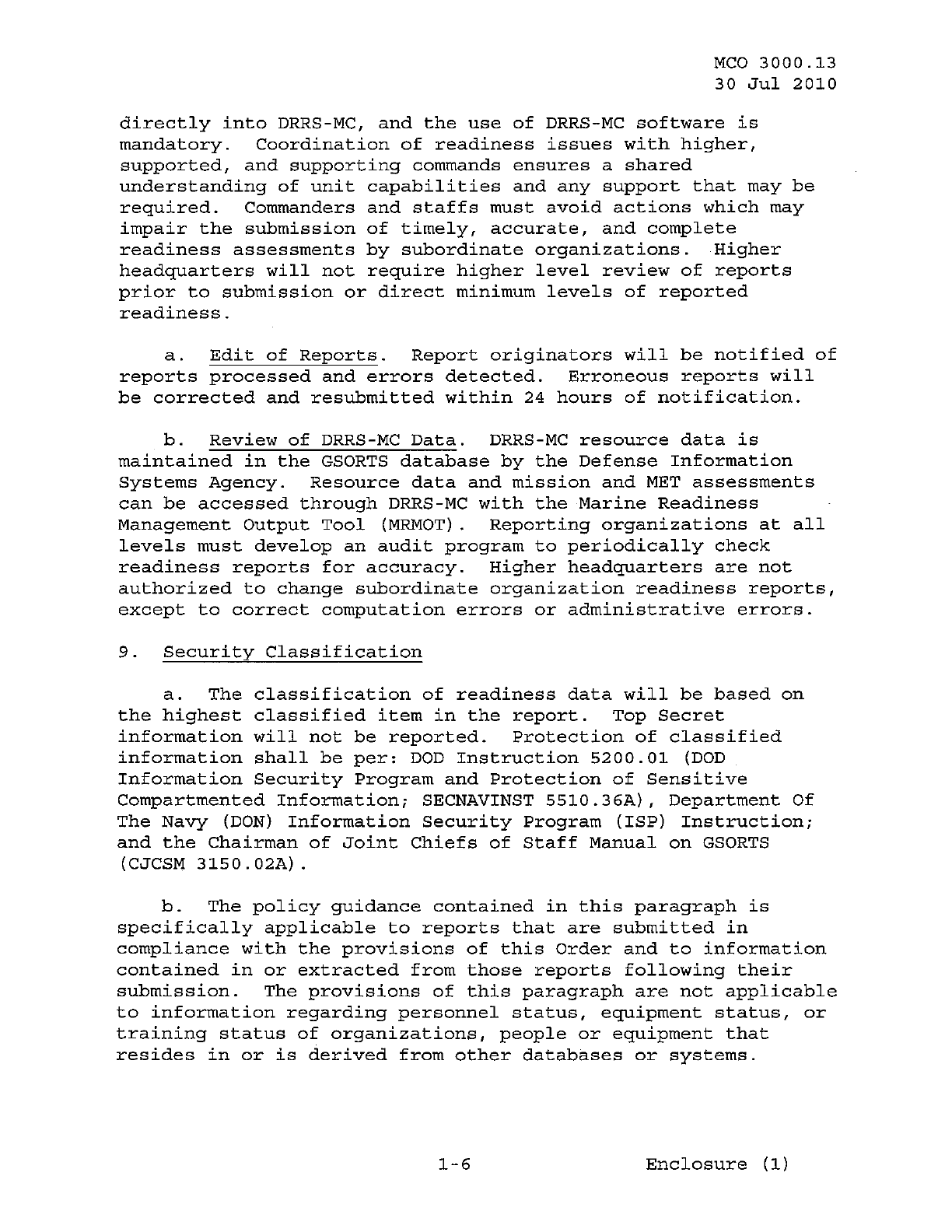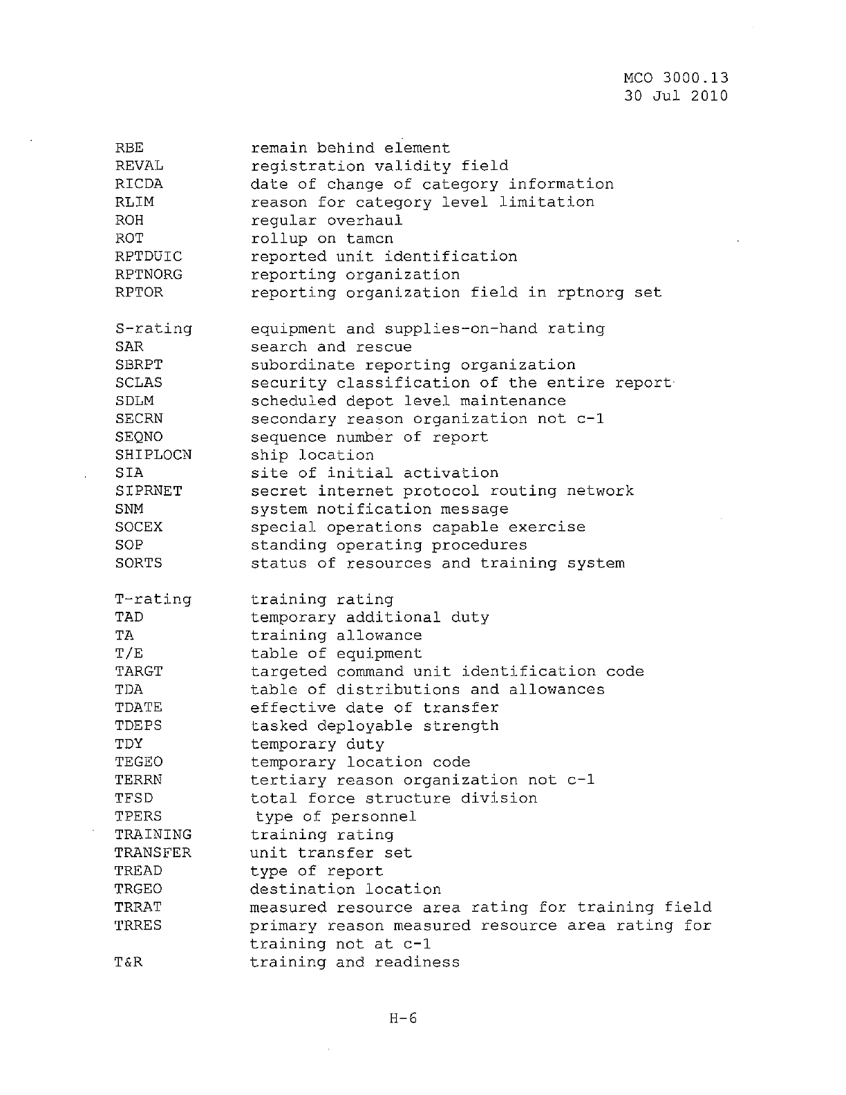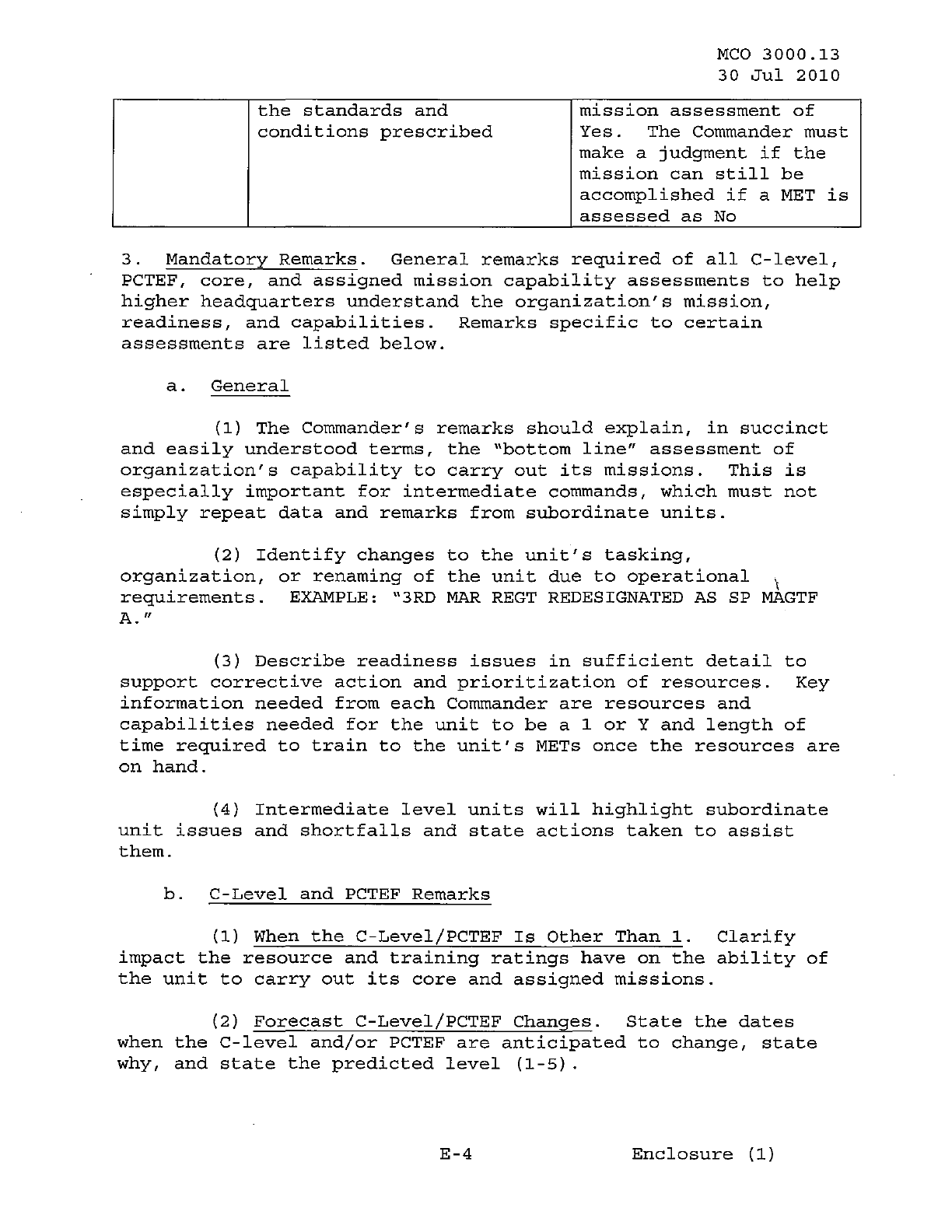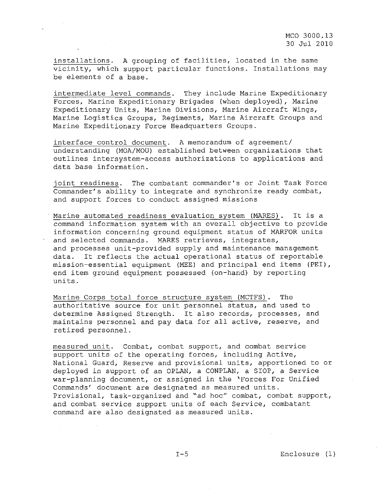 MCO 3000.13 MARINE CORPS READINESS REPORTING STANDARD OPERATING PROCEDURES (SOP) 3000