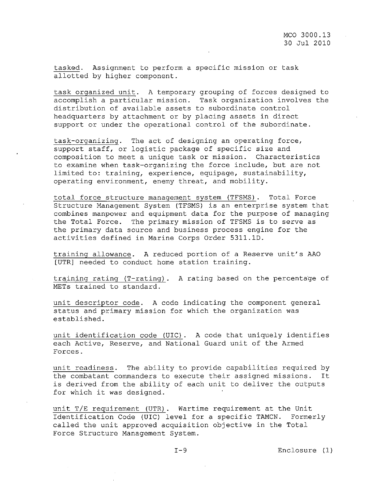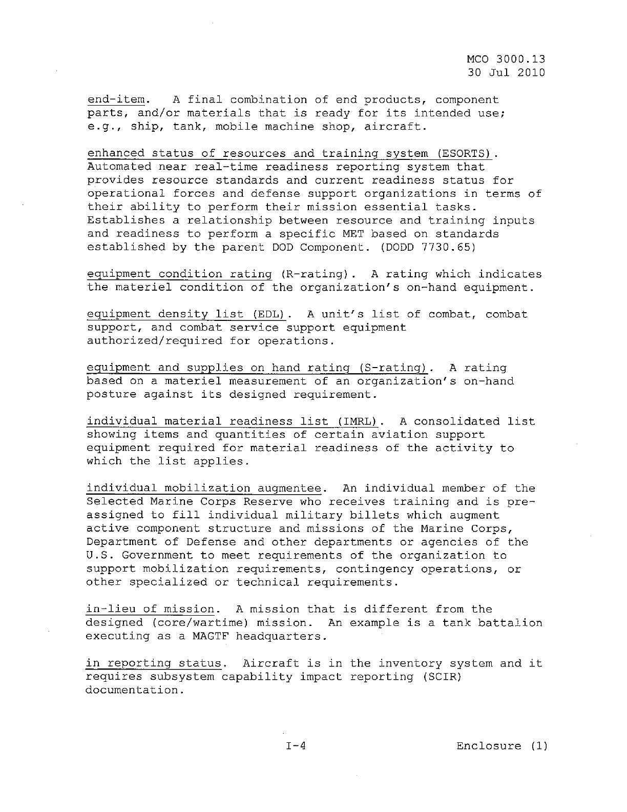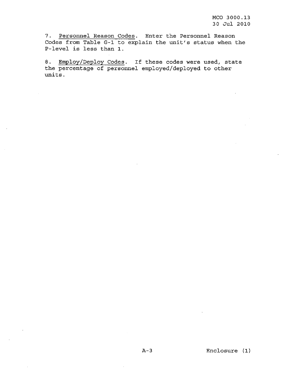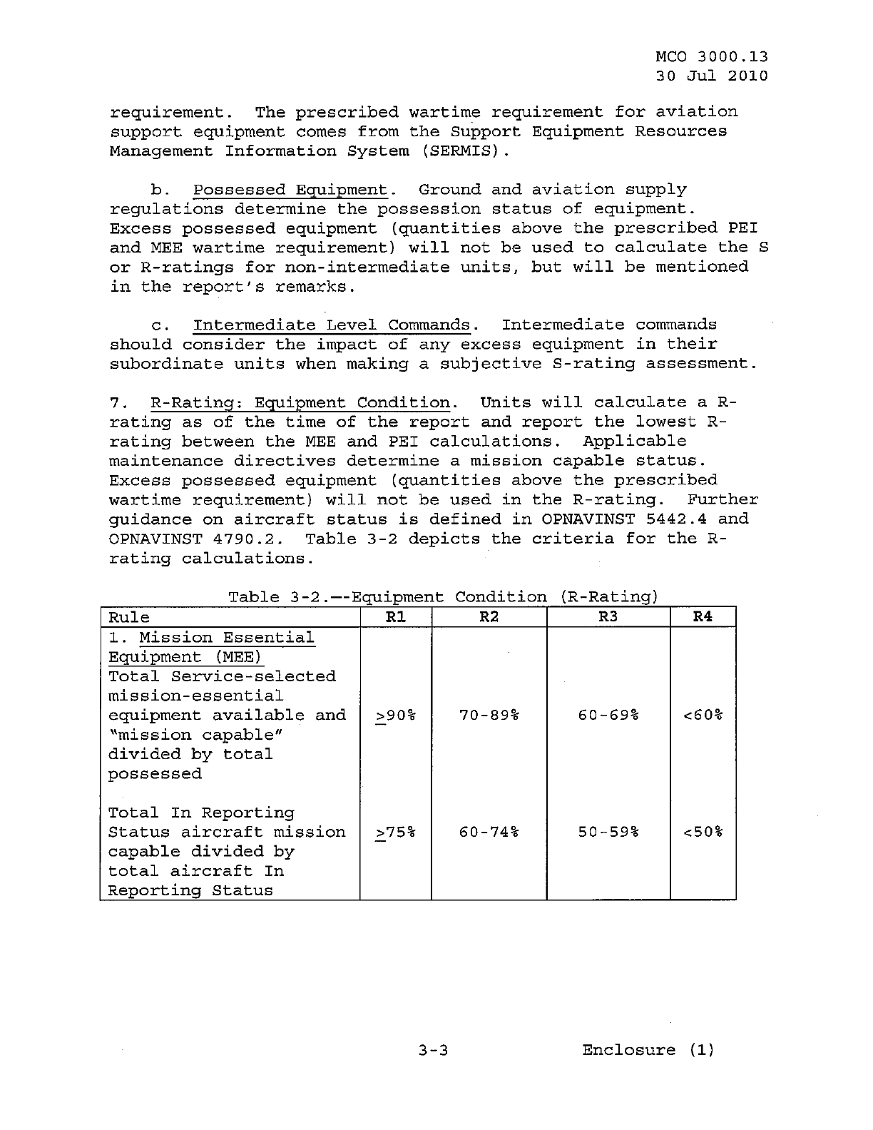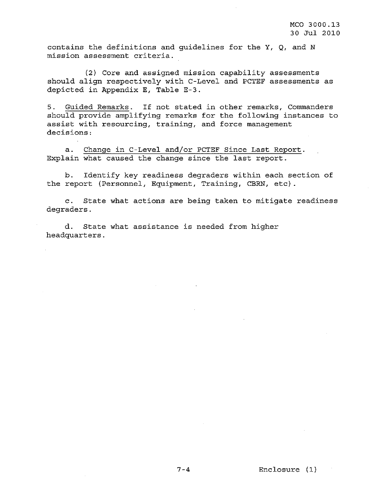 MCO 3000.13 MARINE CORPS READINESS REPORTING STANDARD OPERATING PROCEDURES (SOP) 3000