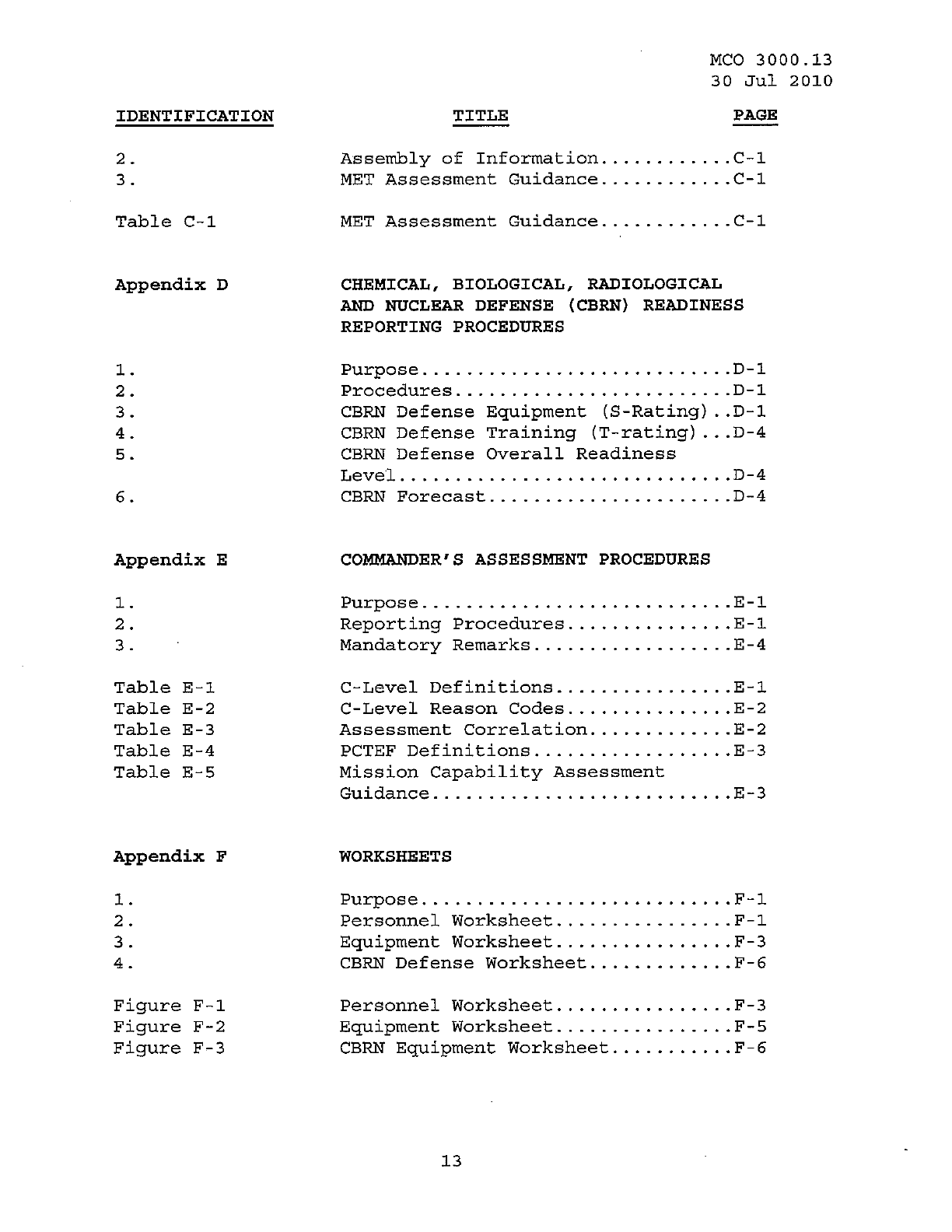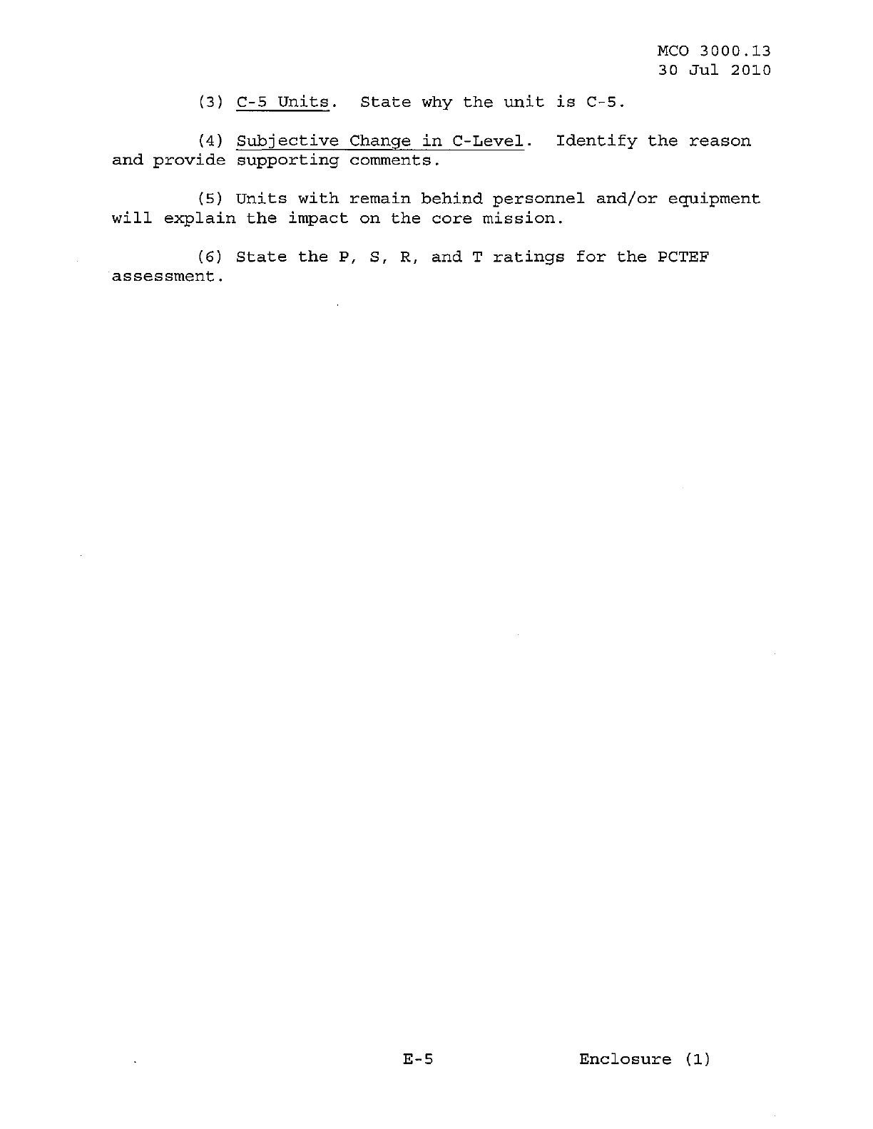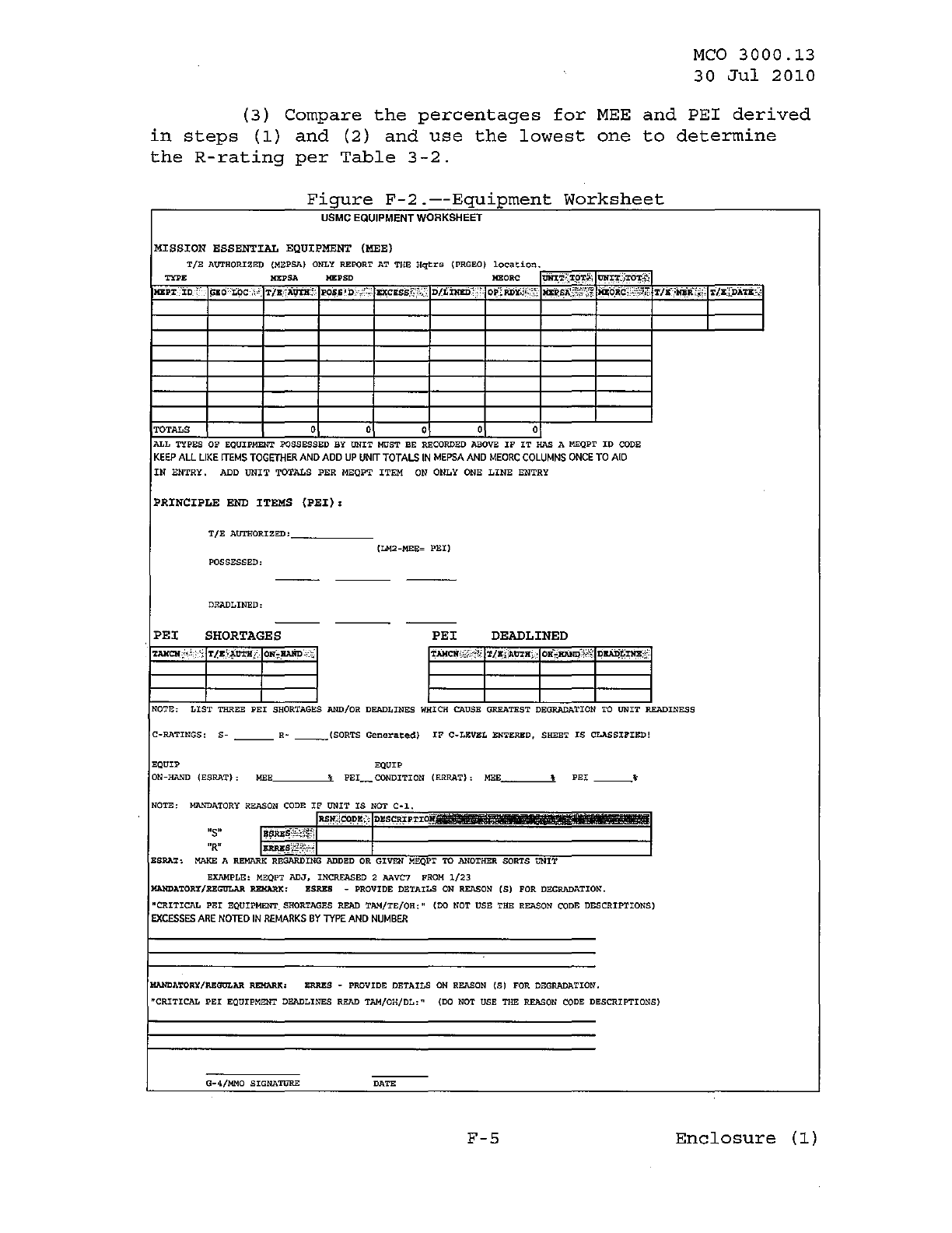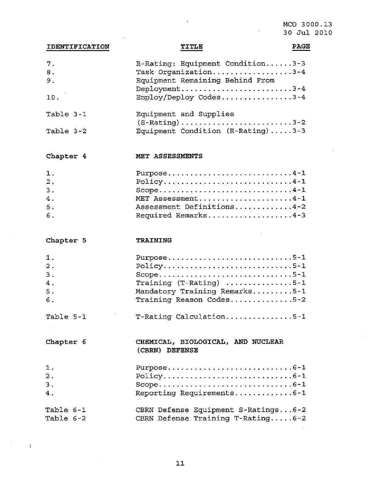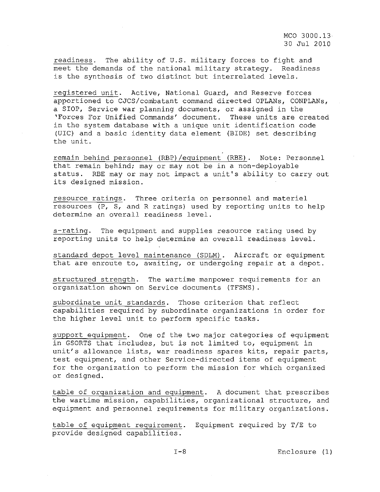 MCO 3000.13 MARINE CORPS READINESS REPORTING STANDARD OPERATING PROCEDURES (SOP) 3000