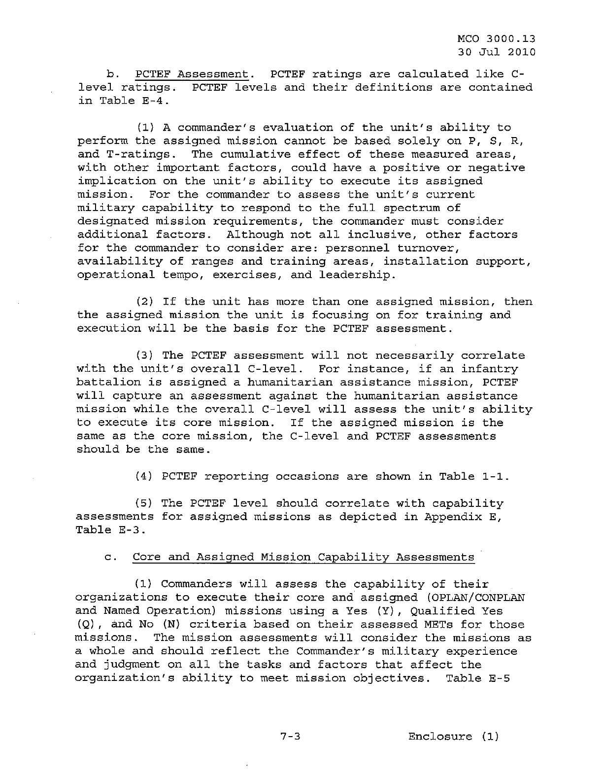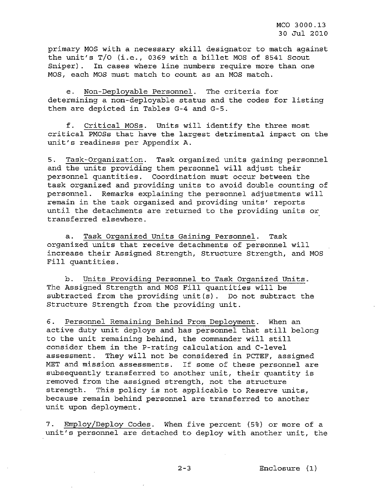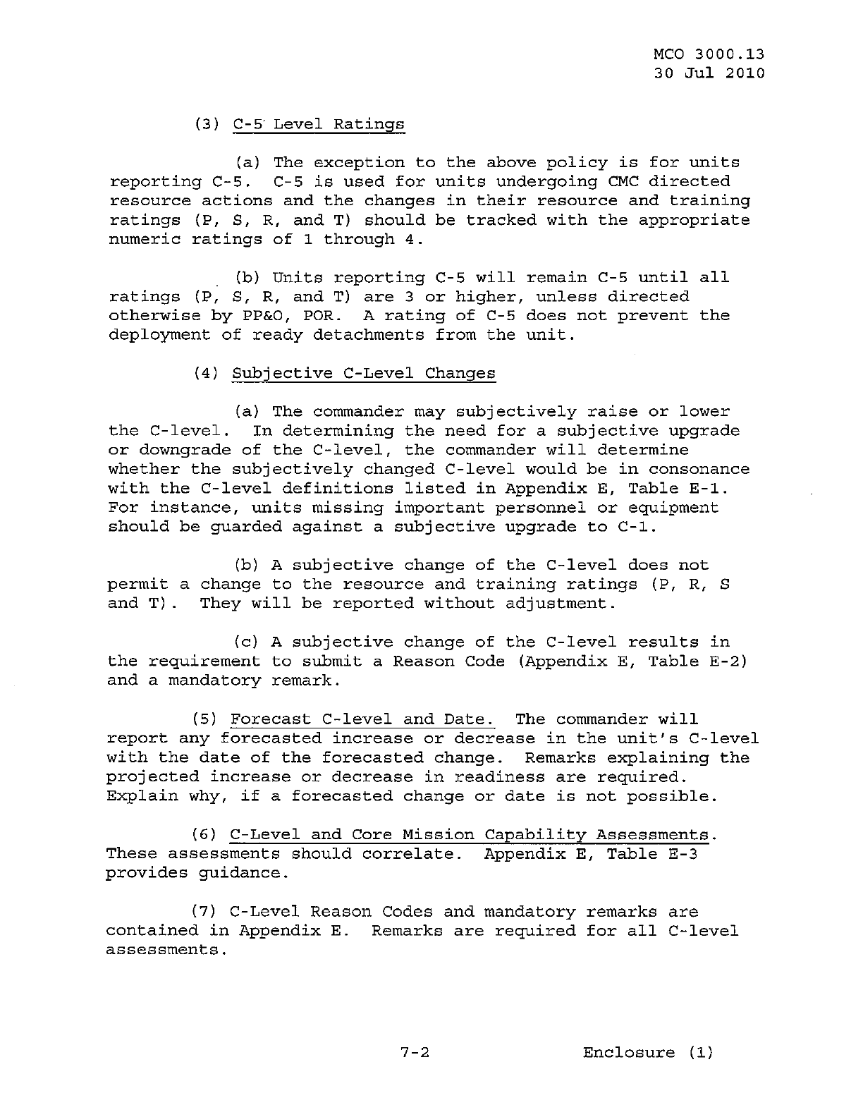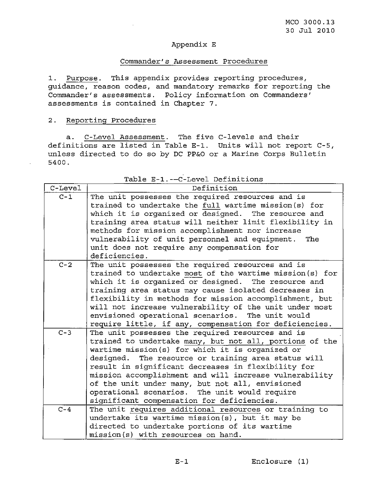 MCO 3000.13 MARINE CORPS READINESS REPORTING STANDARD OPERATING PROCEDURES (SOP) 3000