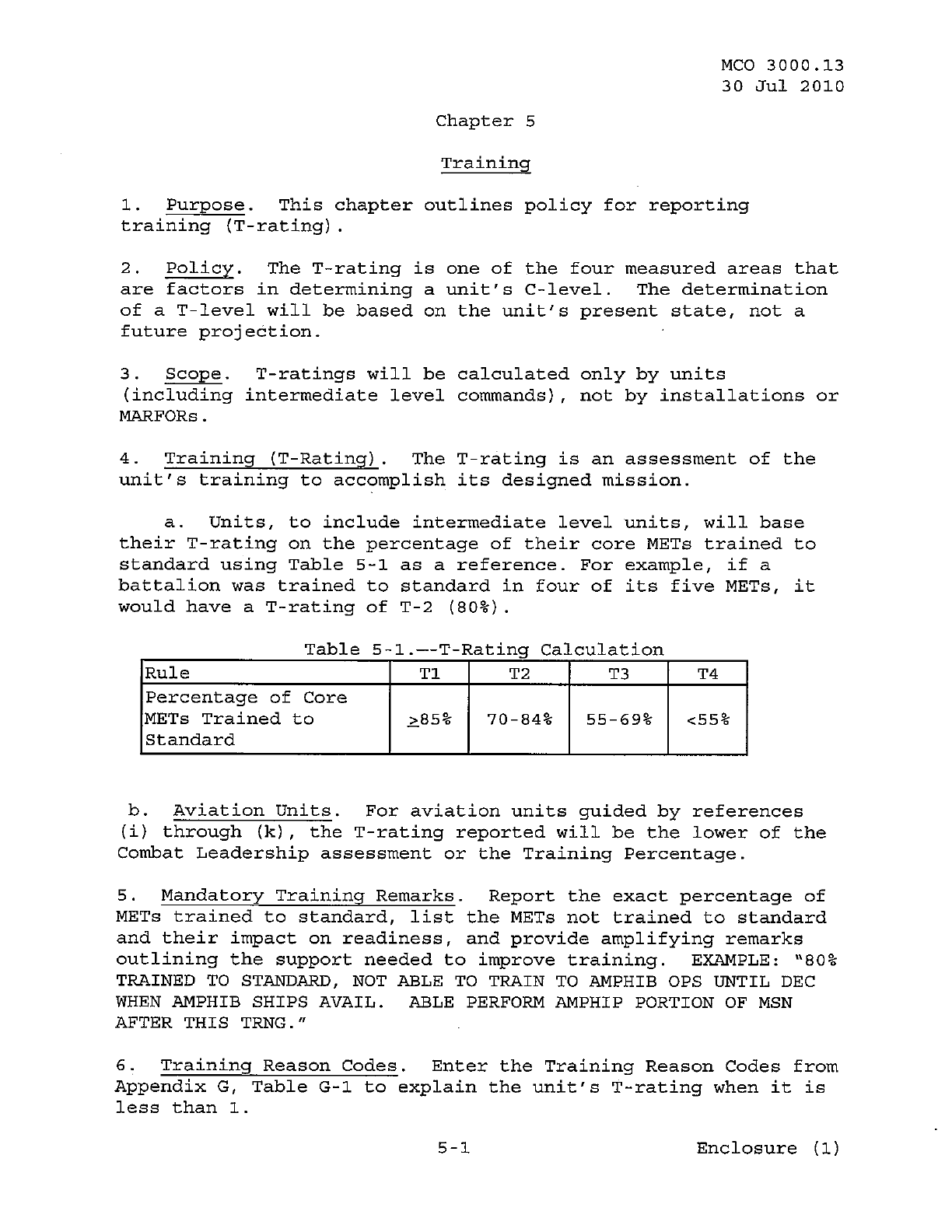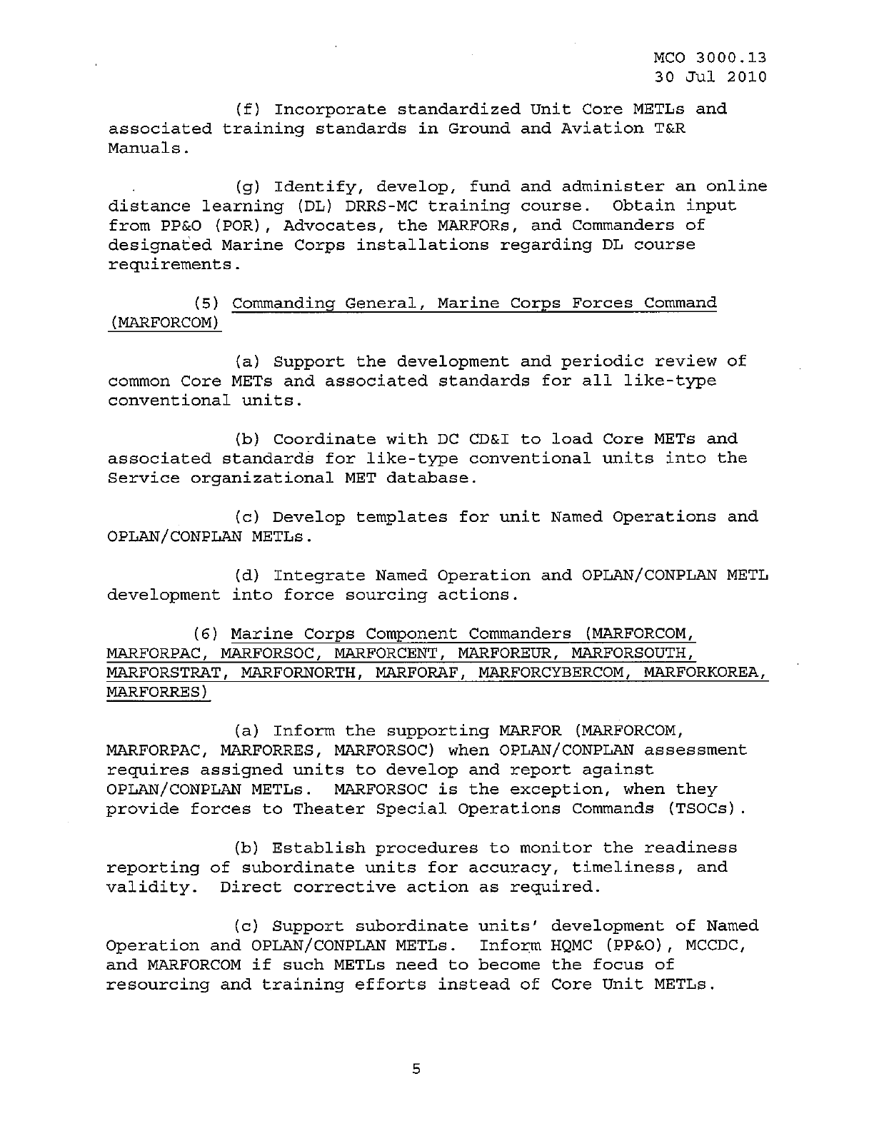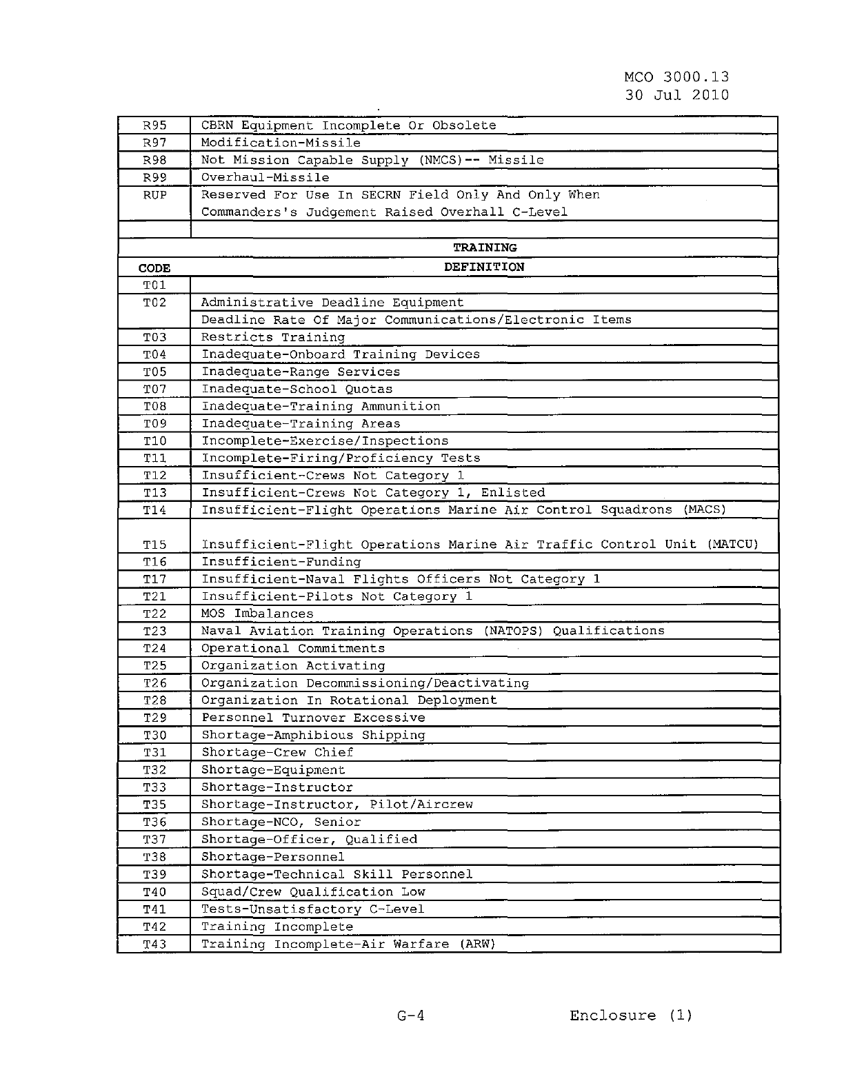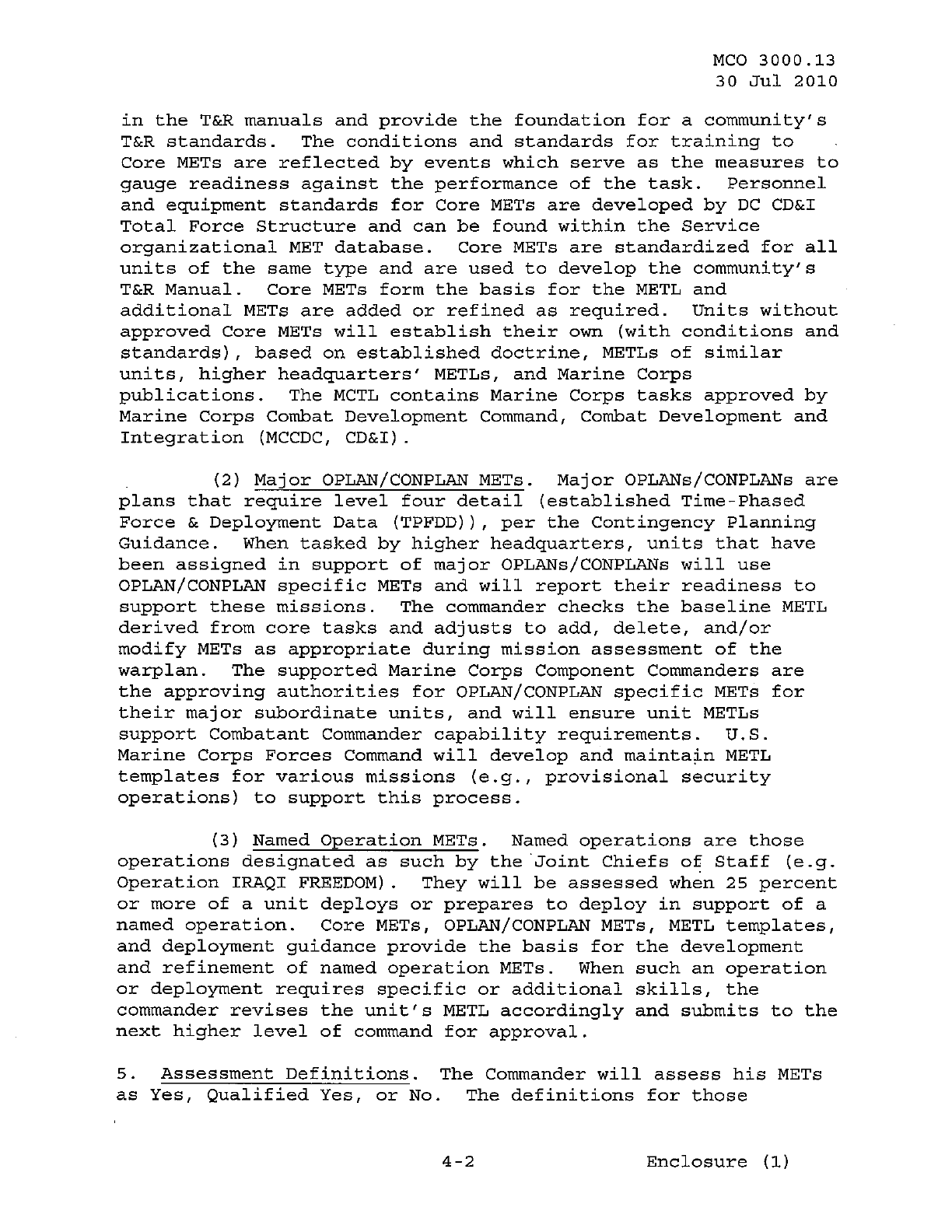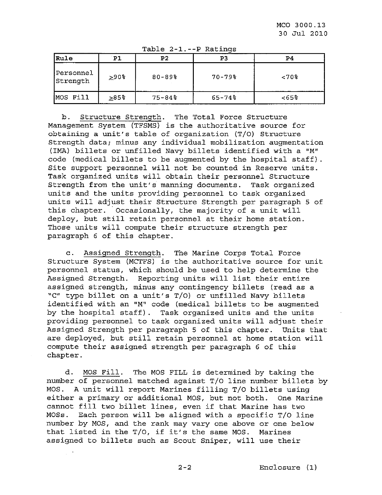 MCO 3000.13 MARINE CORPS READINESS REPORTING STANDARD OPERATING PROCEDURES (SOP) 3000