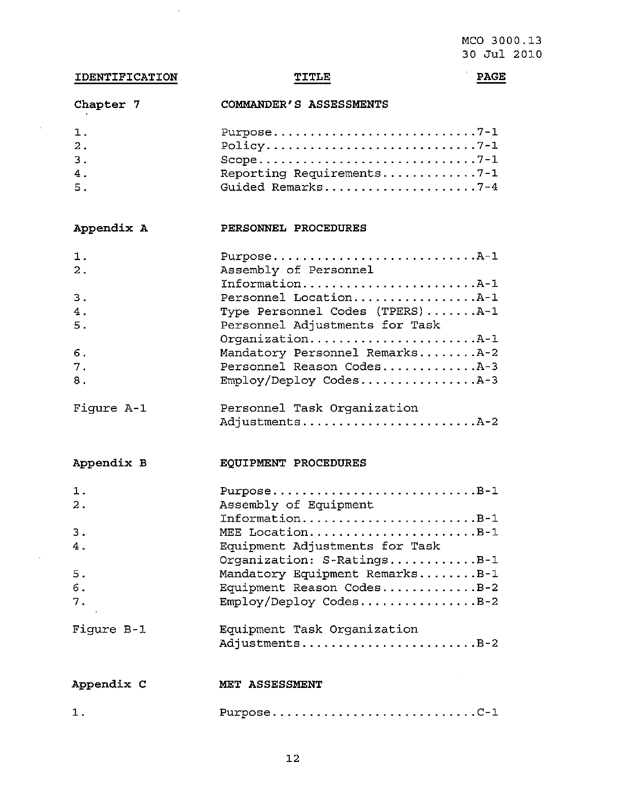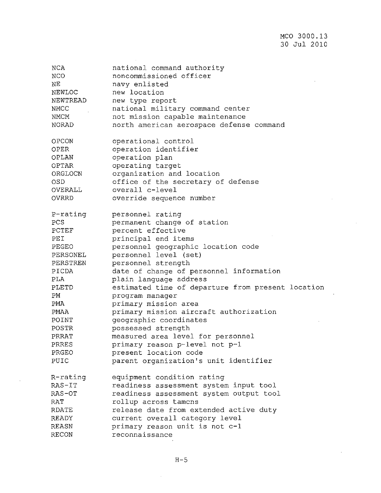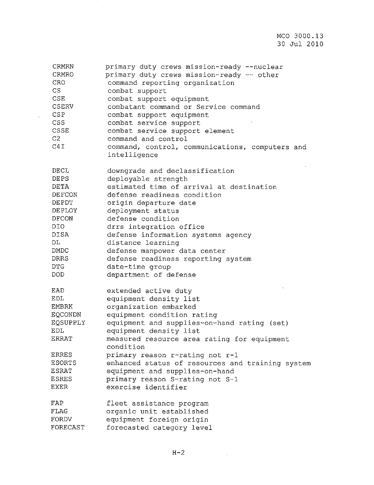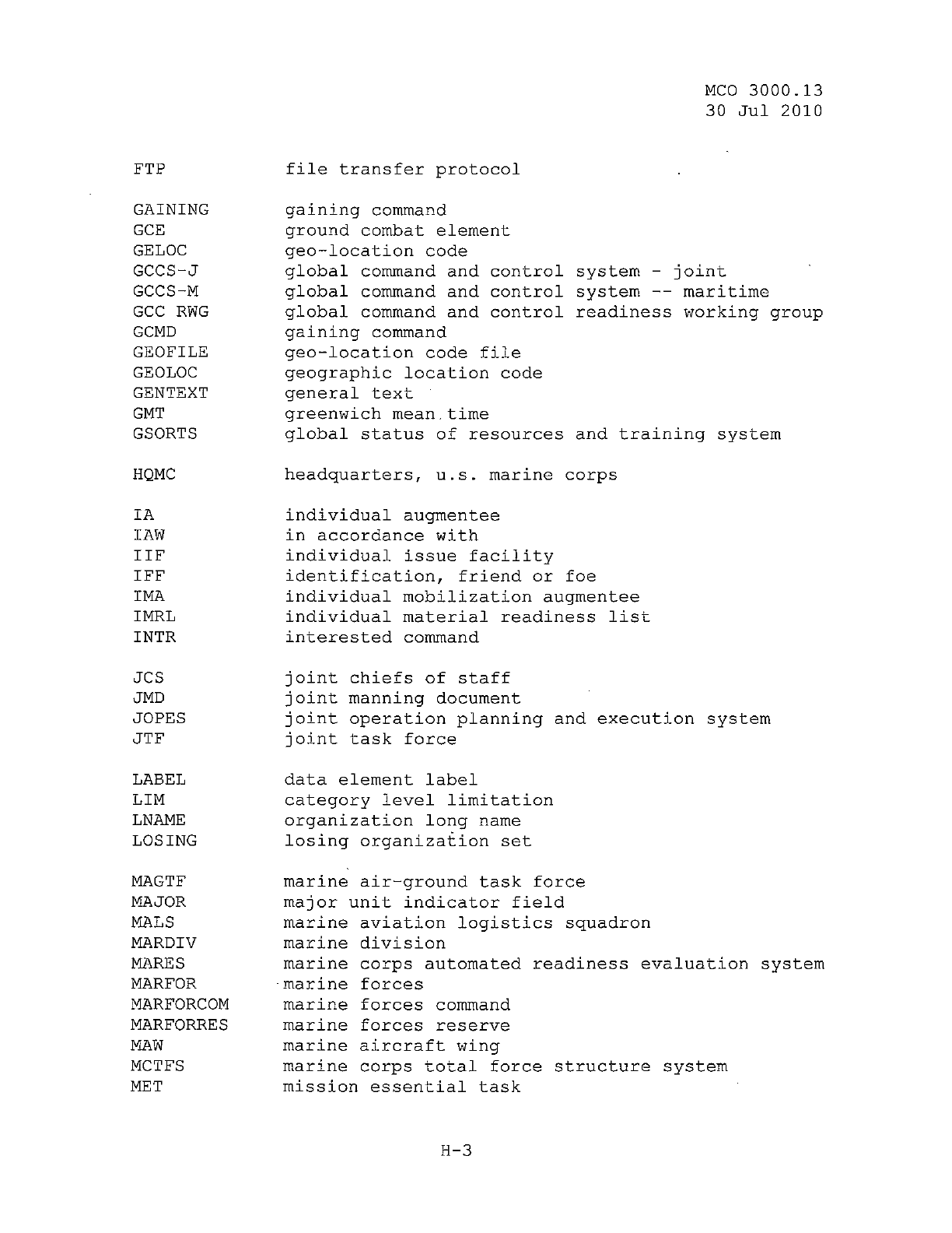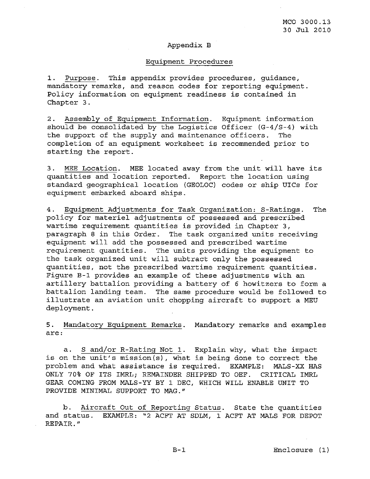 MCO 3000.13 MARINE CORPS READINESS REPORTING STANDARD OPERATING PROCEDURES (SOP) 3000