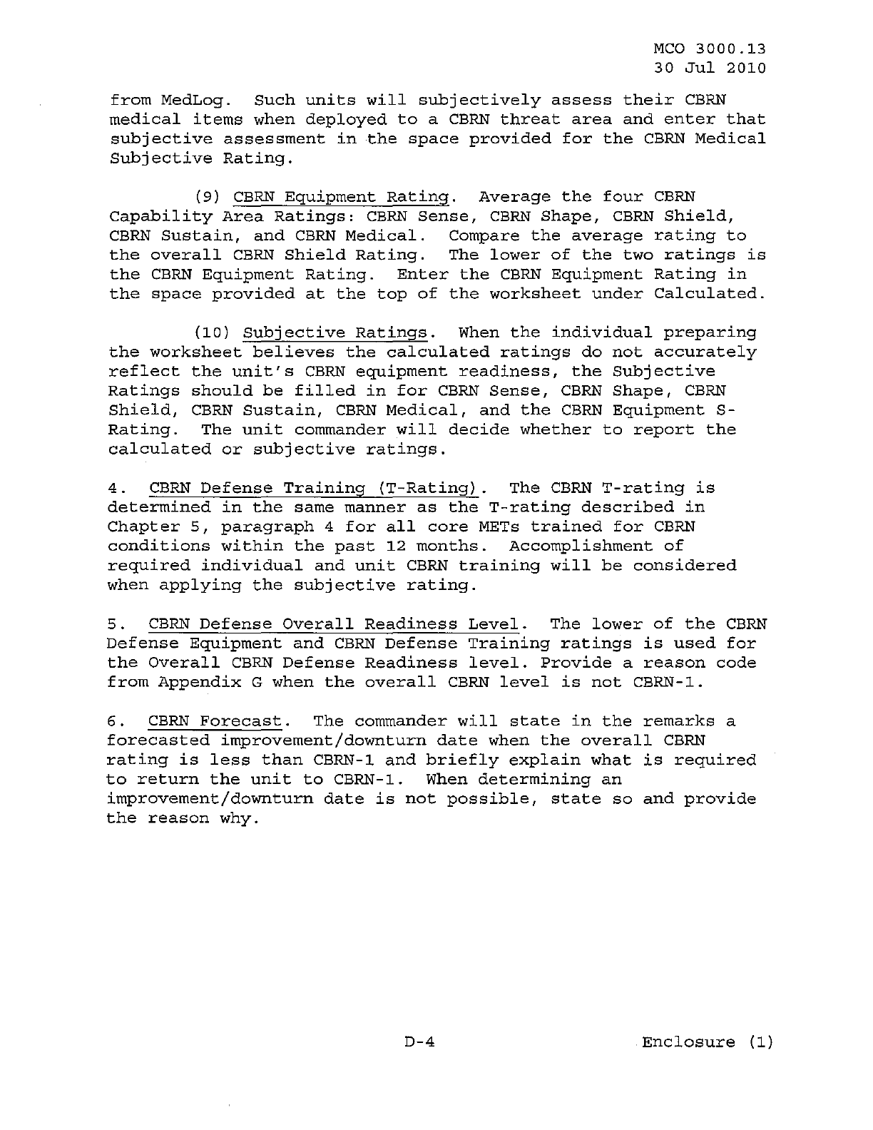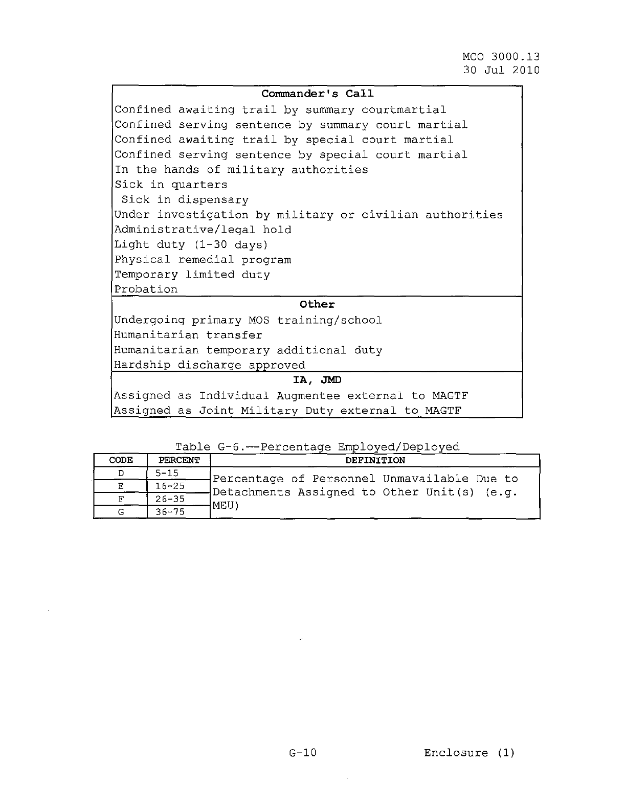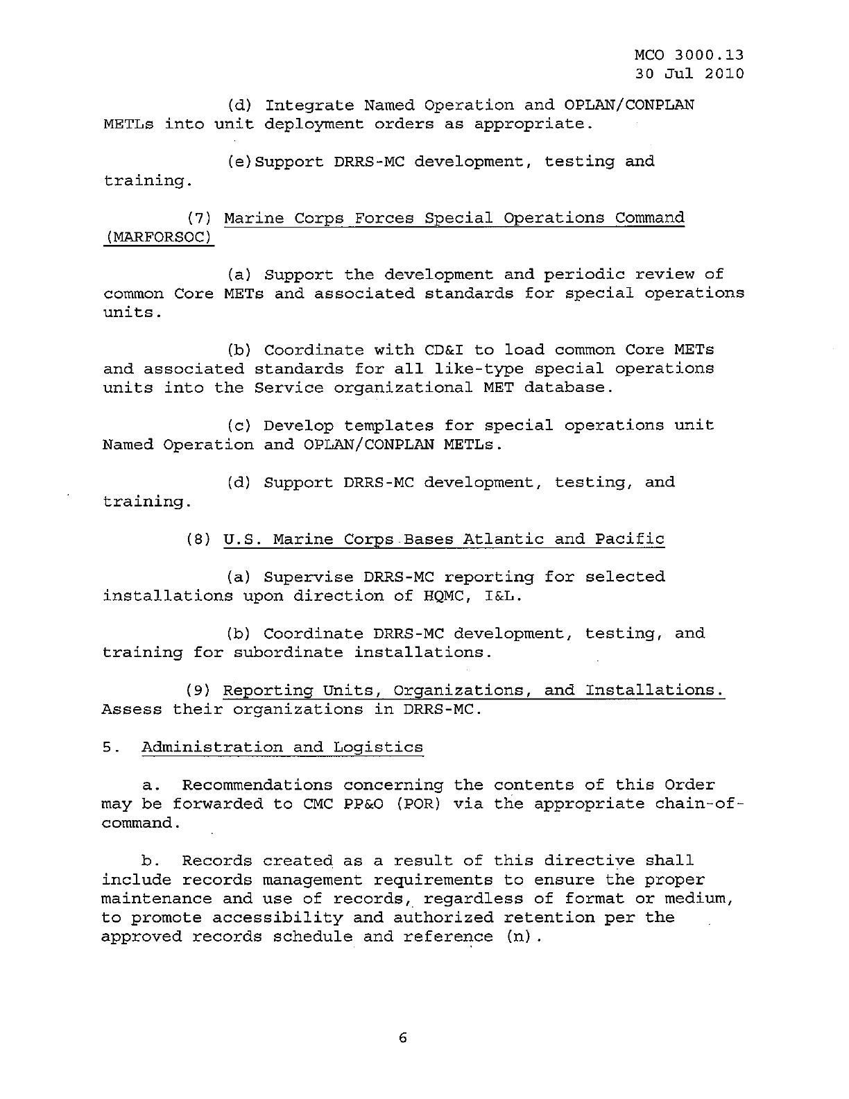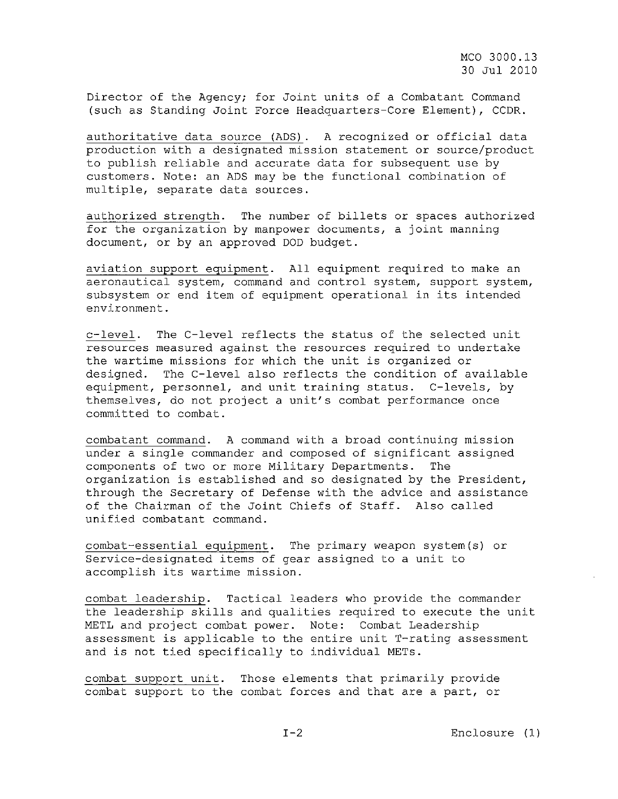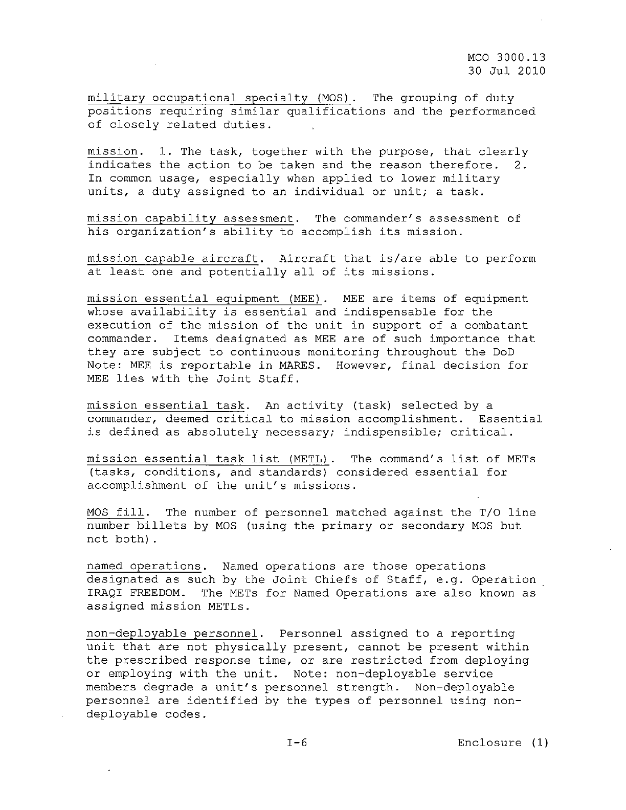 MCO 3000.13 MARINE CORPS READINESS REPORTING STANDARD OPERATING PROCEDURES (SOP) 3000