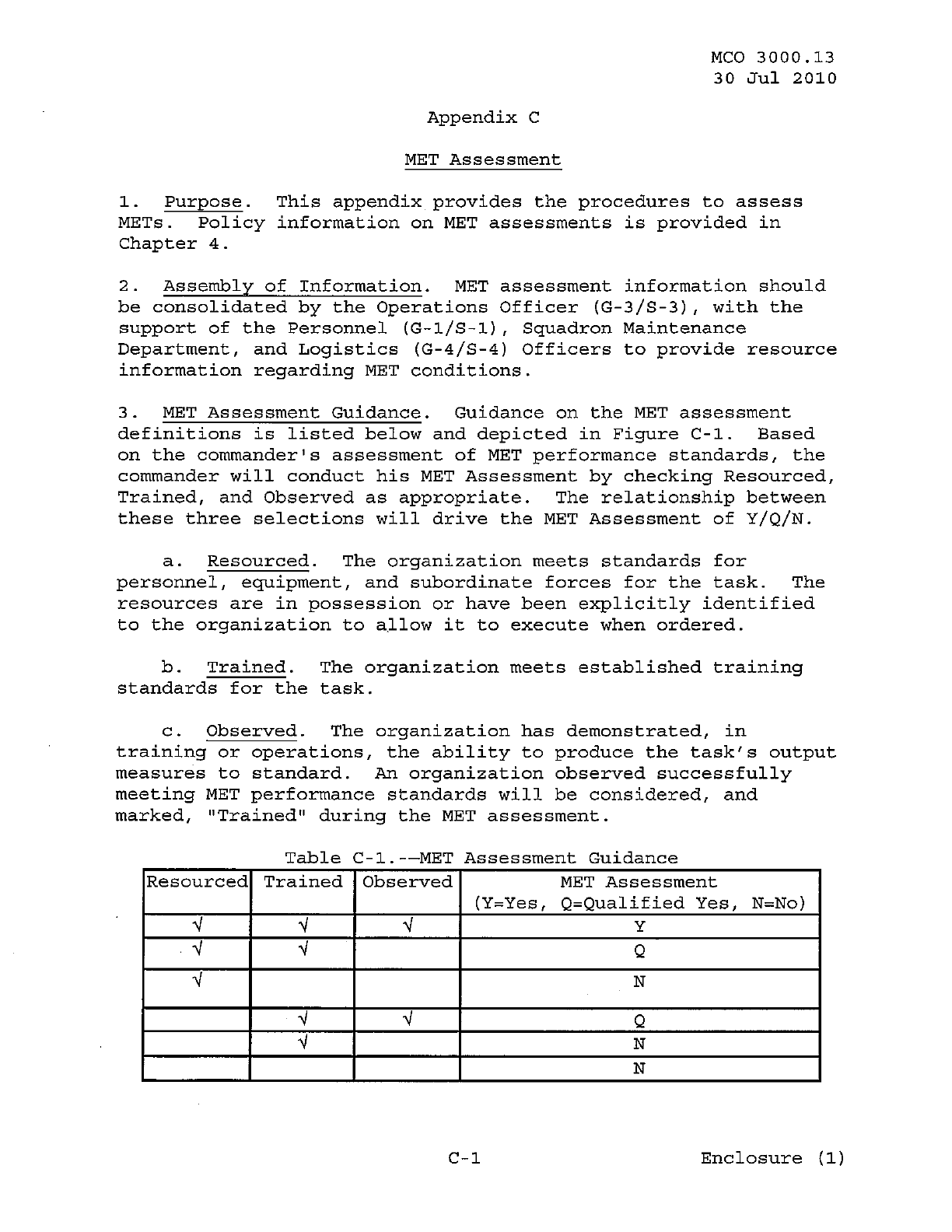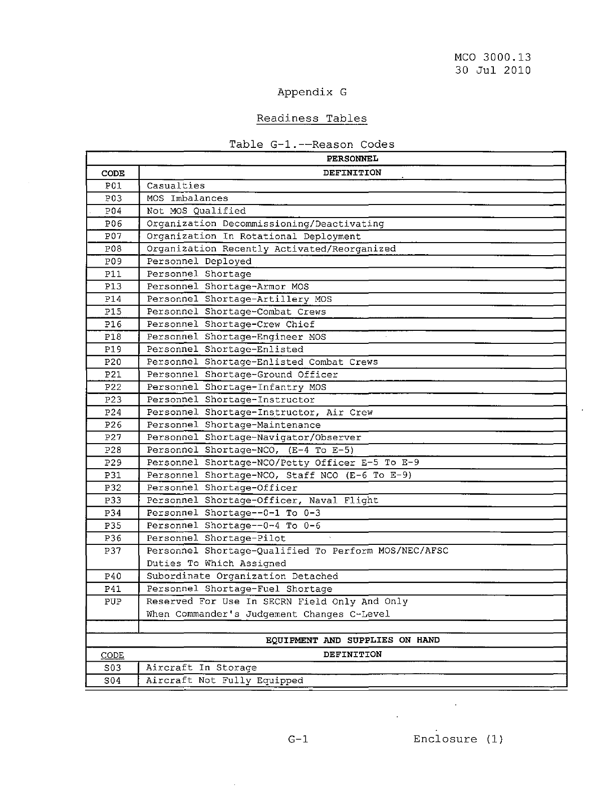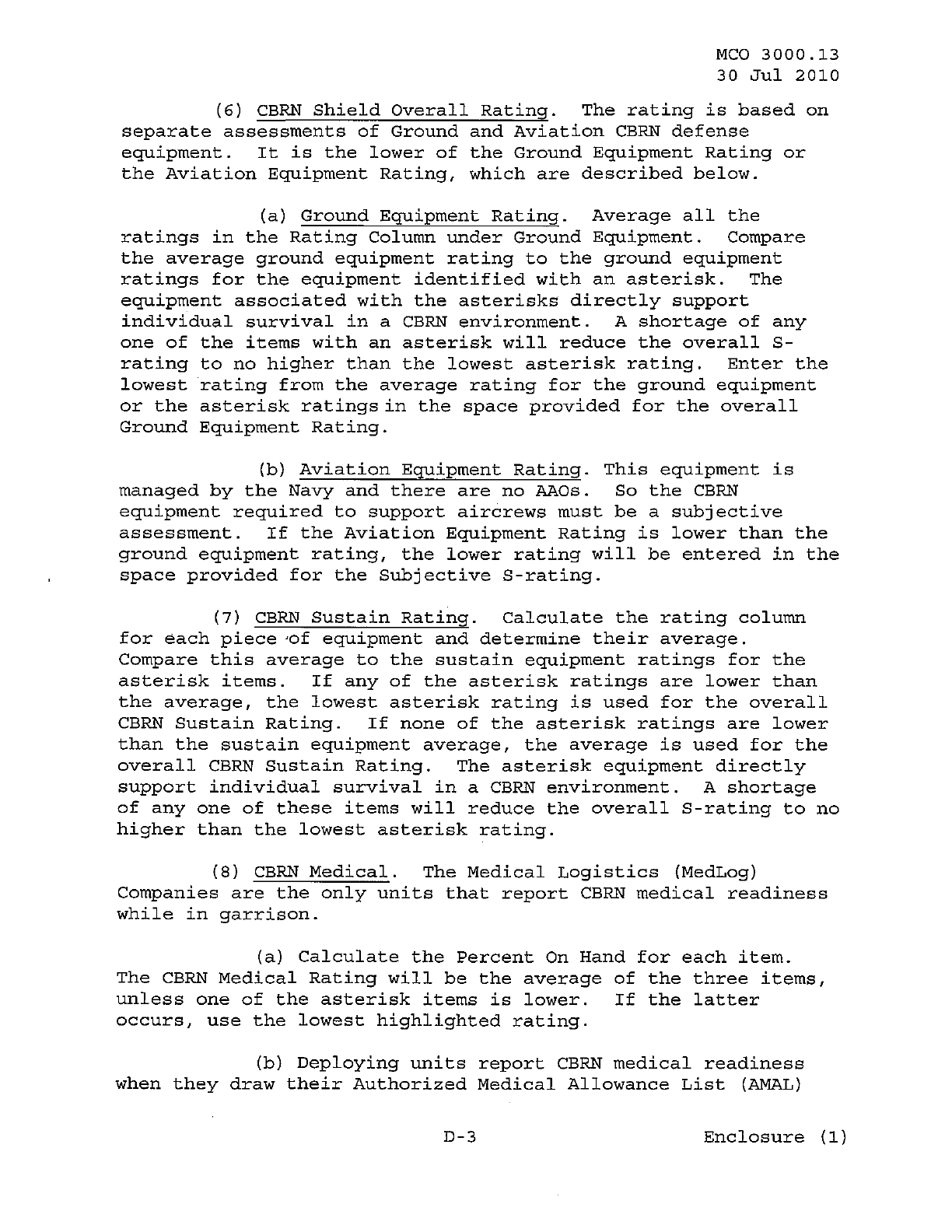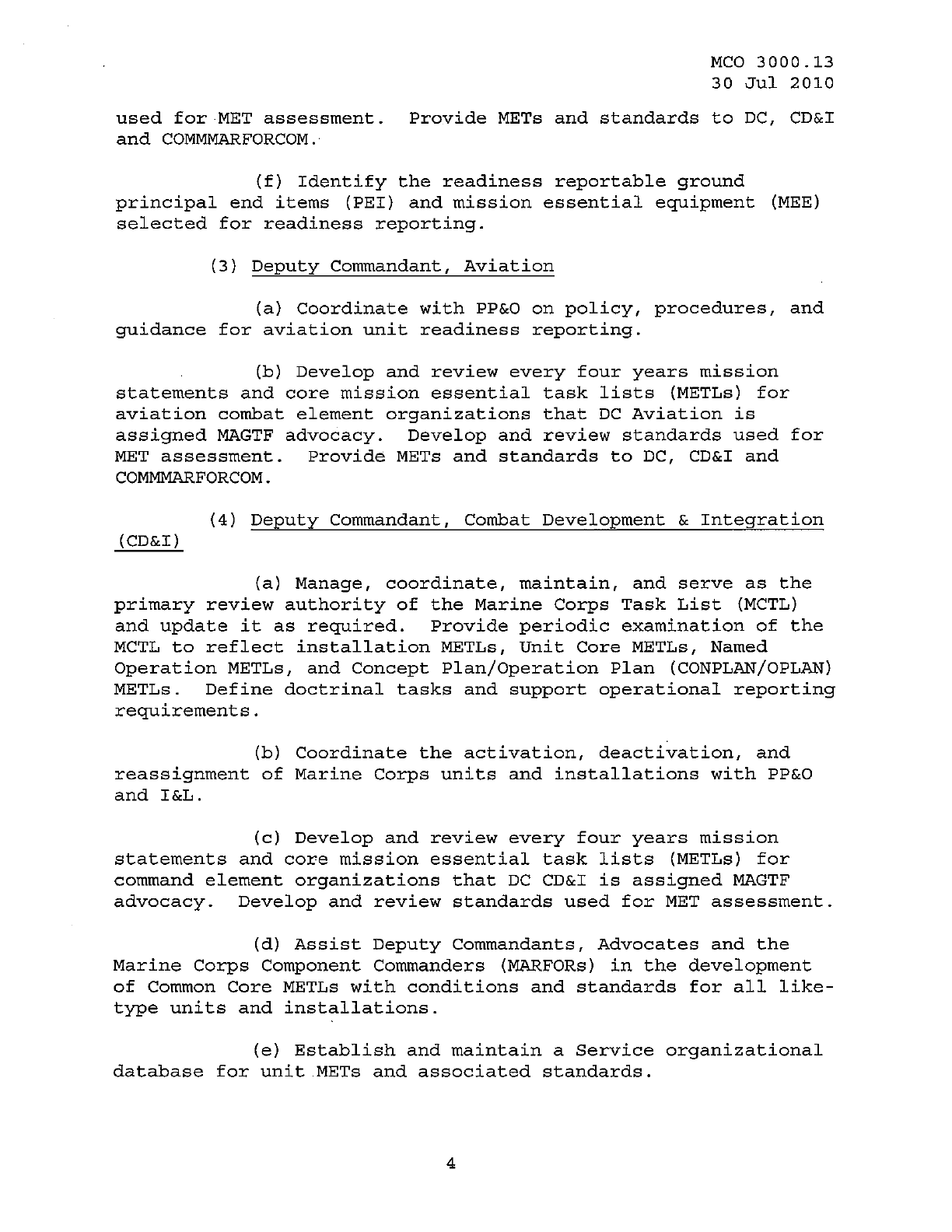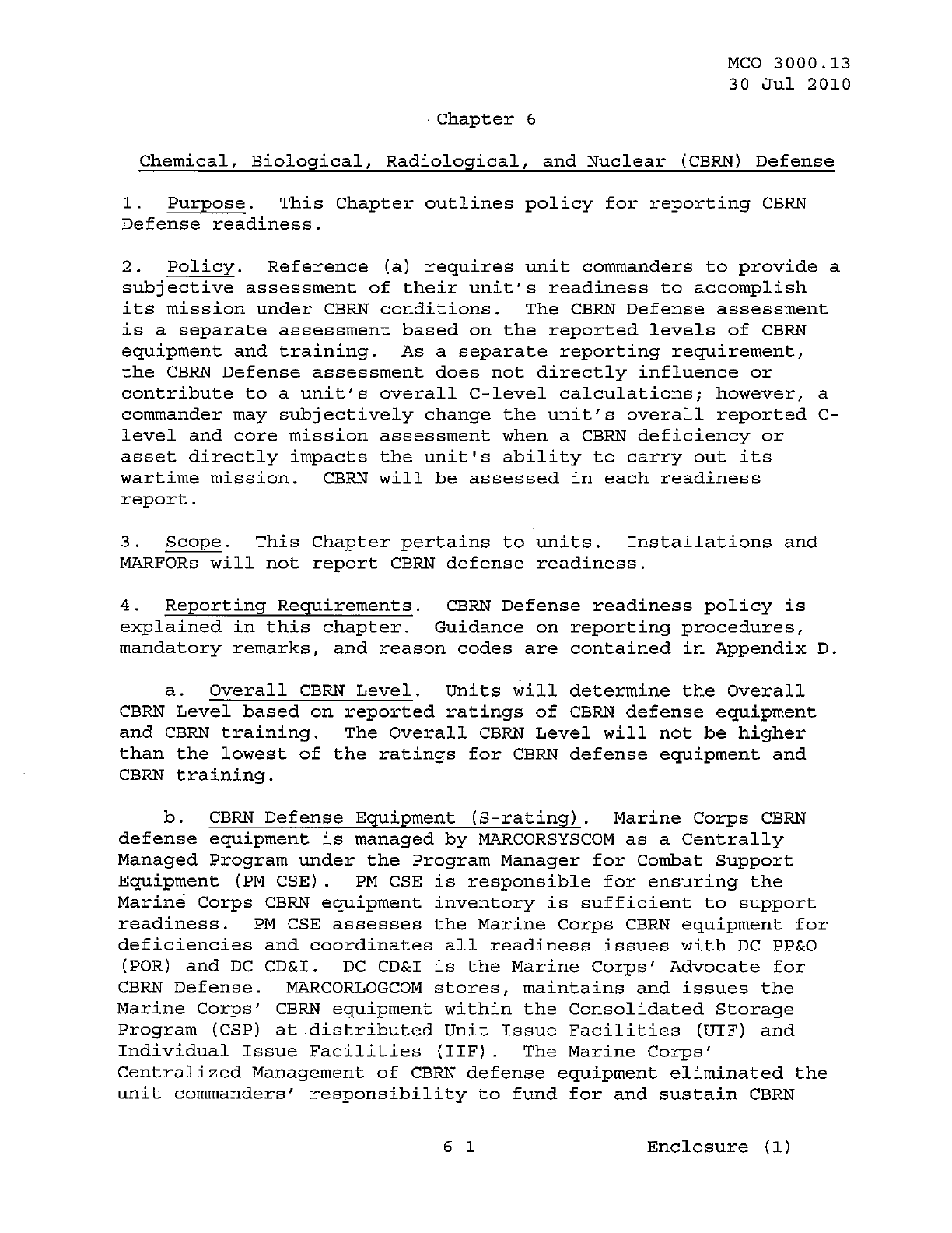 MCO 3000.13 MARINE CORPS READINESS REPORTING STANDARD OPERATING PROCEDURES (SOP) 3000