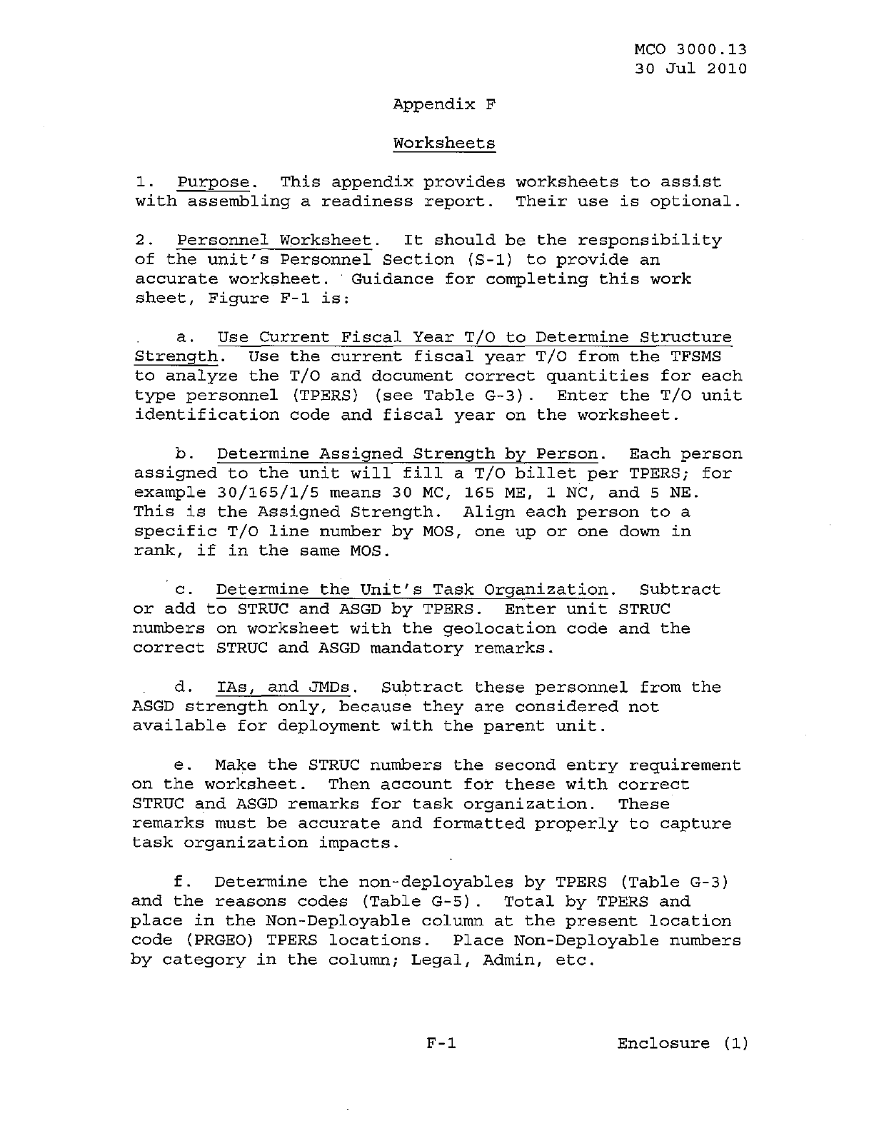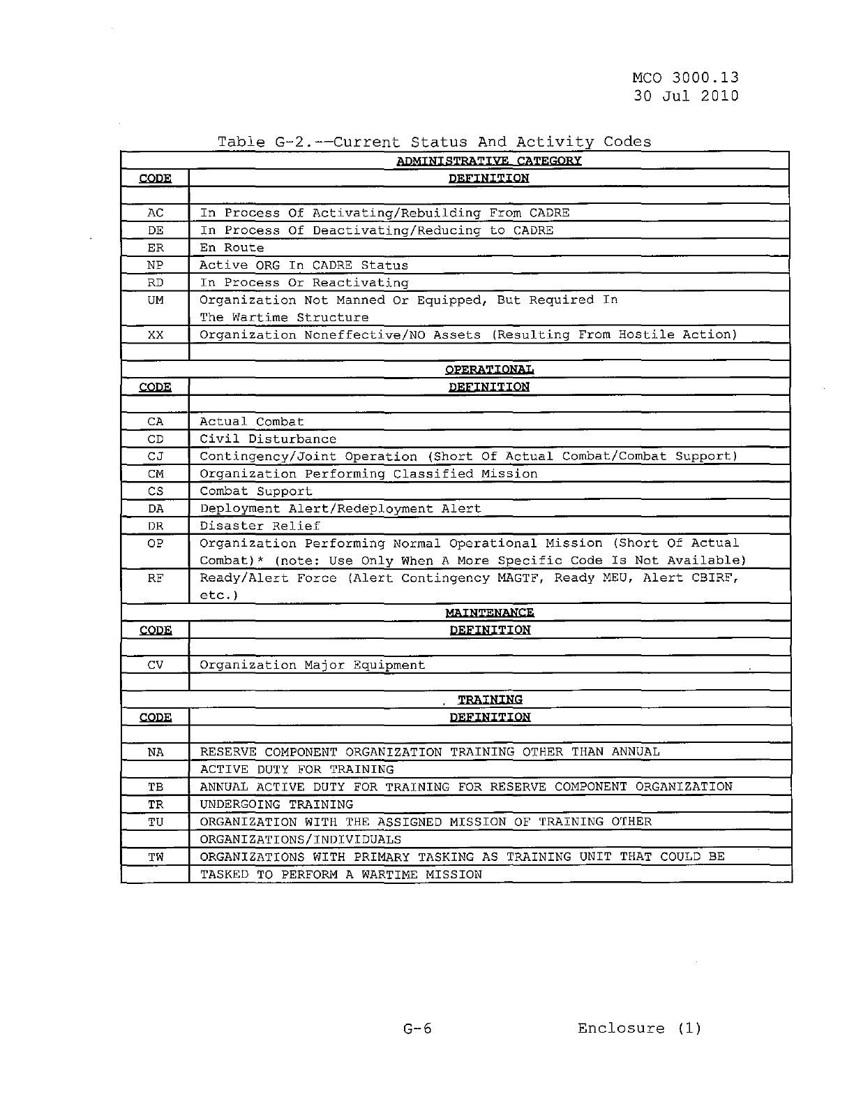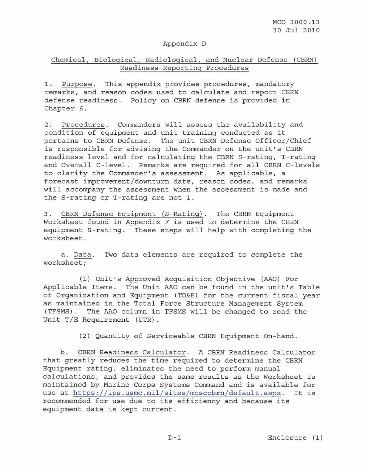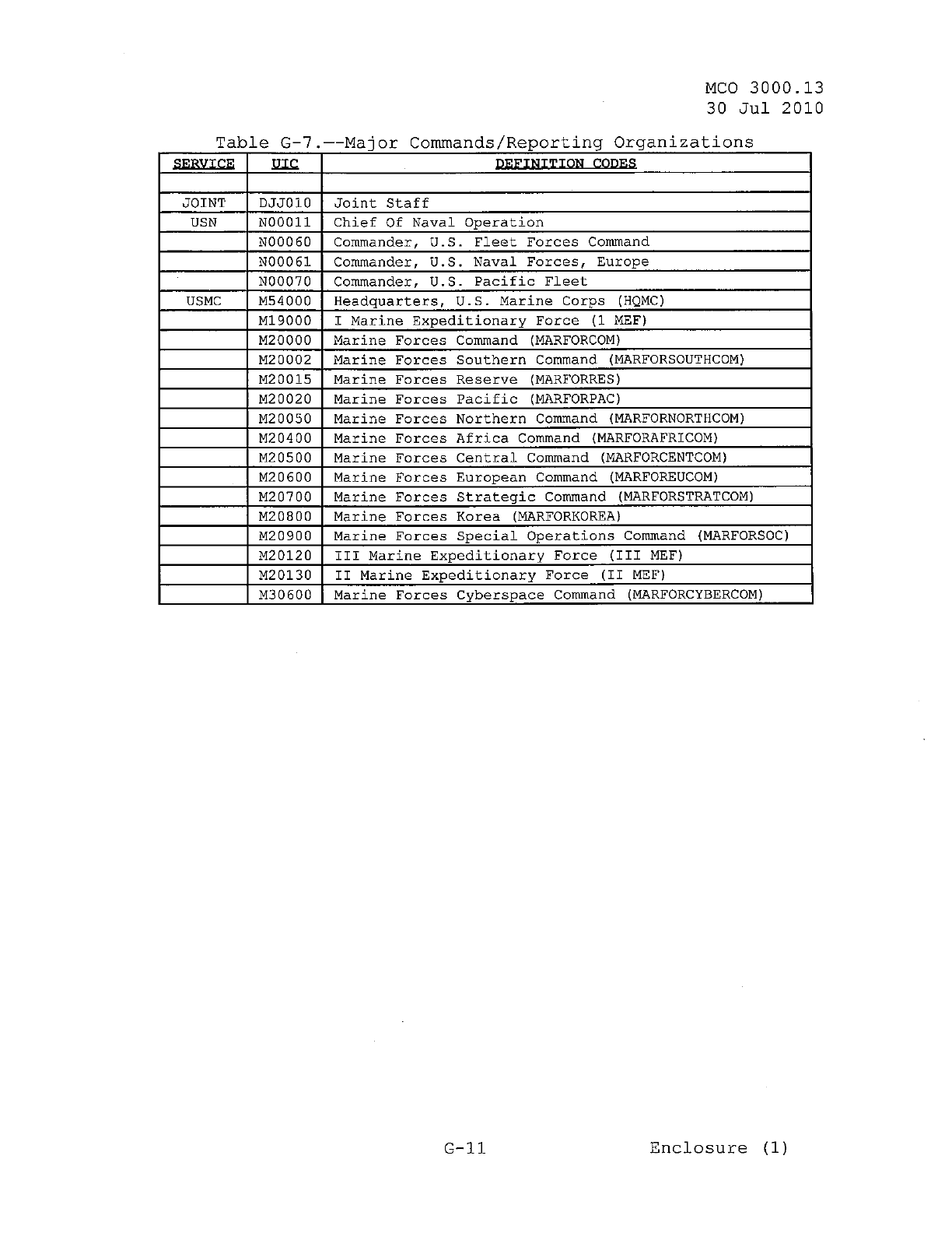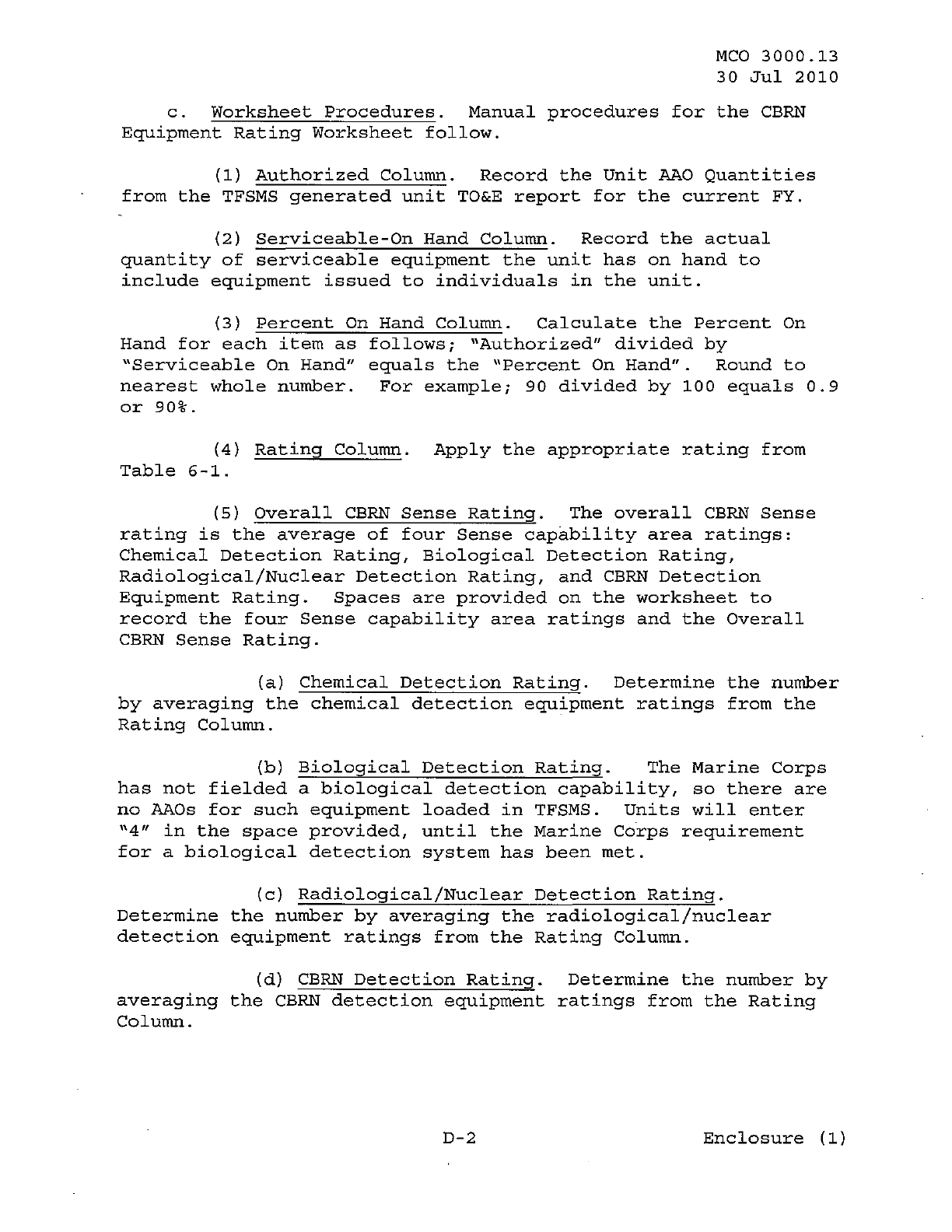 MCO 3000.13 MARINE CORPS READINESS REPORTING STANDARD OPERATING PROCEDURES (SOP) 3000