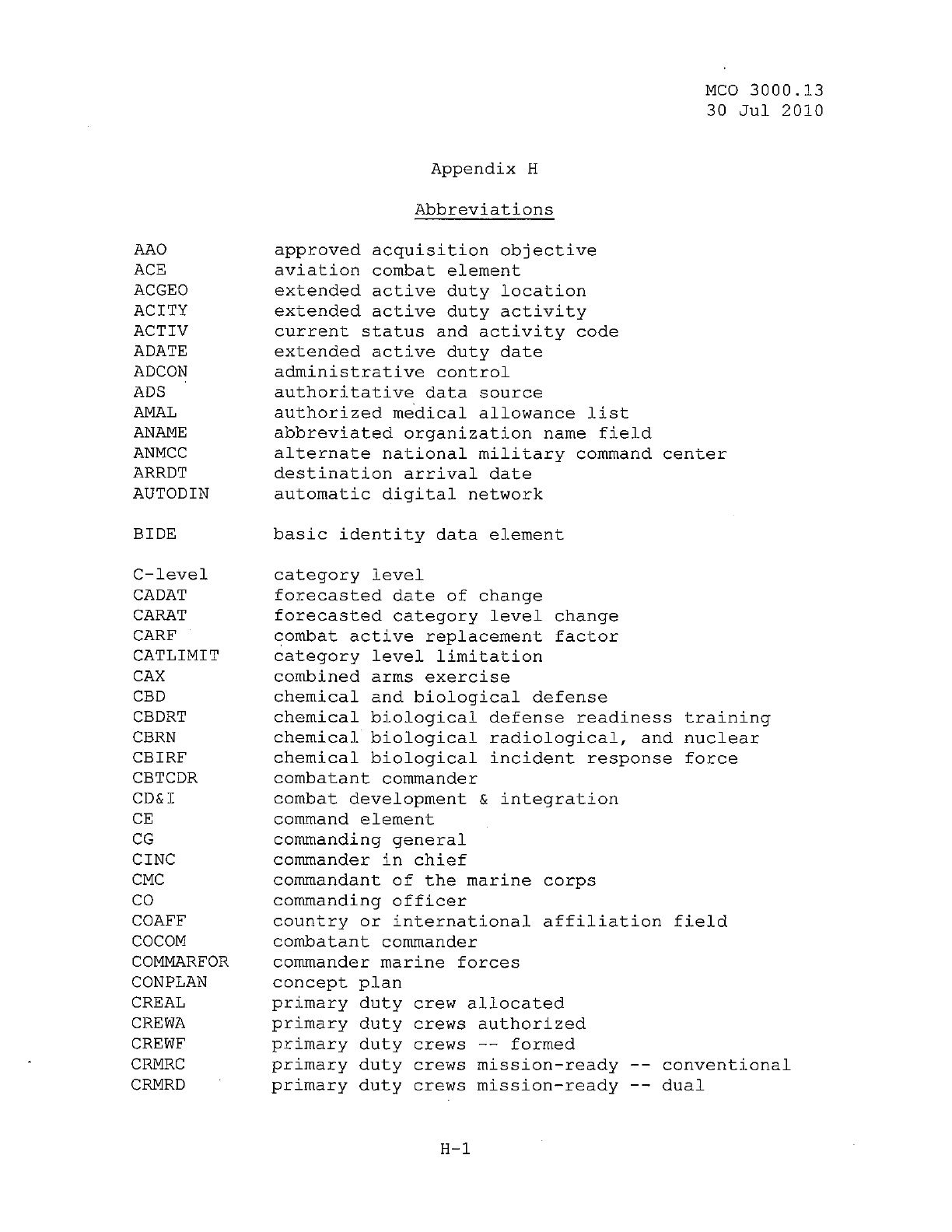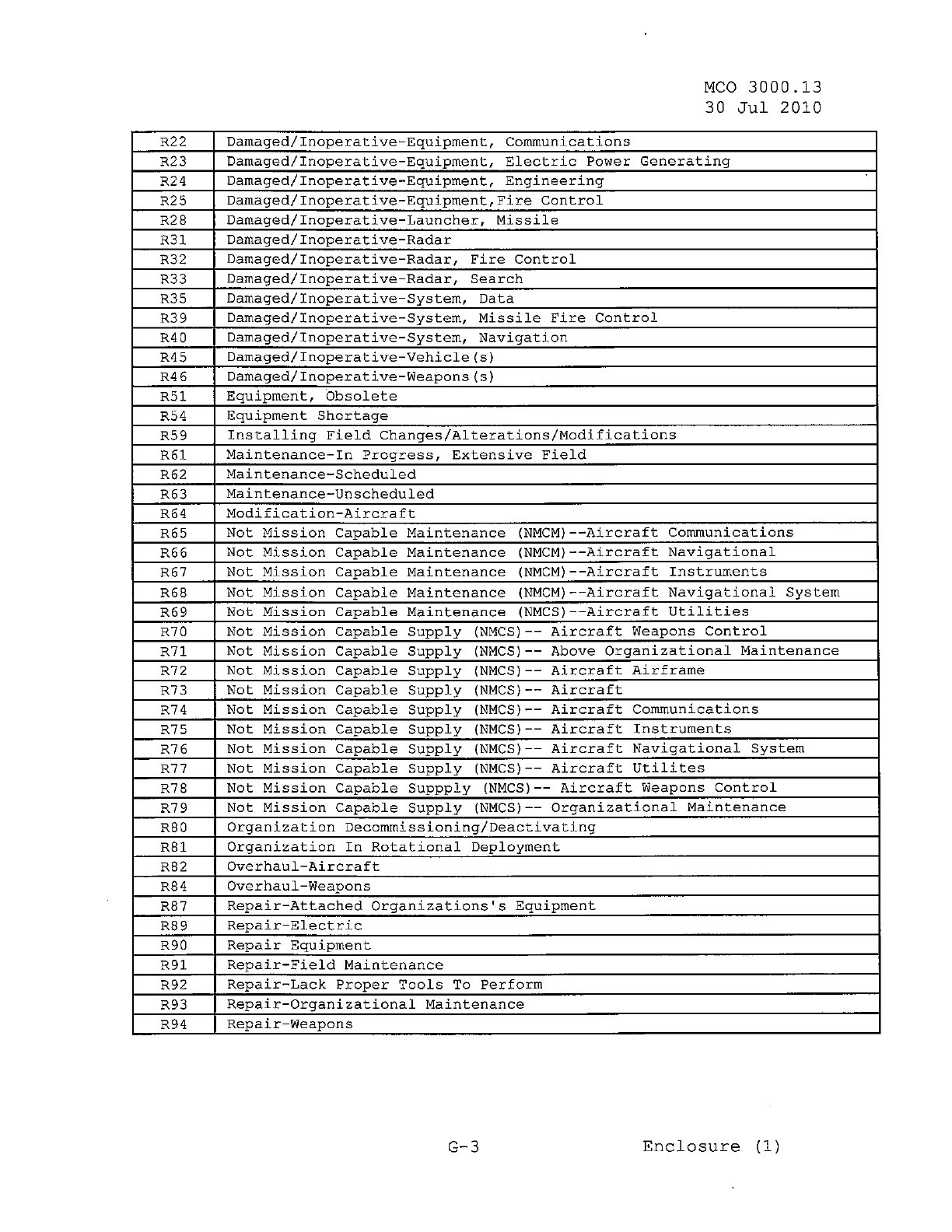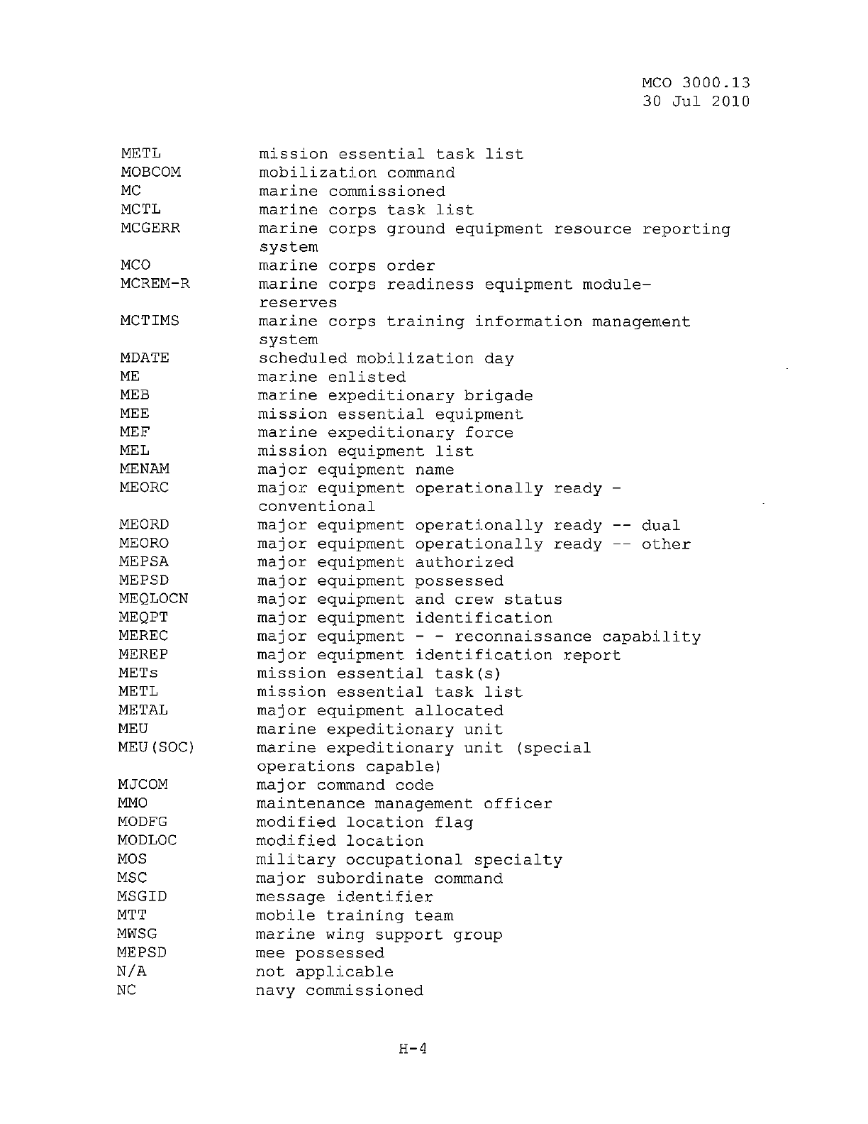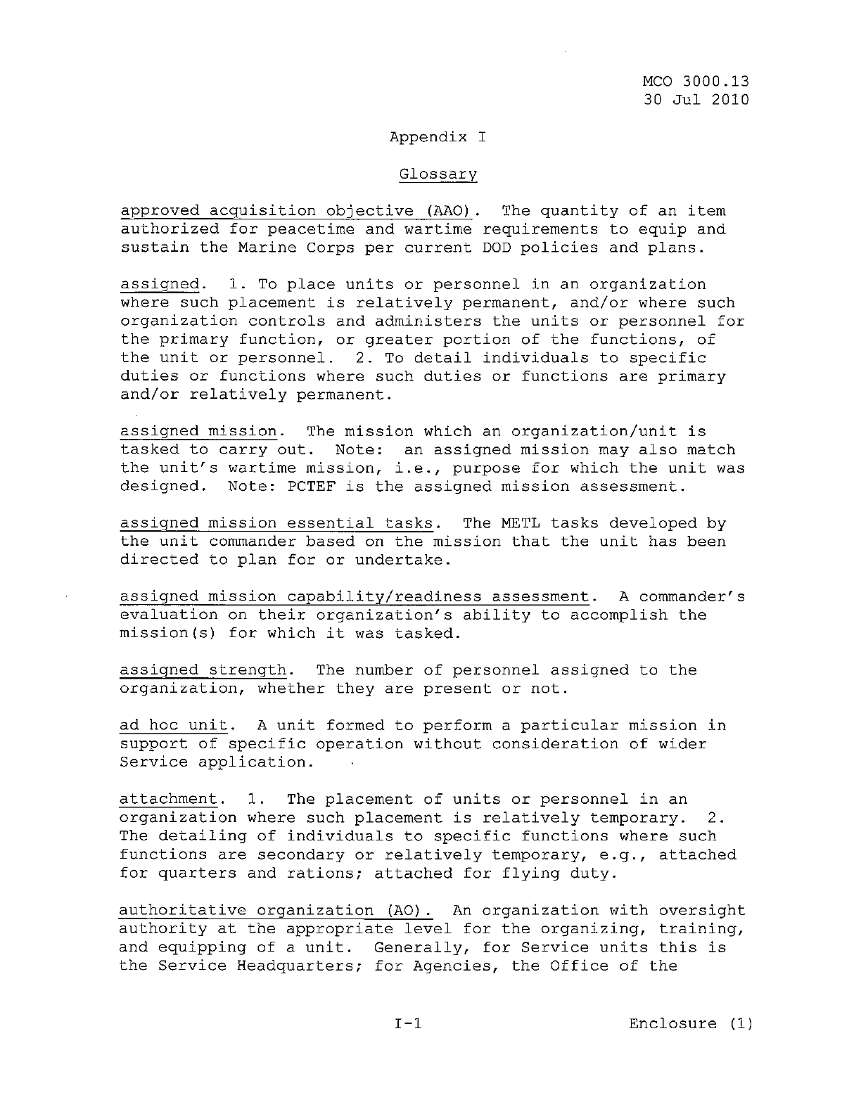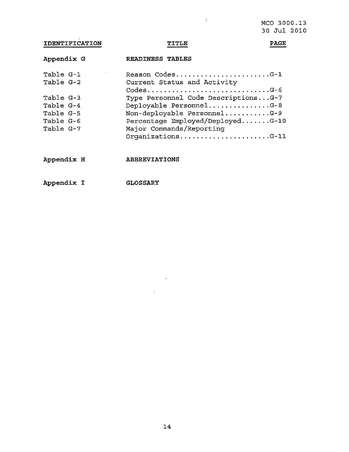 MCO 3000.13 MARINE CORPS READINESS REPORTING STANDARD OPERATING PROCEDURES (SOP) 3000