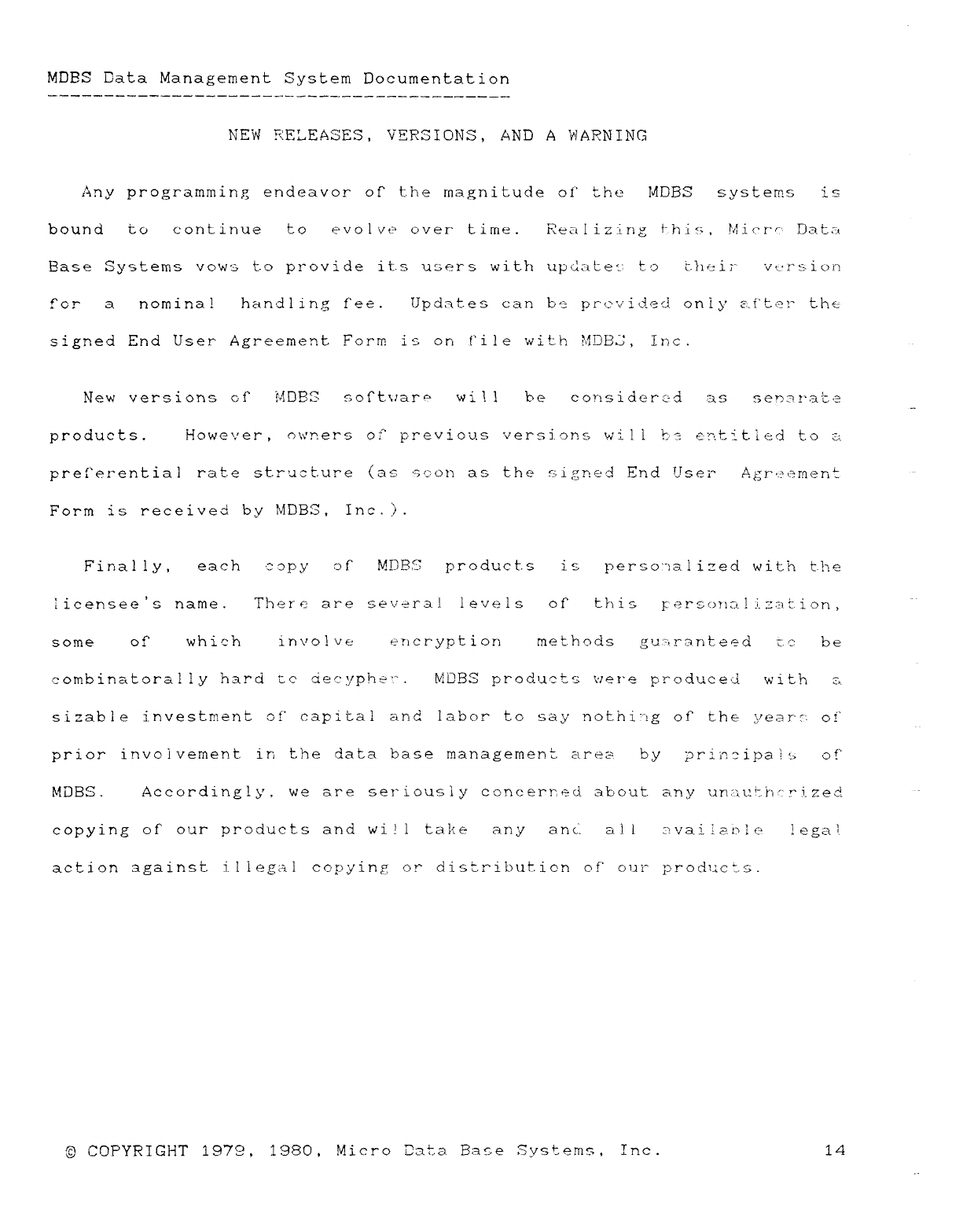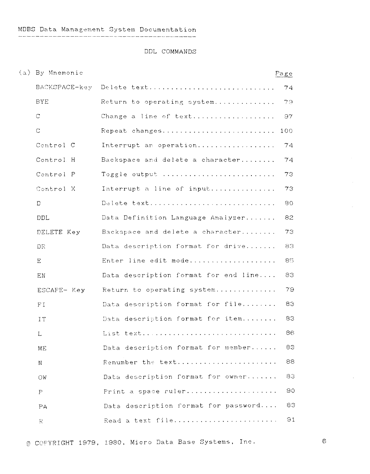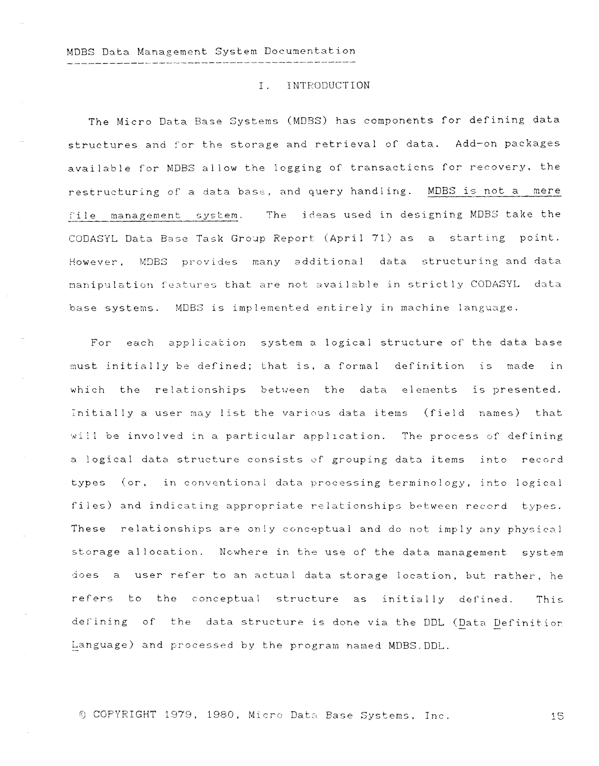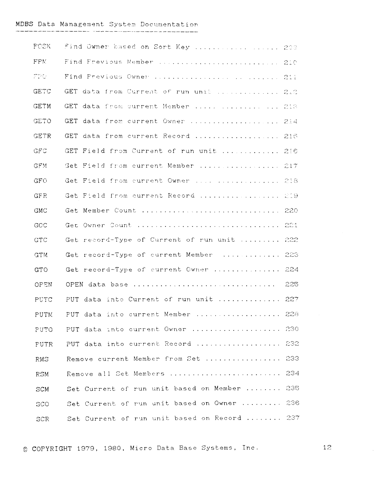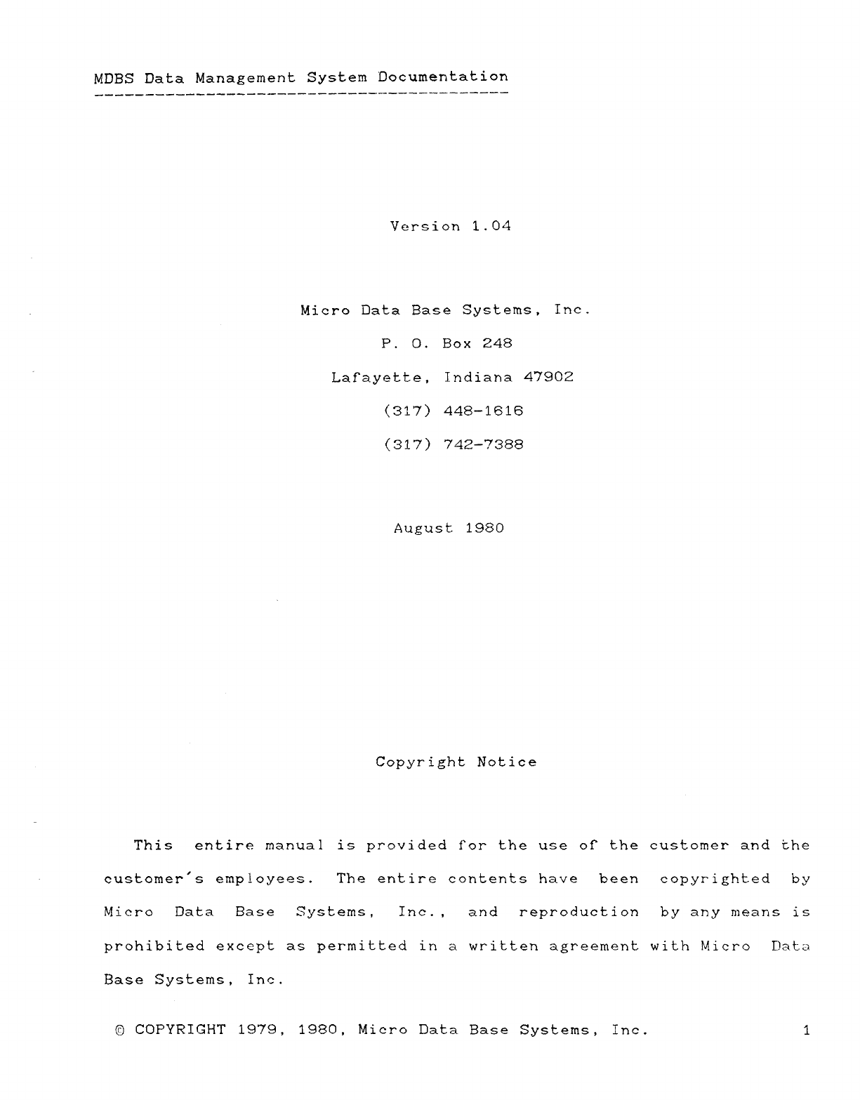 ©COPYRIGHT 1979, 1980, Micro Data Base Systems, Inc. 1