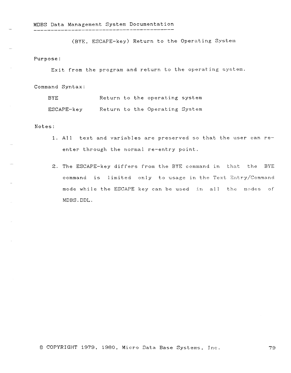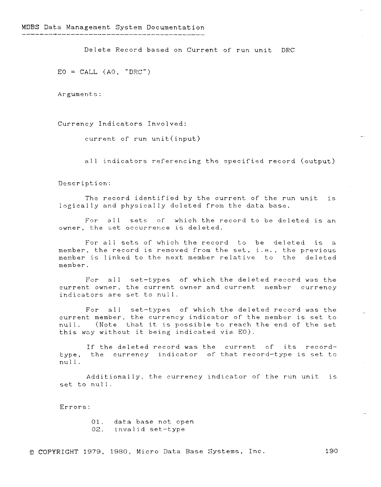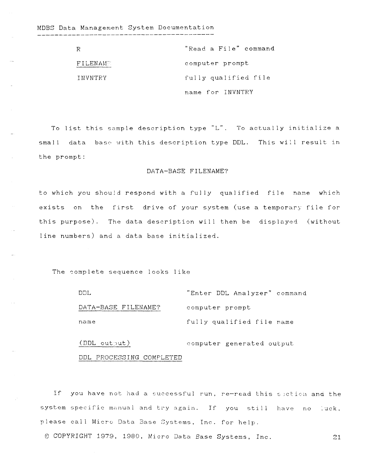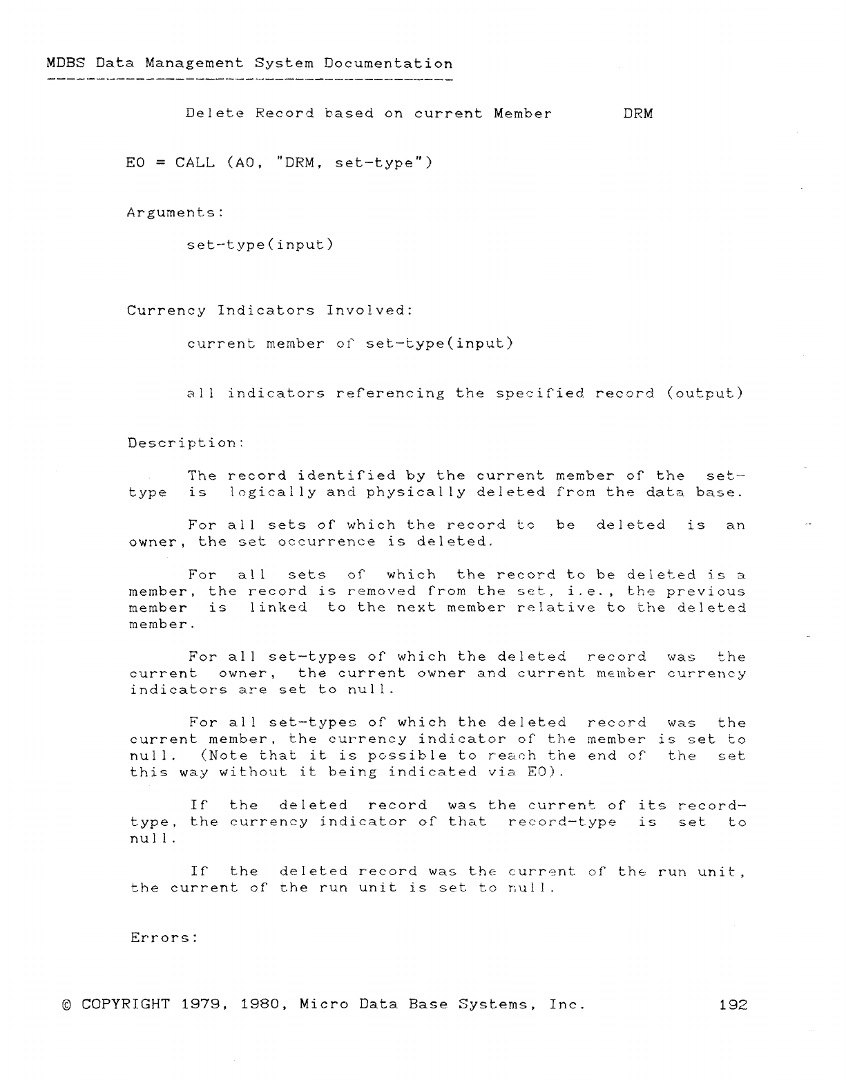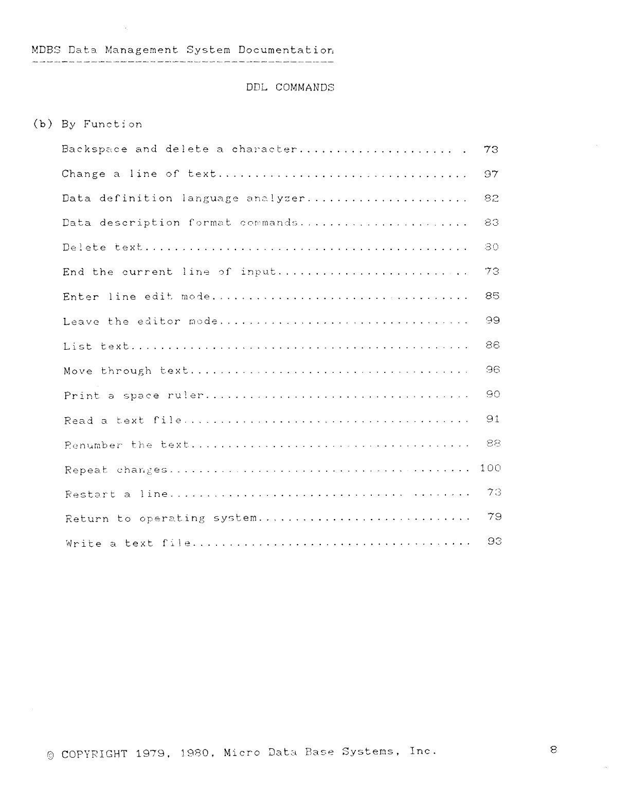 ©COPYRIGHT 1979, 1980, Micro Data Base Systems, Inc. 1