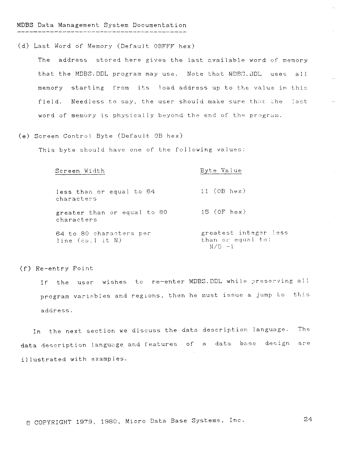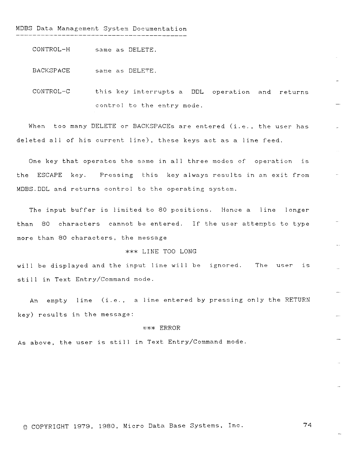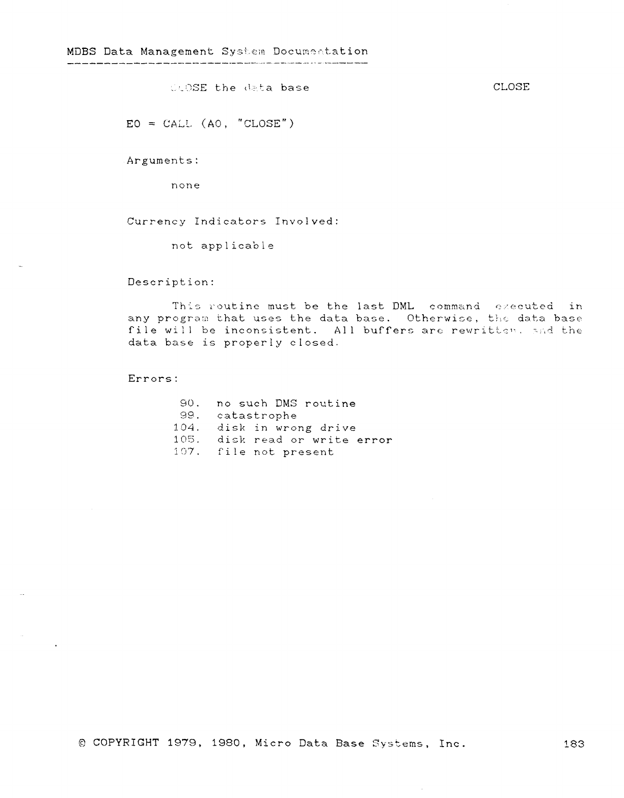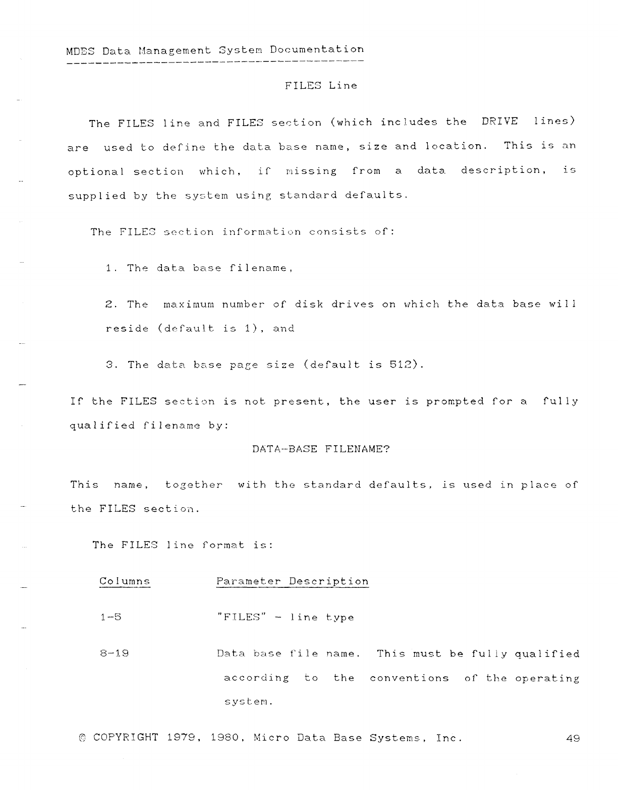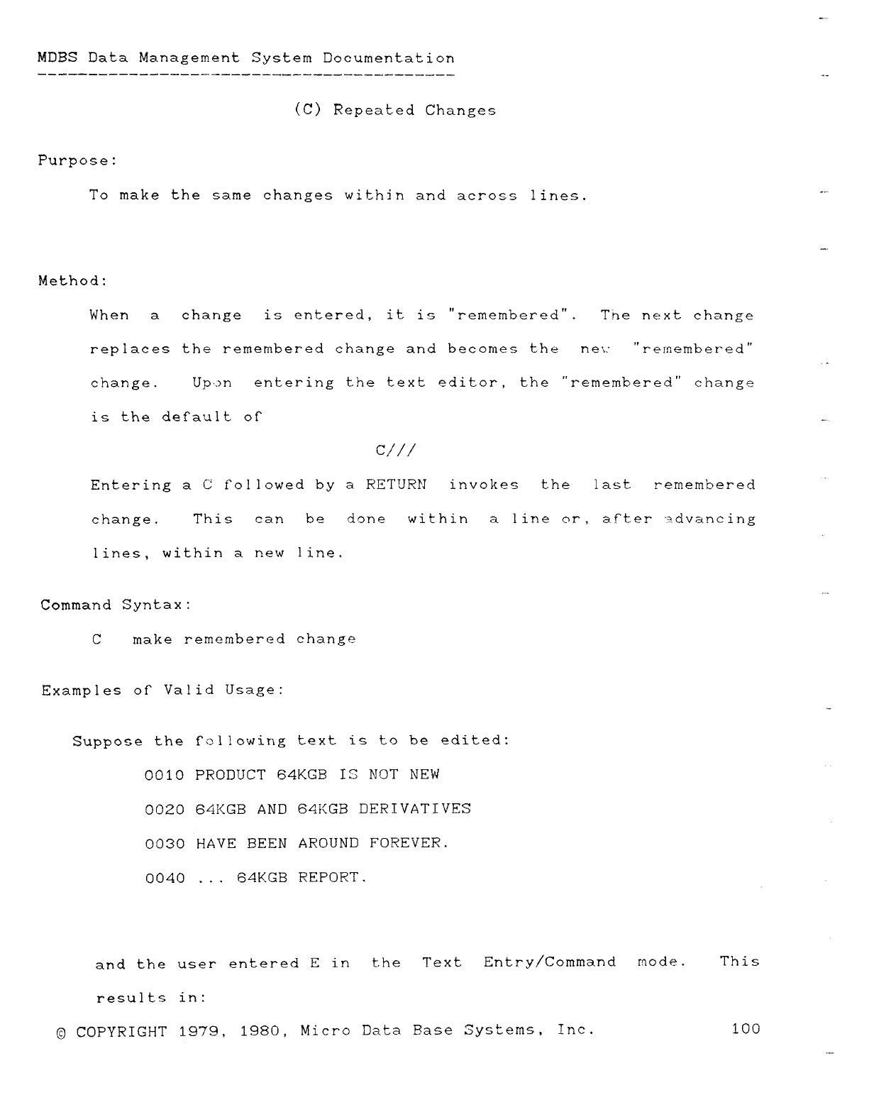 ©COPYRIGHT 1979, 1980, Micro Data Base Systems, Inc. 1