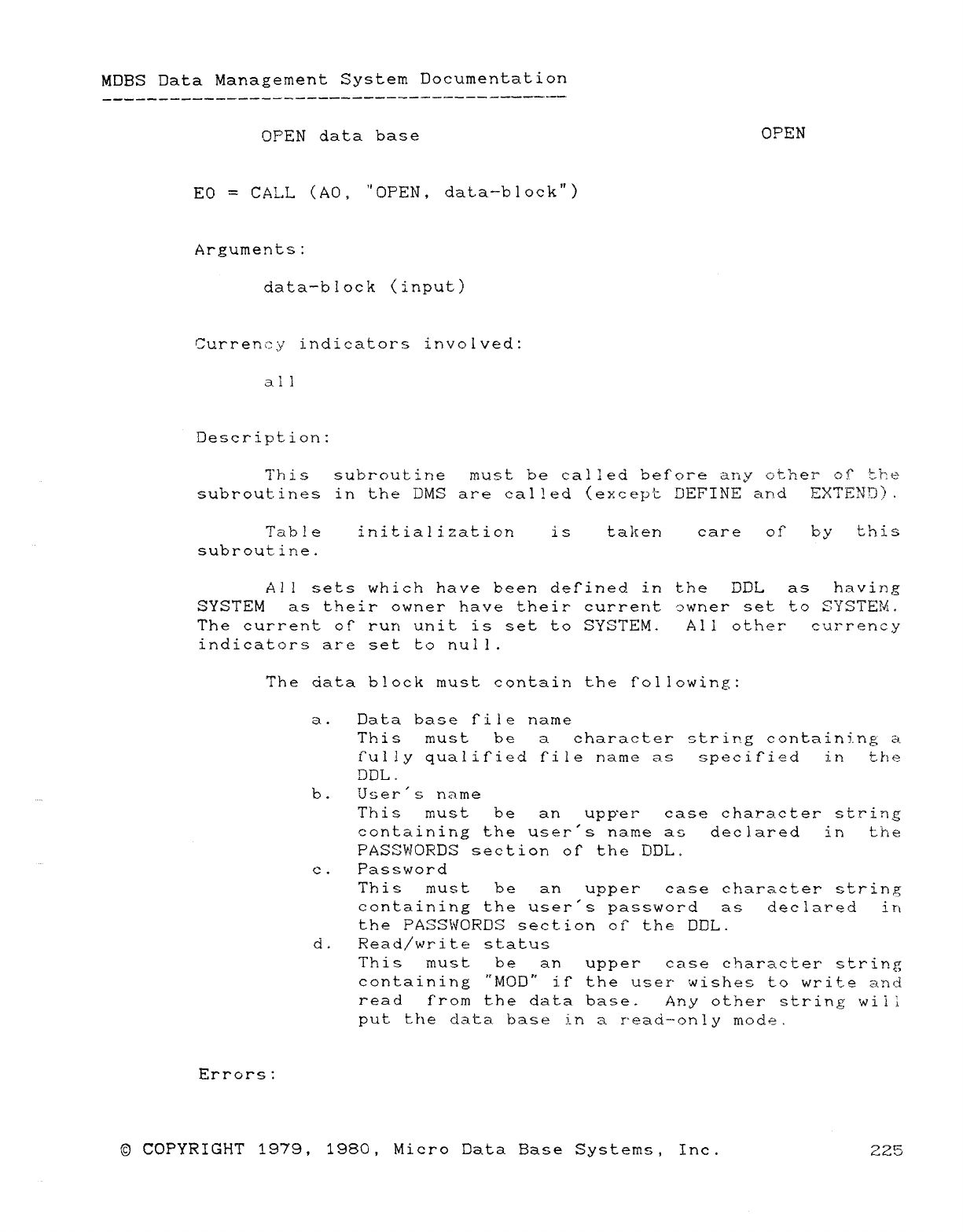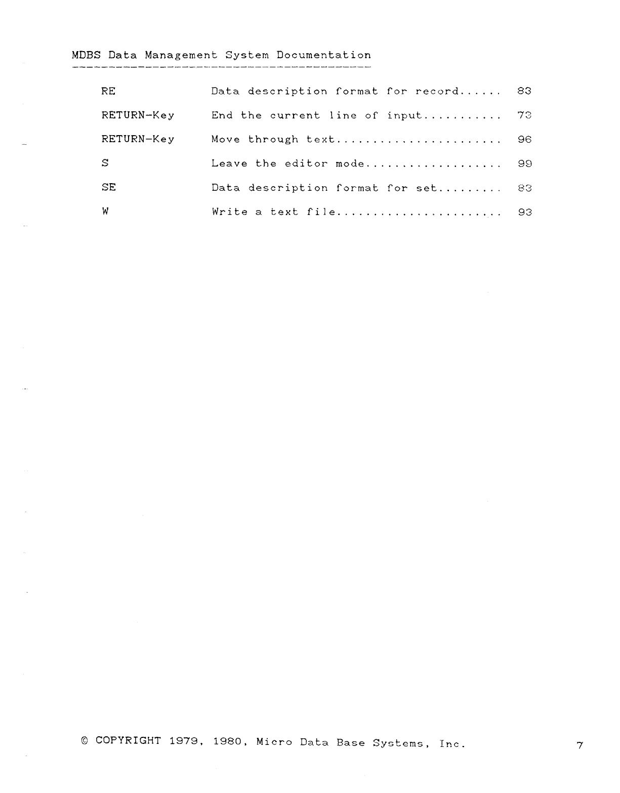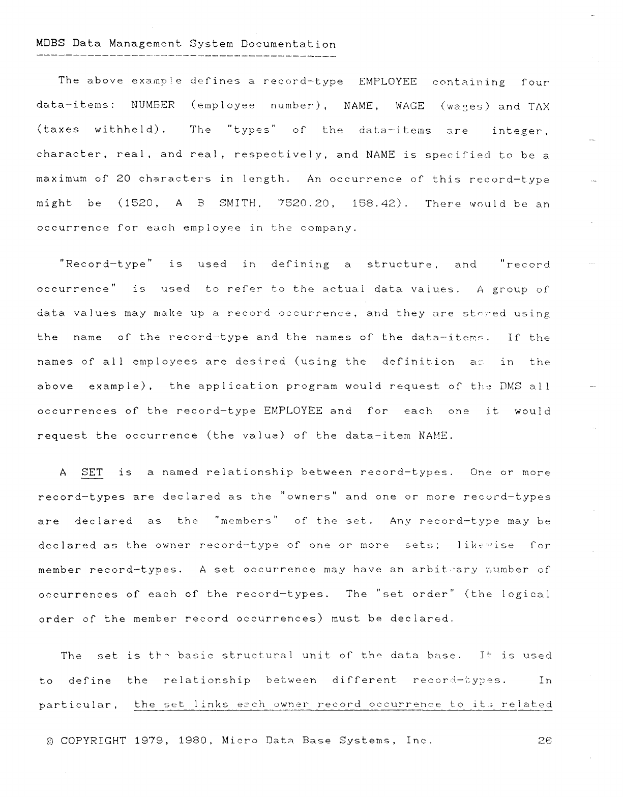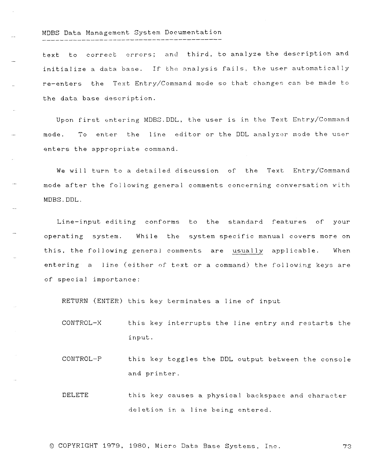©COPYRIGHT 1979, 1980, Micro Data Base Systems, Inc. 1