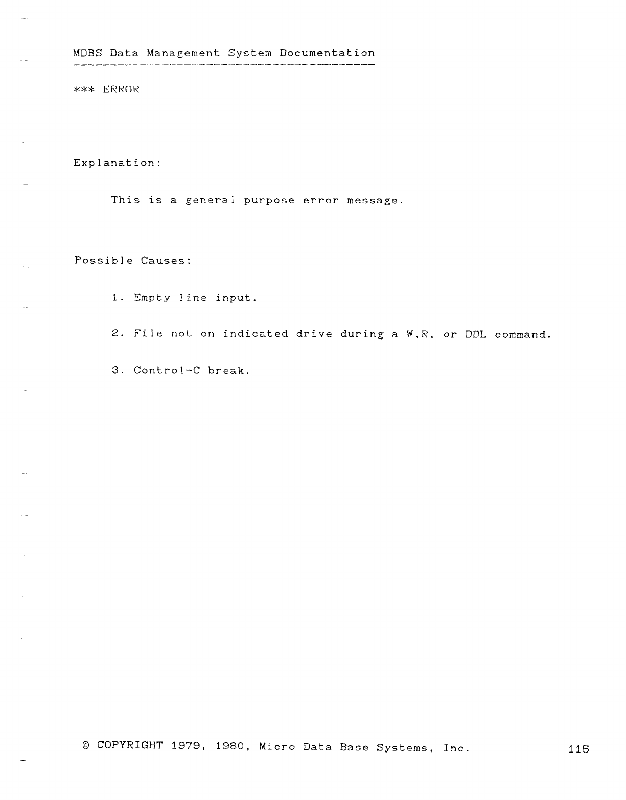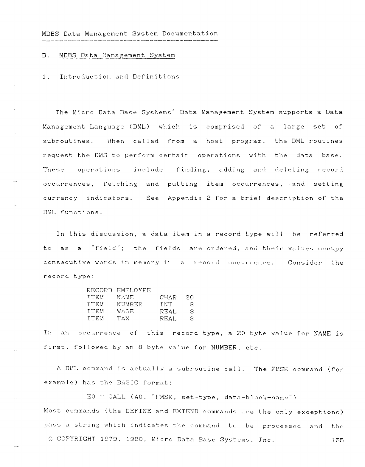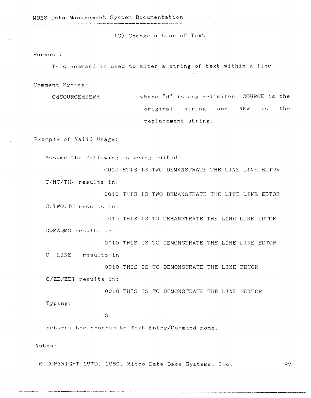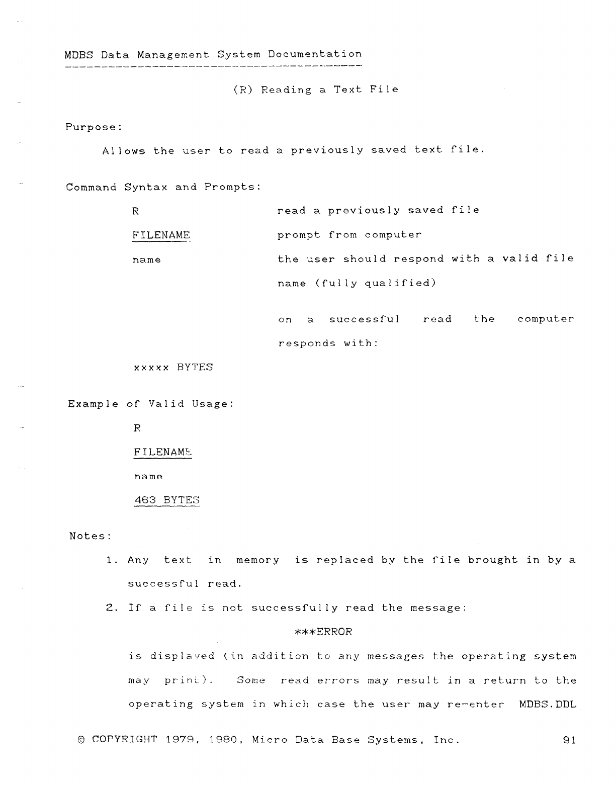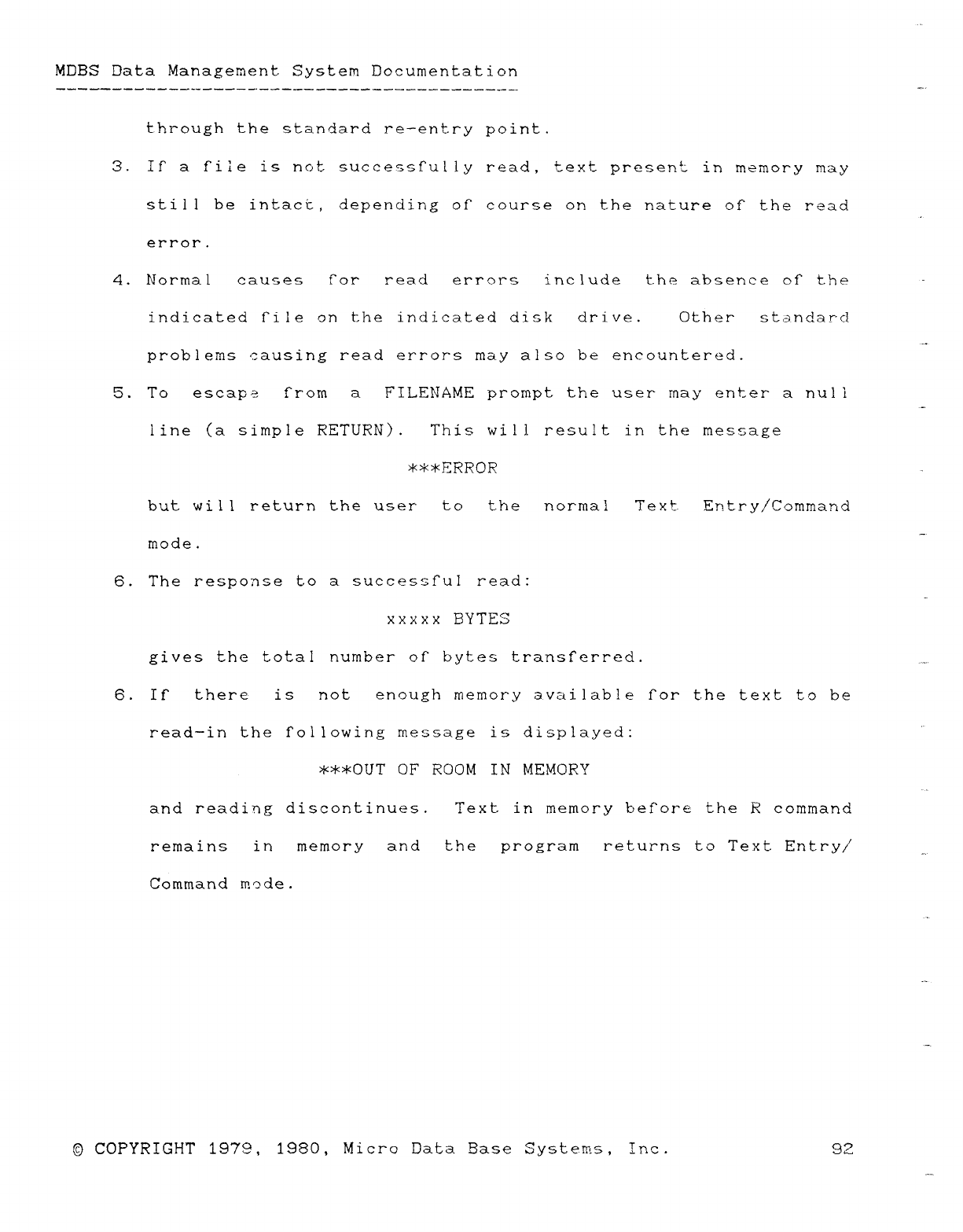 ©COPYRIGHT 1979, 1980, Micro Data Base Systems, Inc. 1