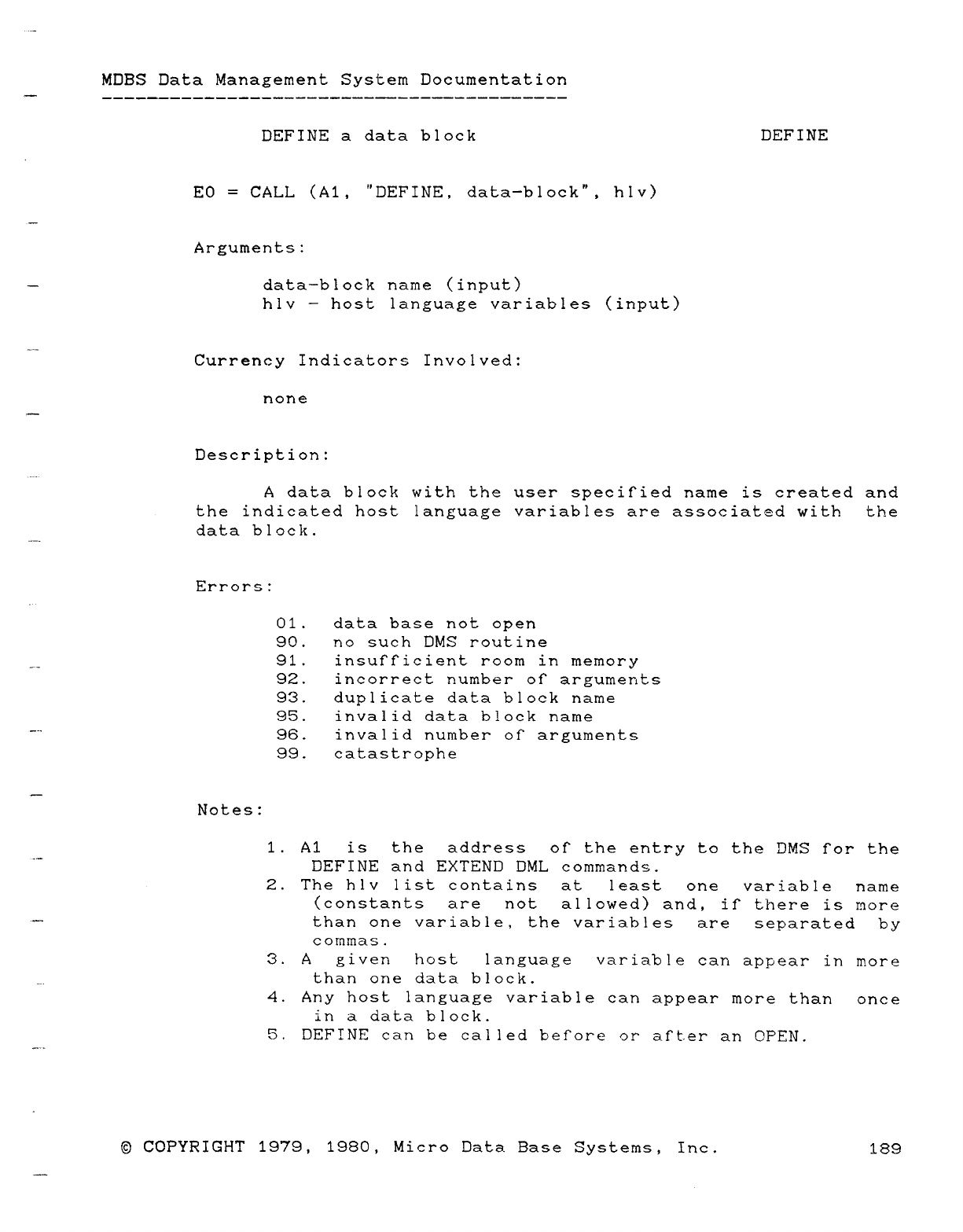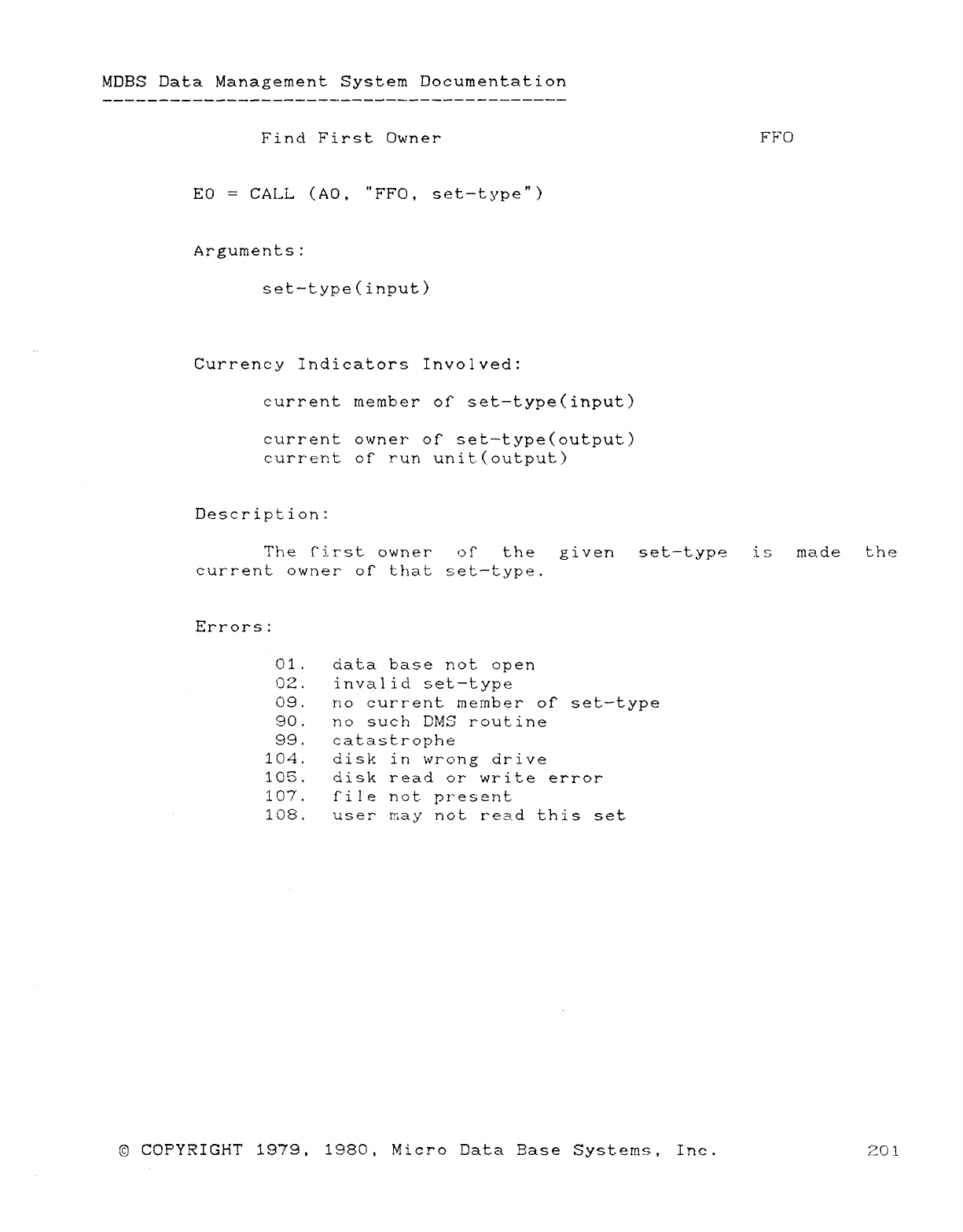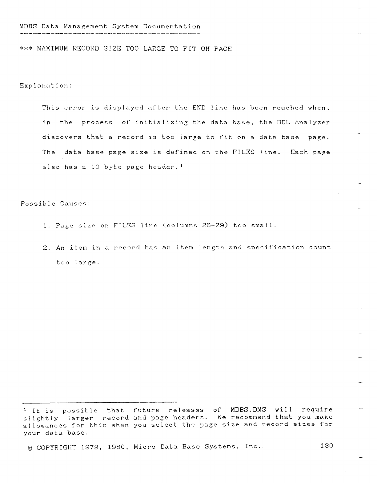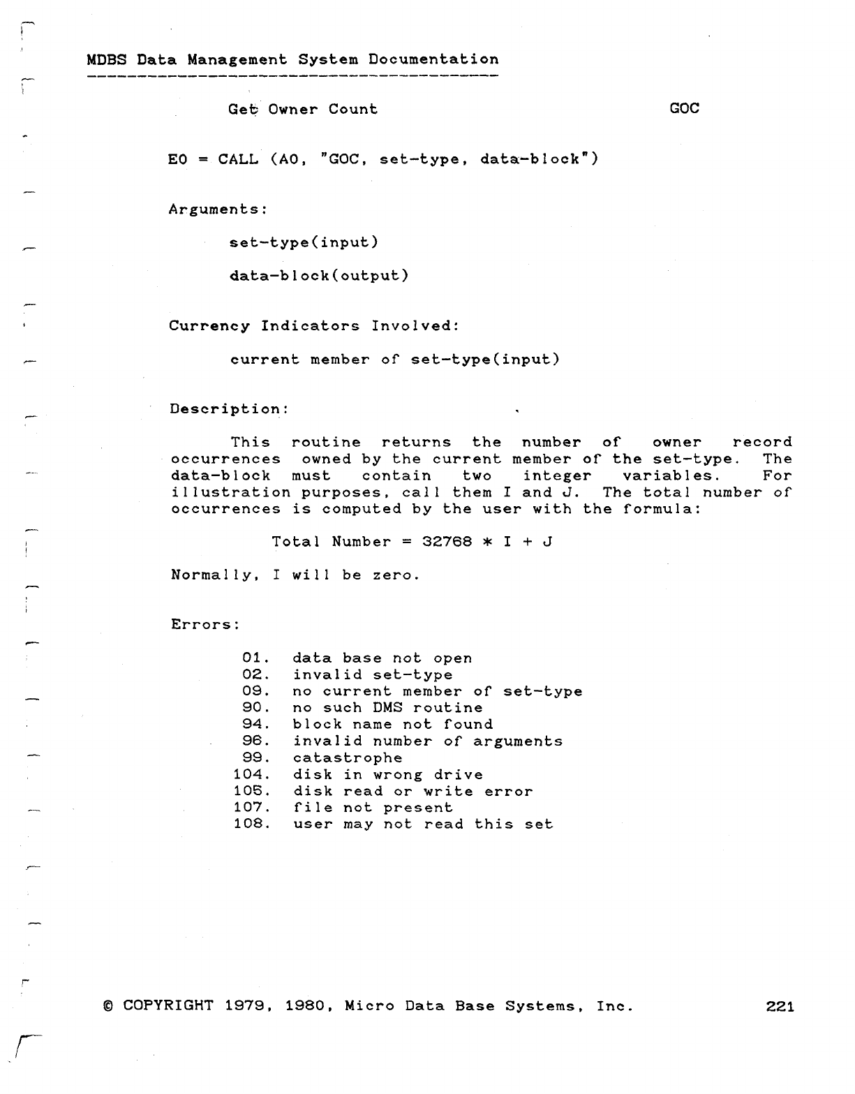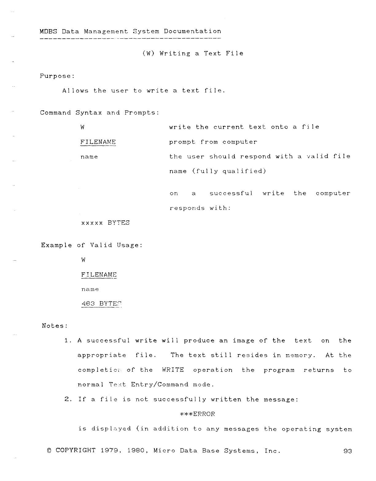 ©COPYRIGHT 1979, 1980, Micro Data Base Systems, Inc. 1