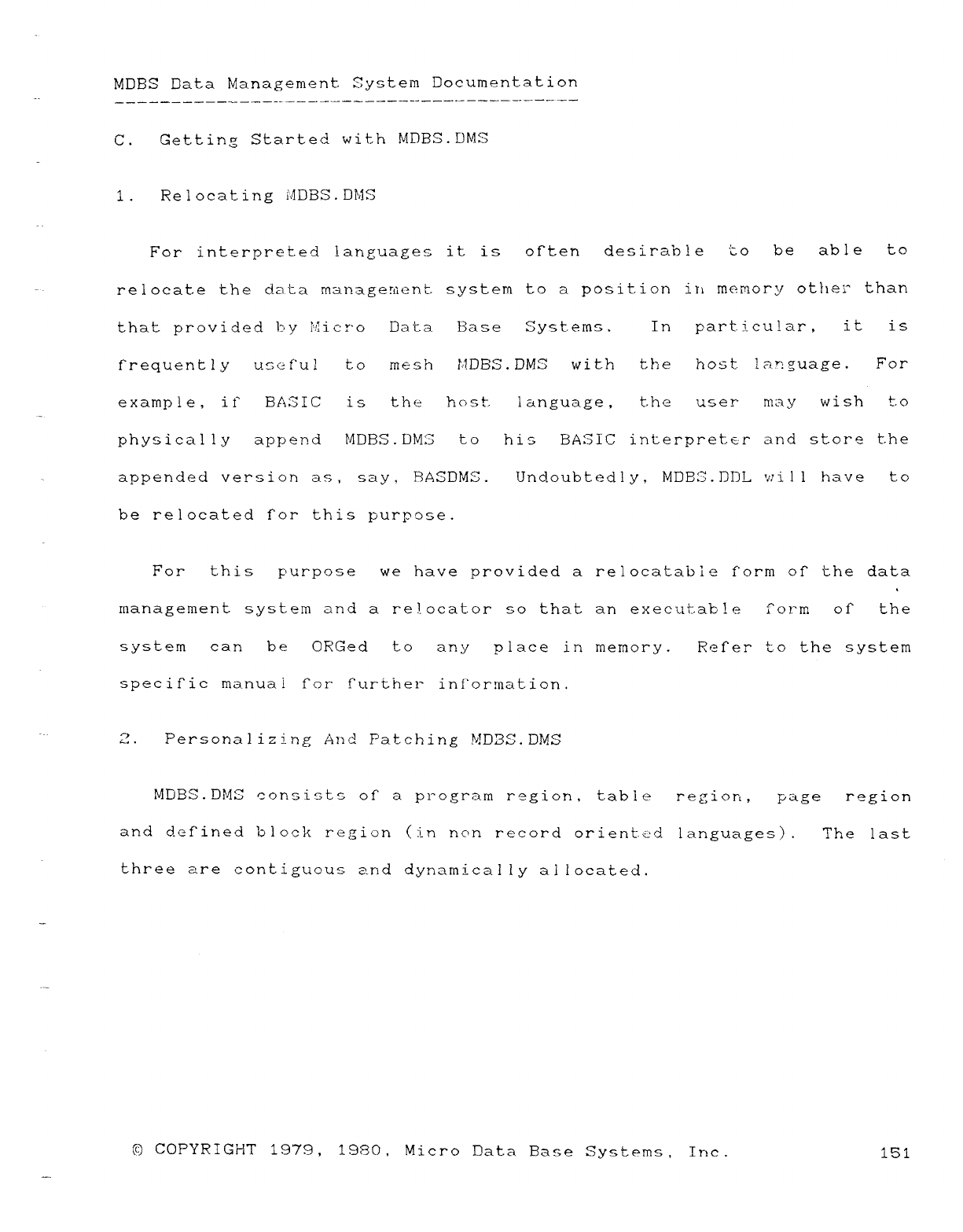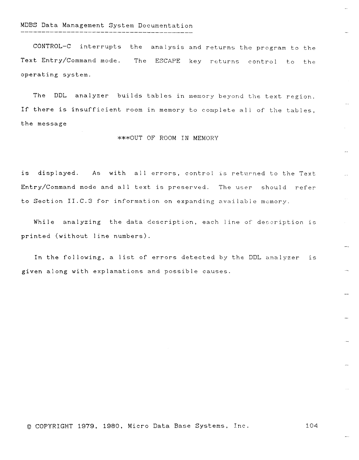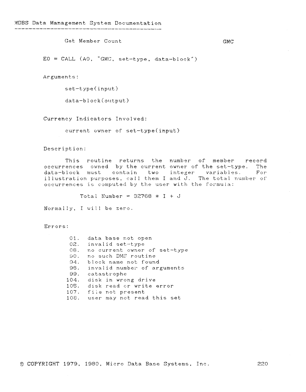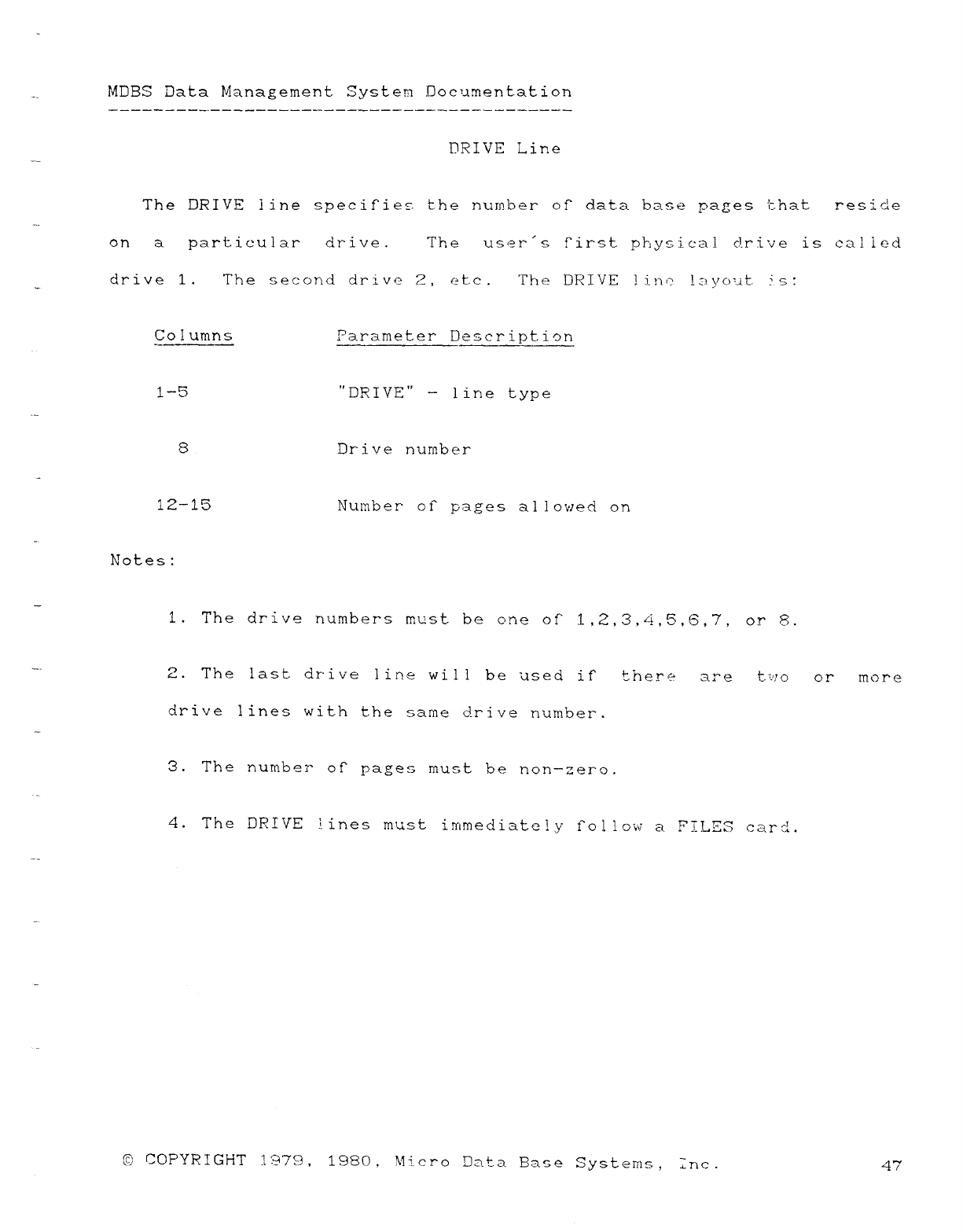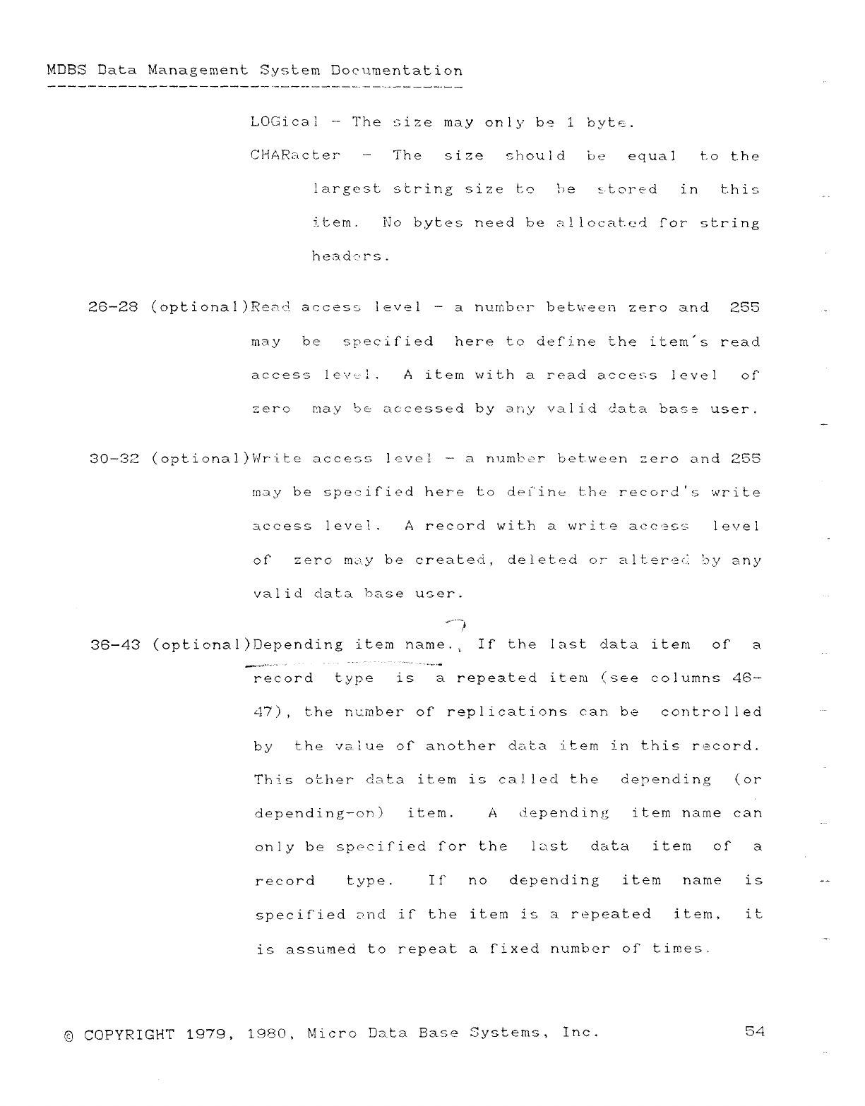 ©COPYRIGHT 1979, 1980, Micro Data Base Systems, Inc. 1