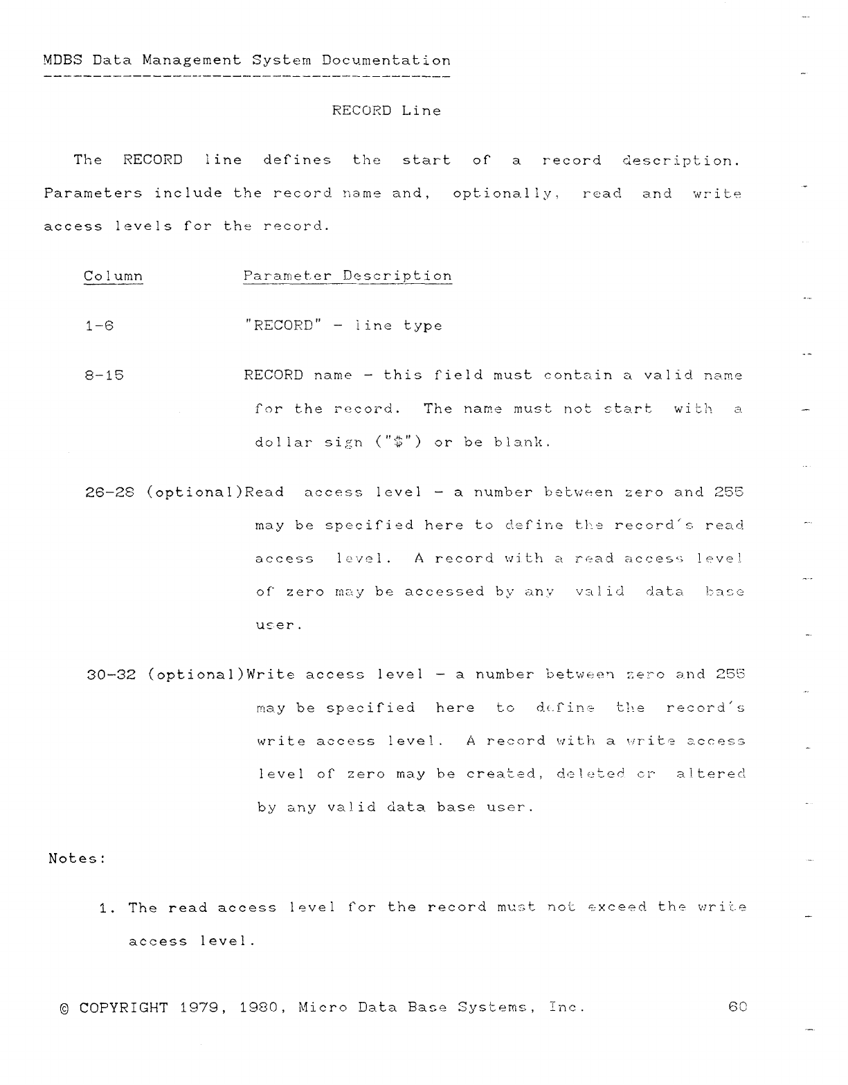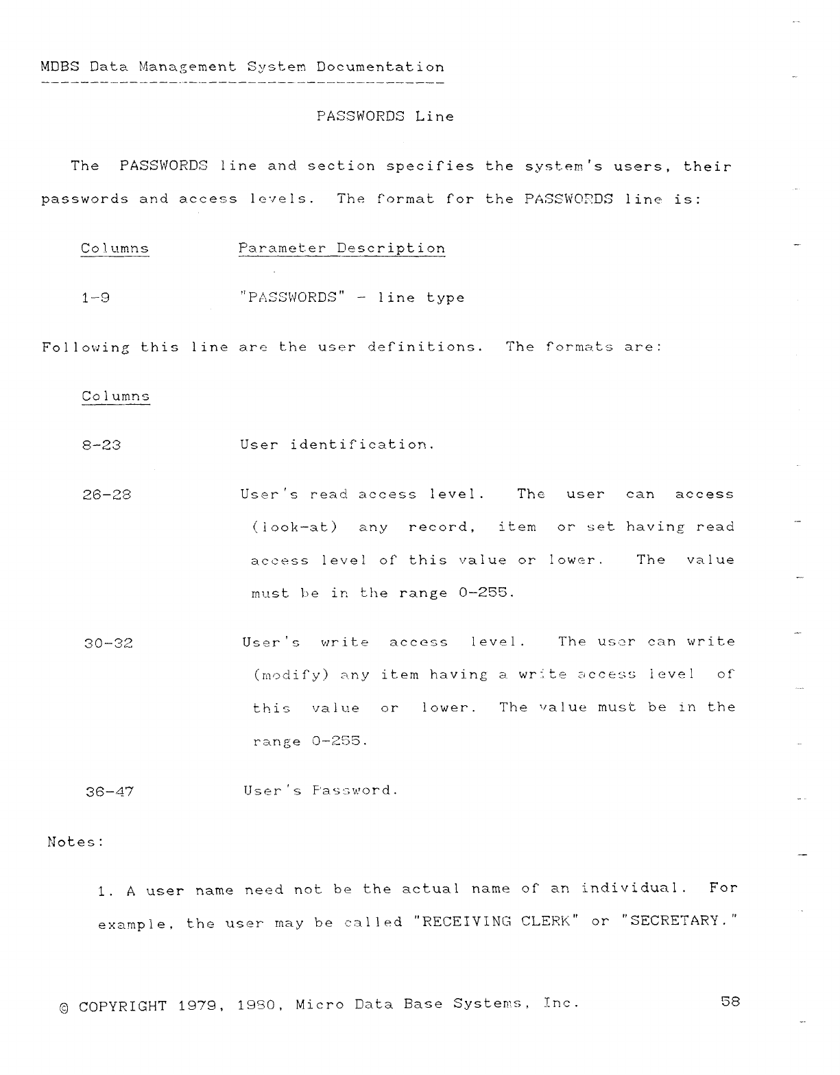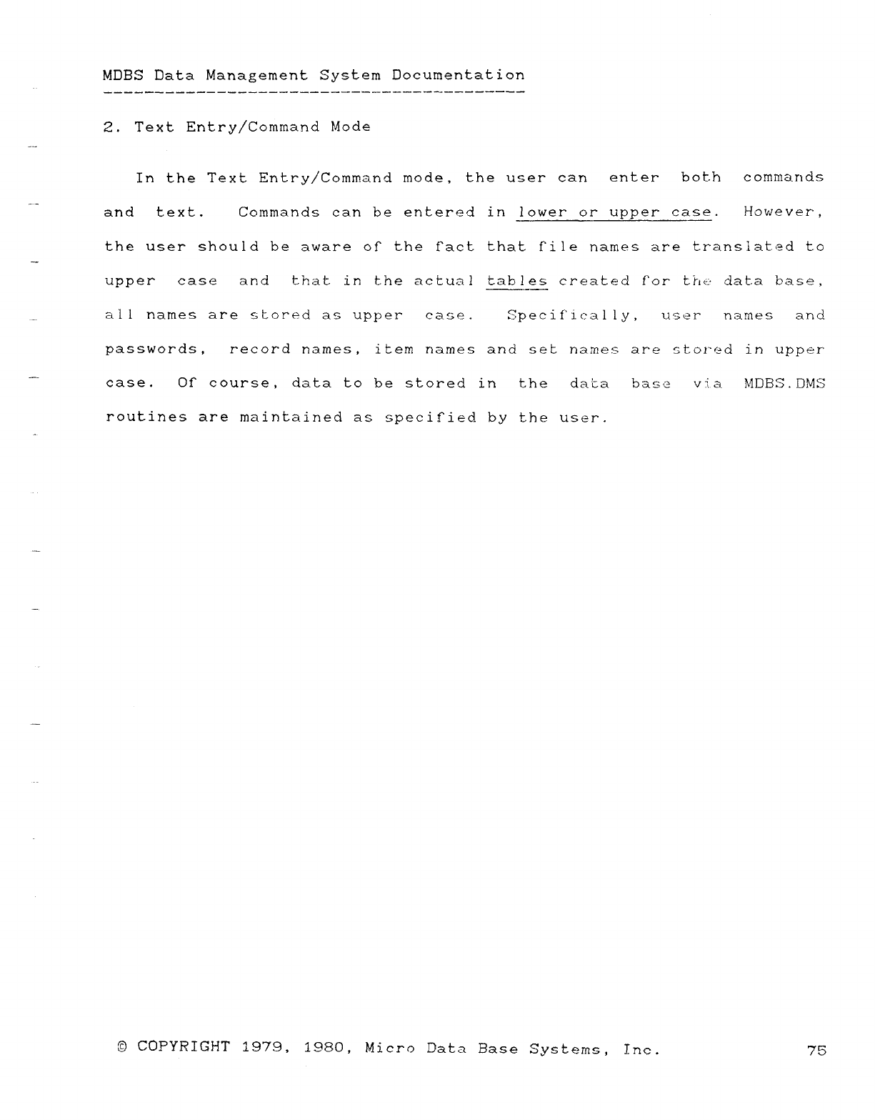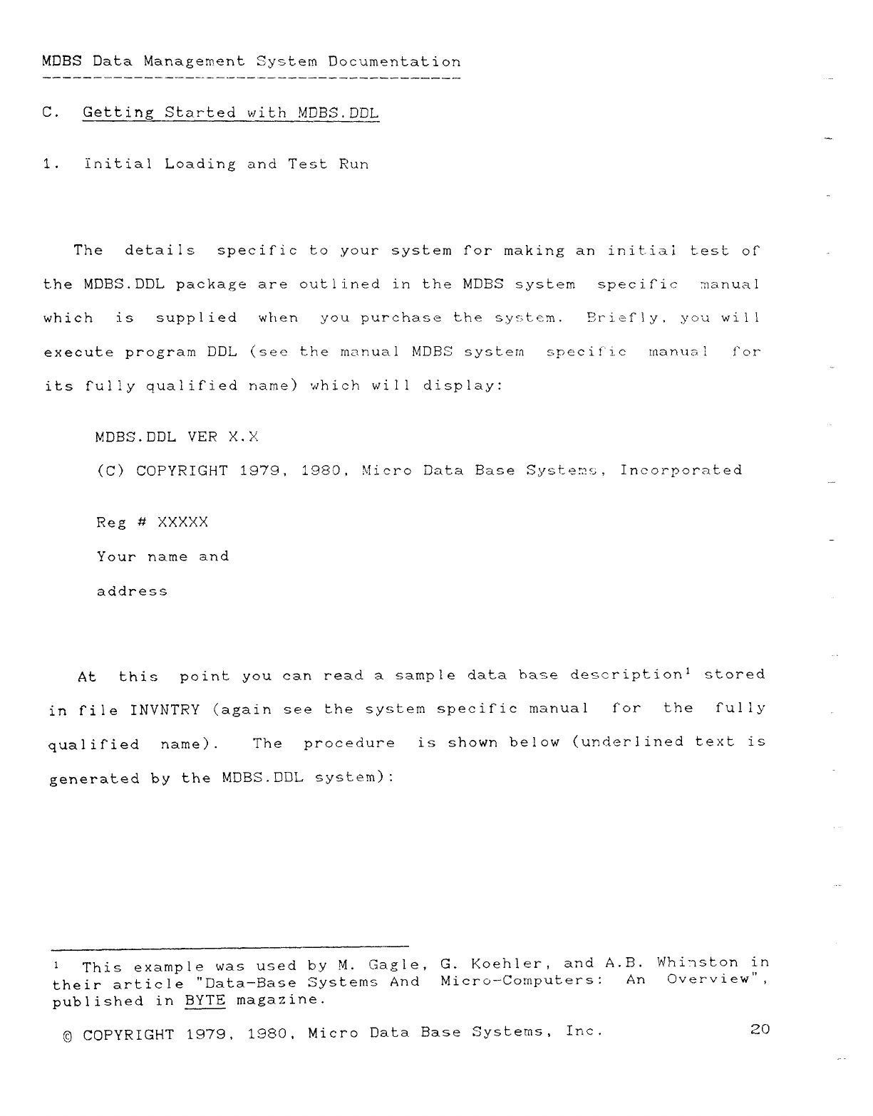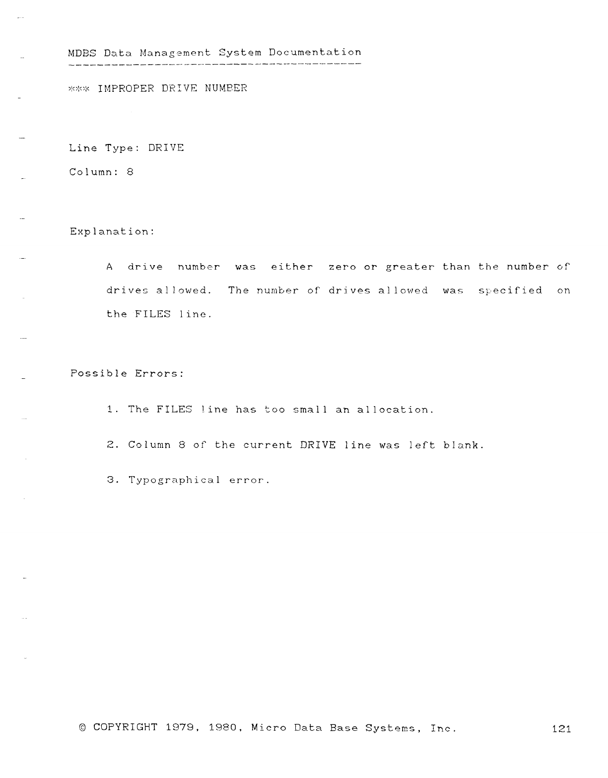 ©COPYRIGHT 1979, 1980, Micro Data Base Systems, Inc. 1