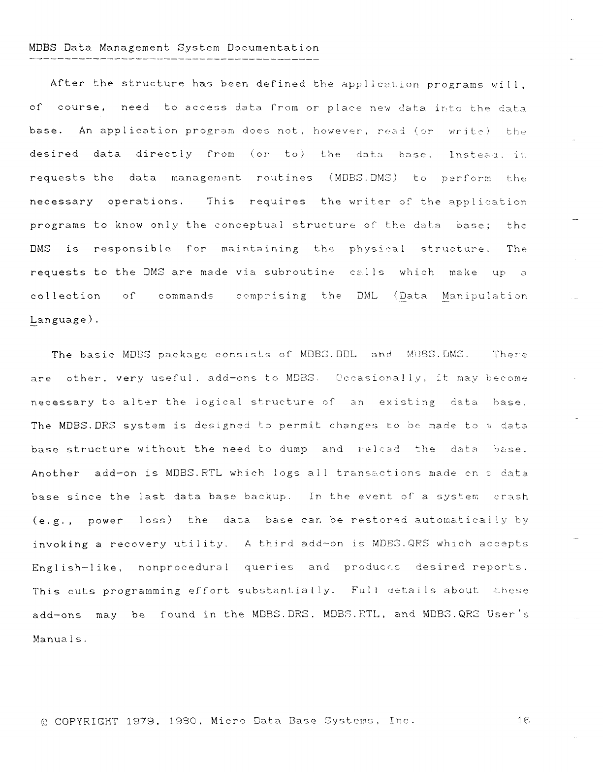 through the use OÍ" MDBS.DDL and MDBS.DMS. Here our aim is to be as