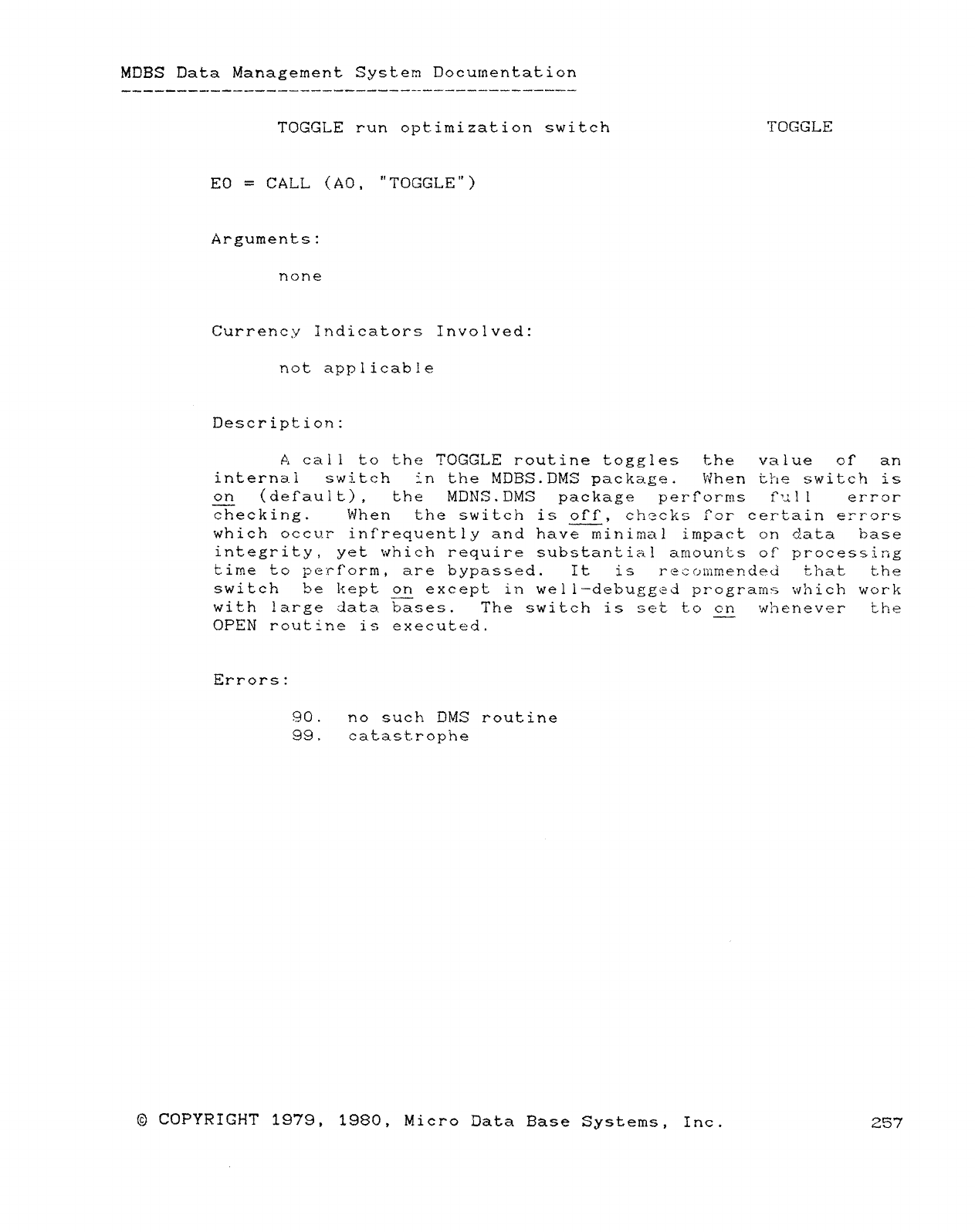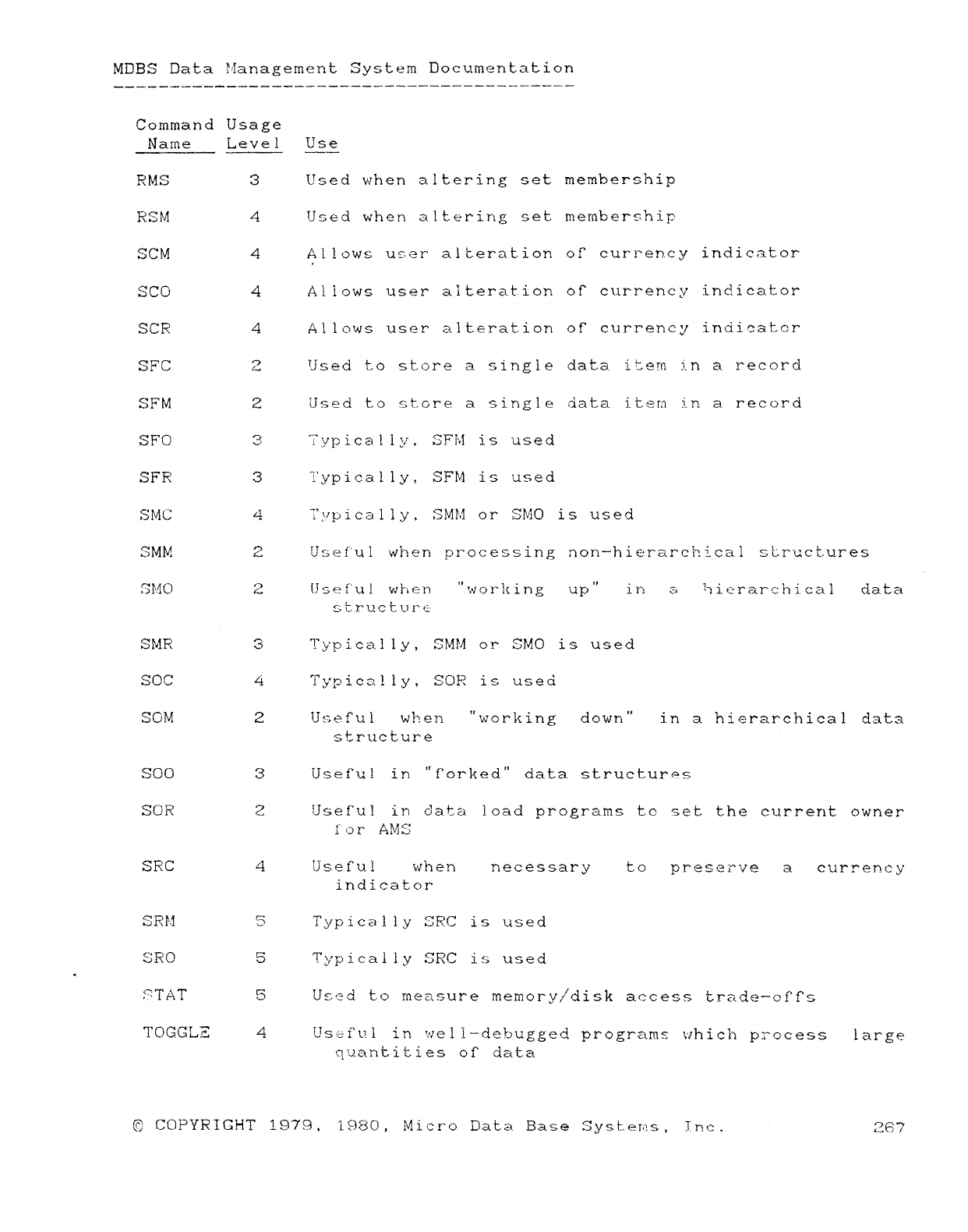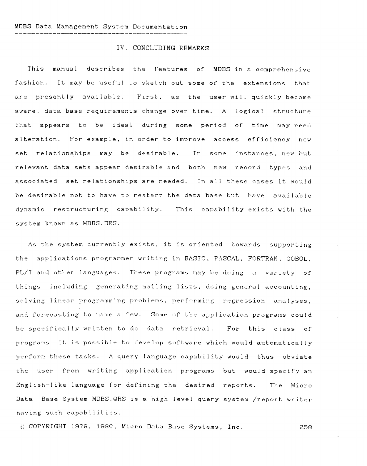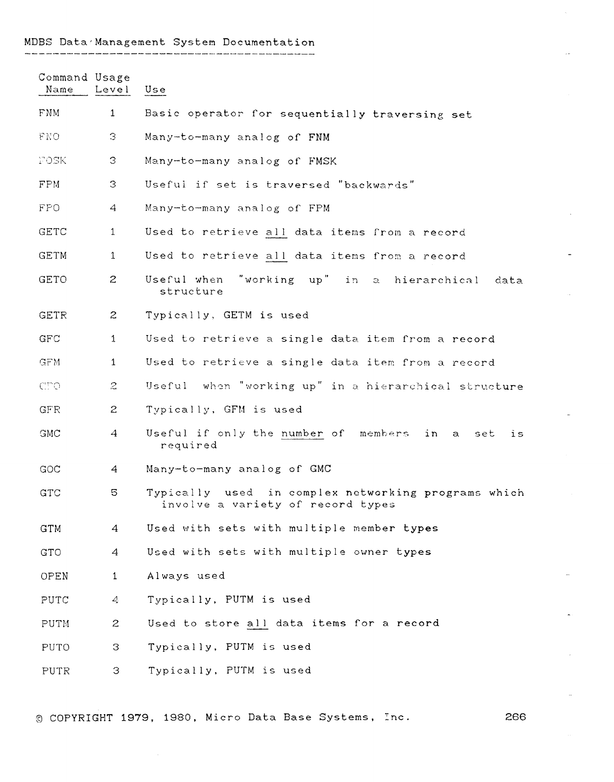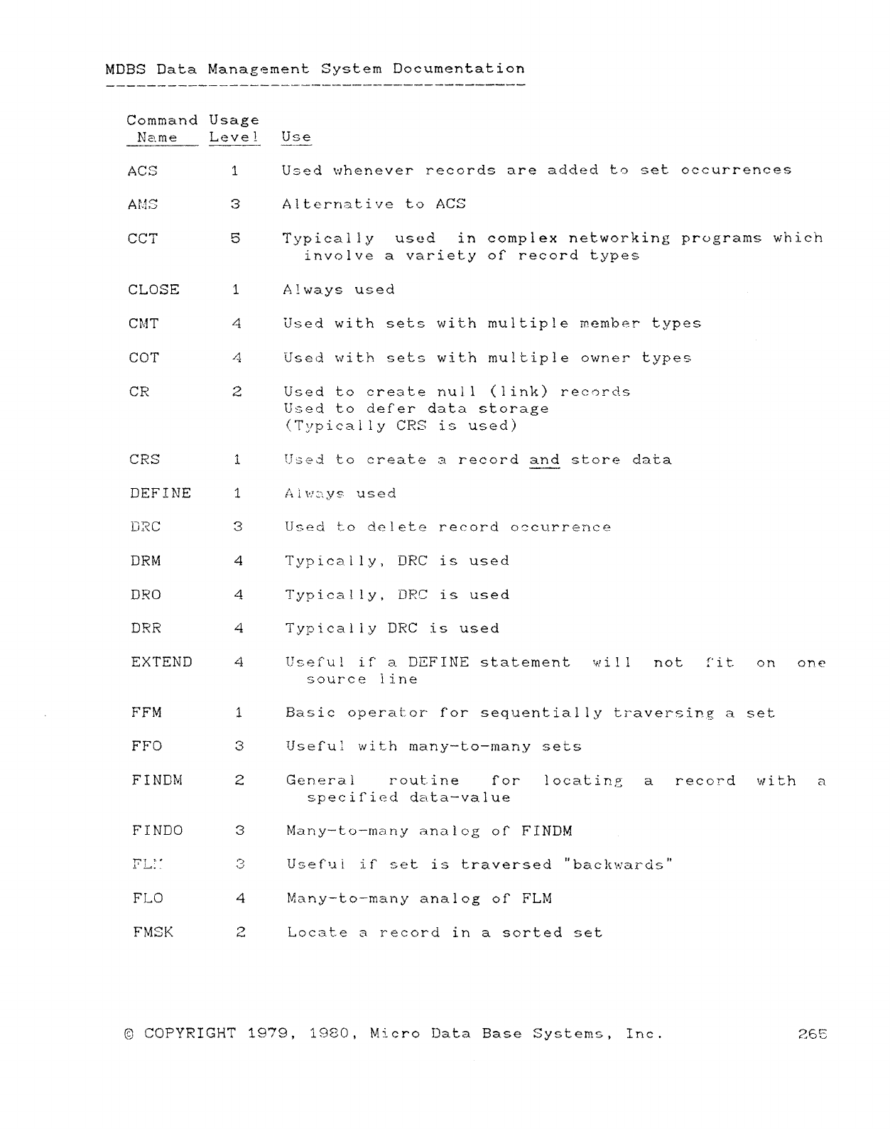 ©COPYRIGHT 1979, 1980, Micro Data Base Systems, Inc. 266